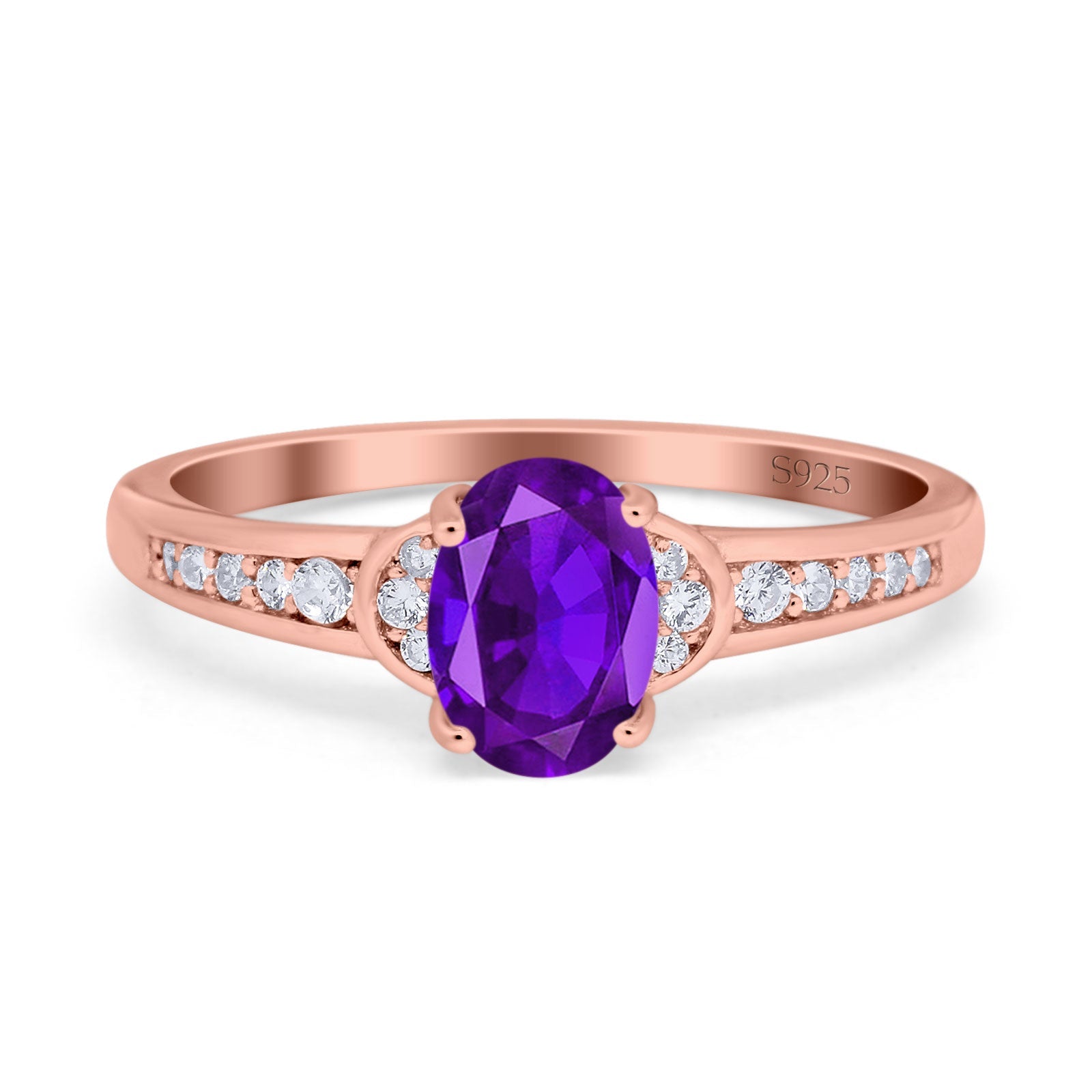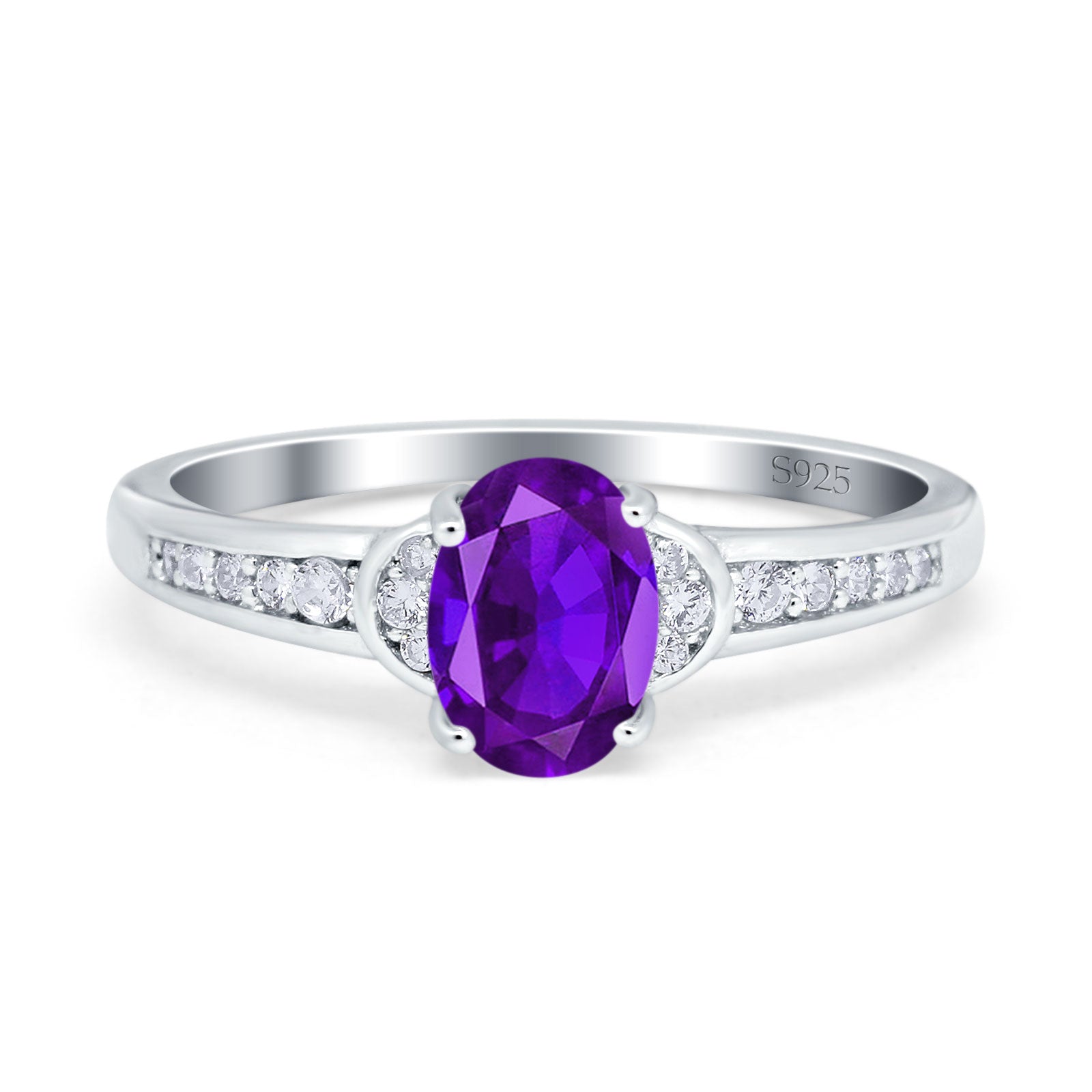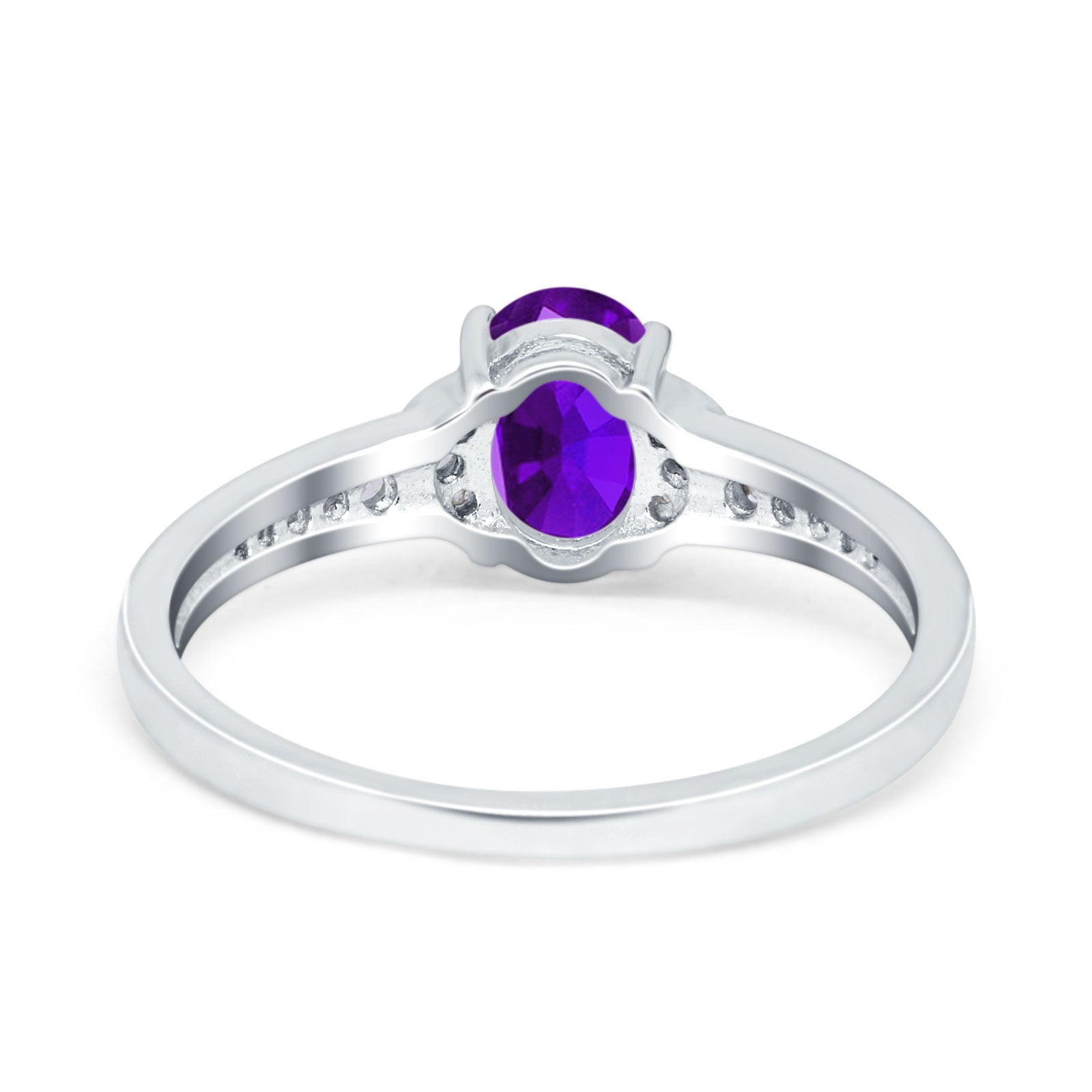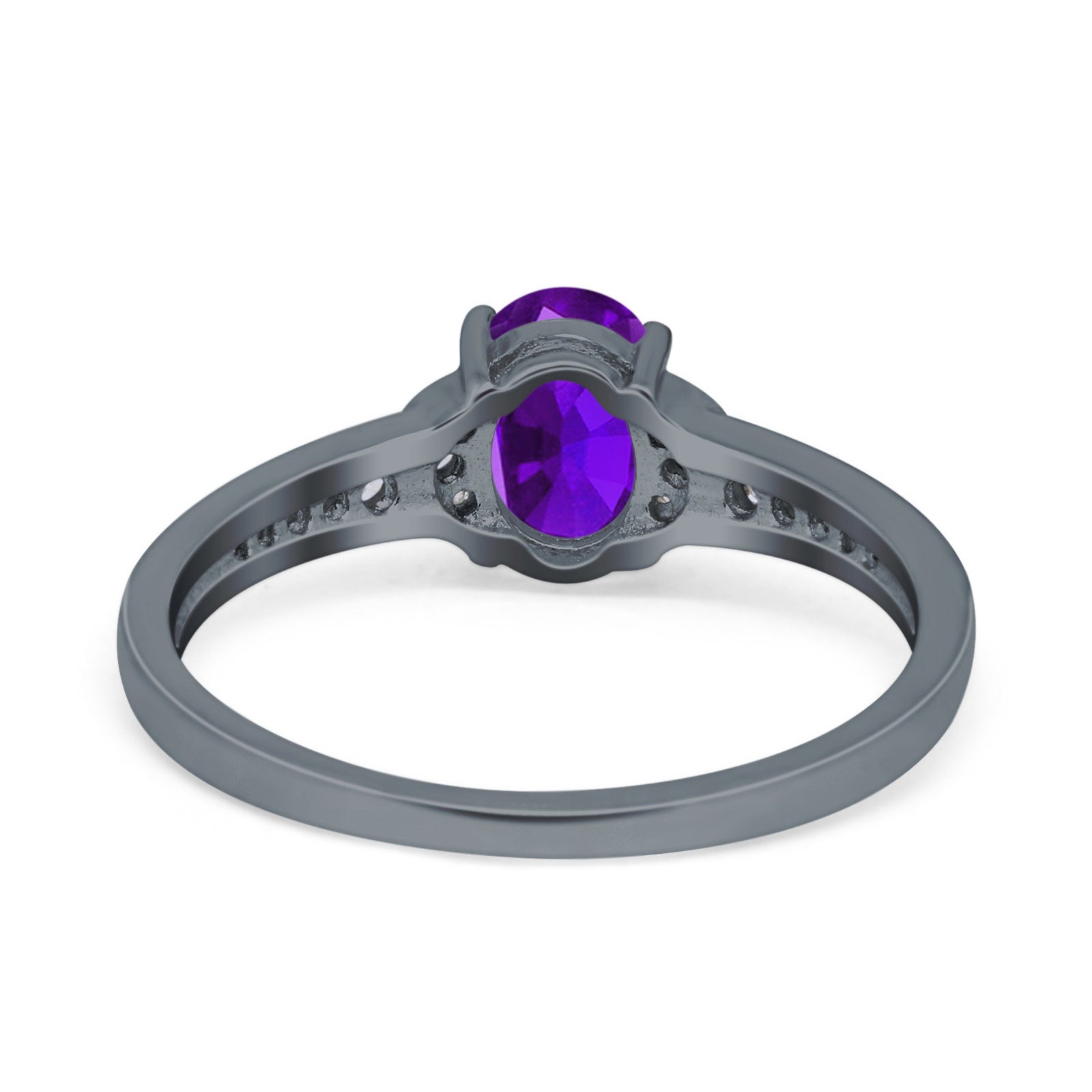 Art Deco Oval Natural Amethyst Channel Setting Ring 925 Sterling Silver