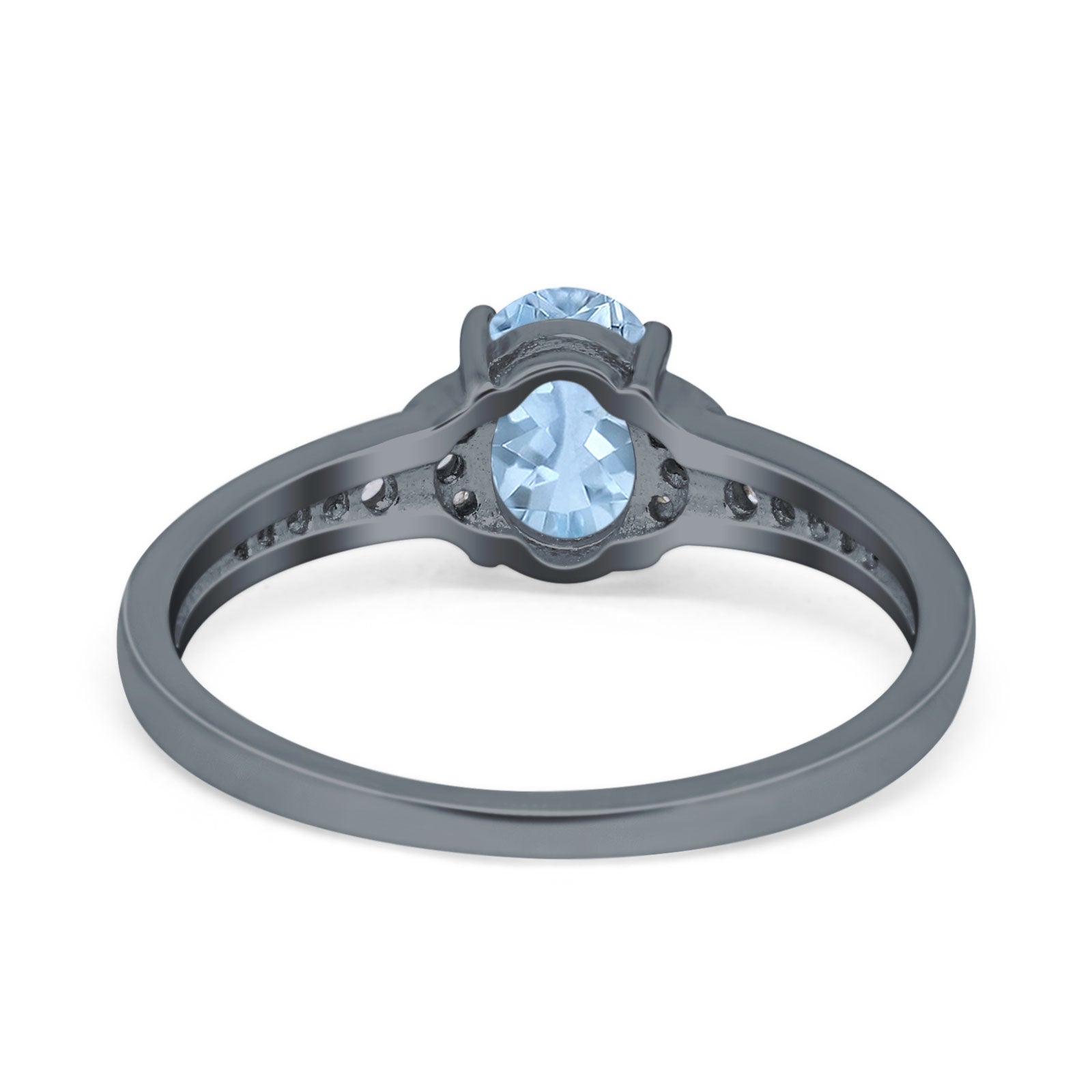 Art Deco Oval Natural Aquamarine Channel Setting Ring 925 Sterling Silver