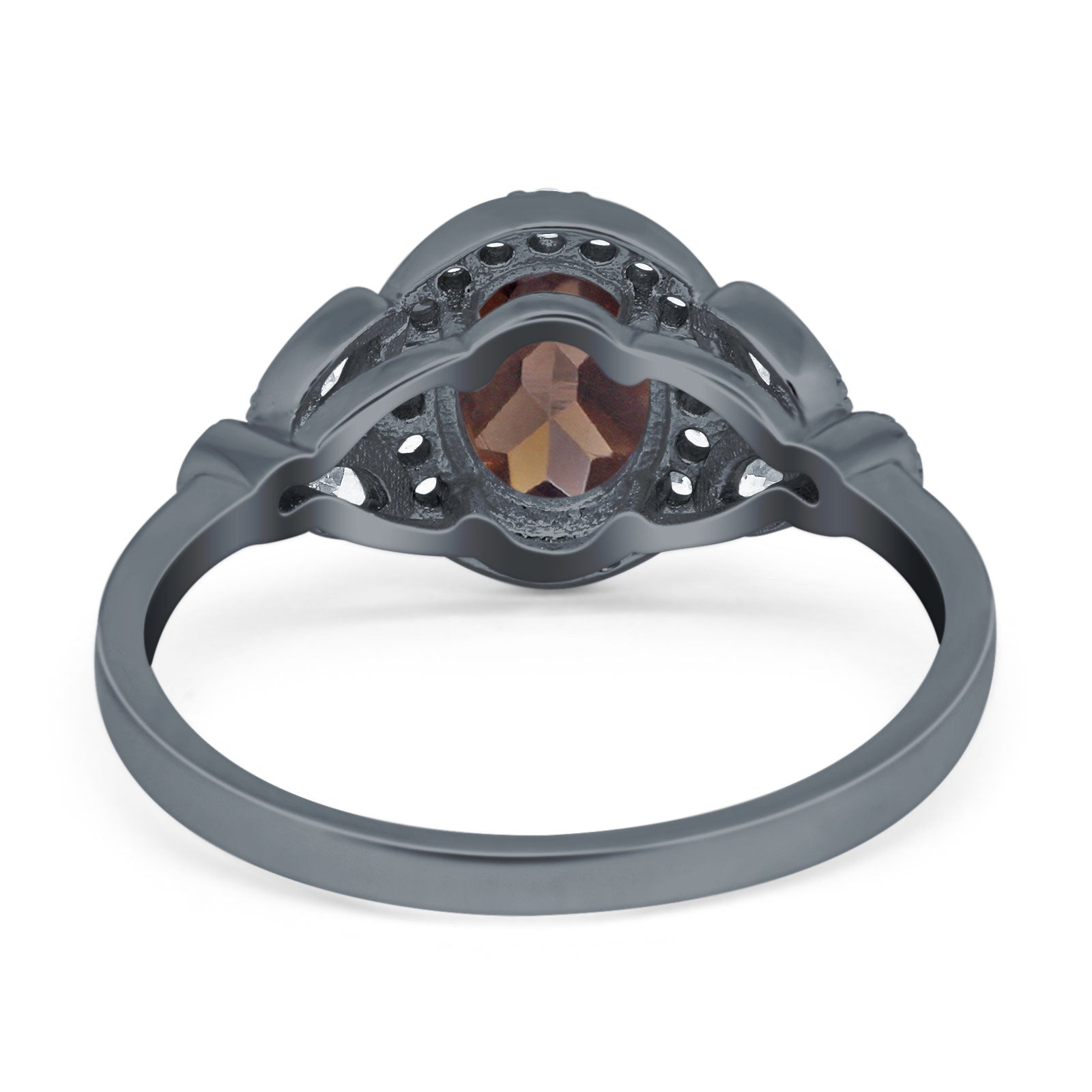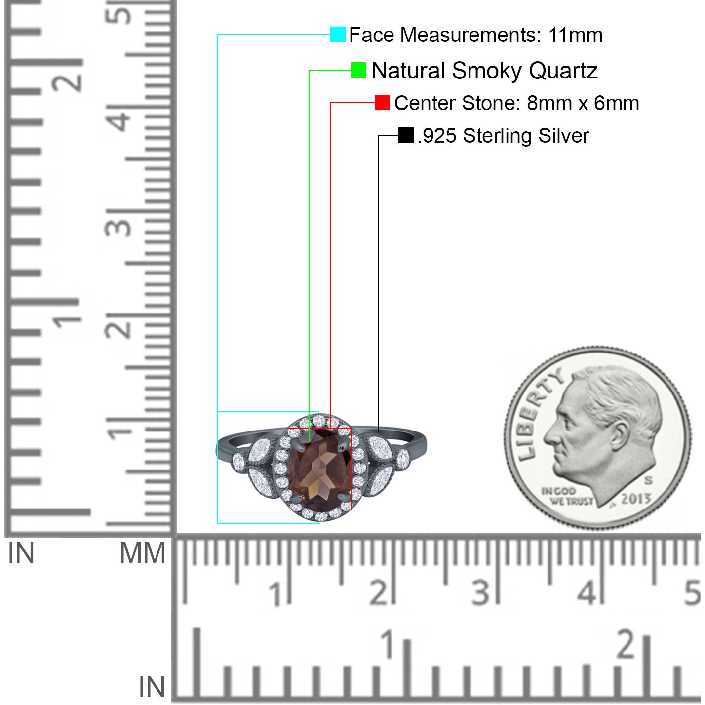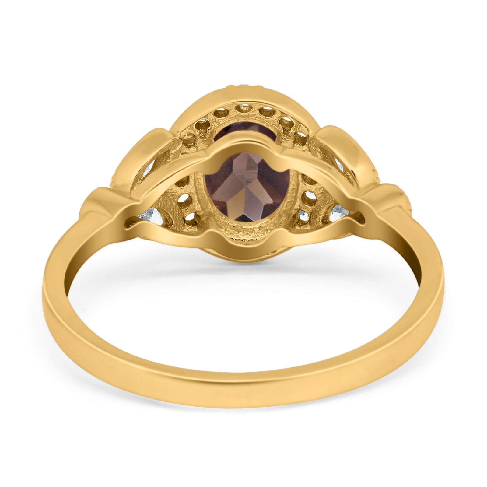 Art Deco Oval Natural Chocolate Smoky Quartz Halo Leaf Accent Ring 925 Sterling Silver
