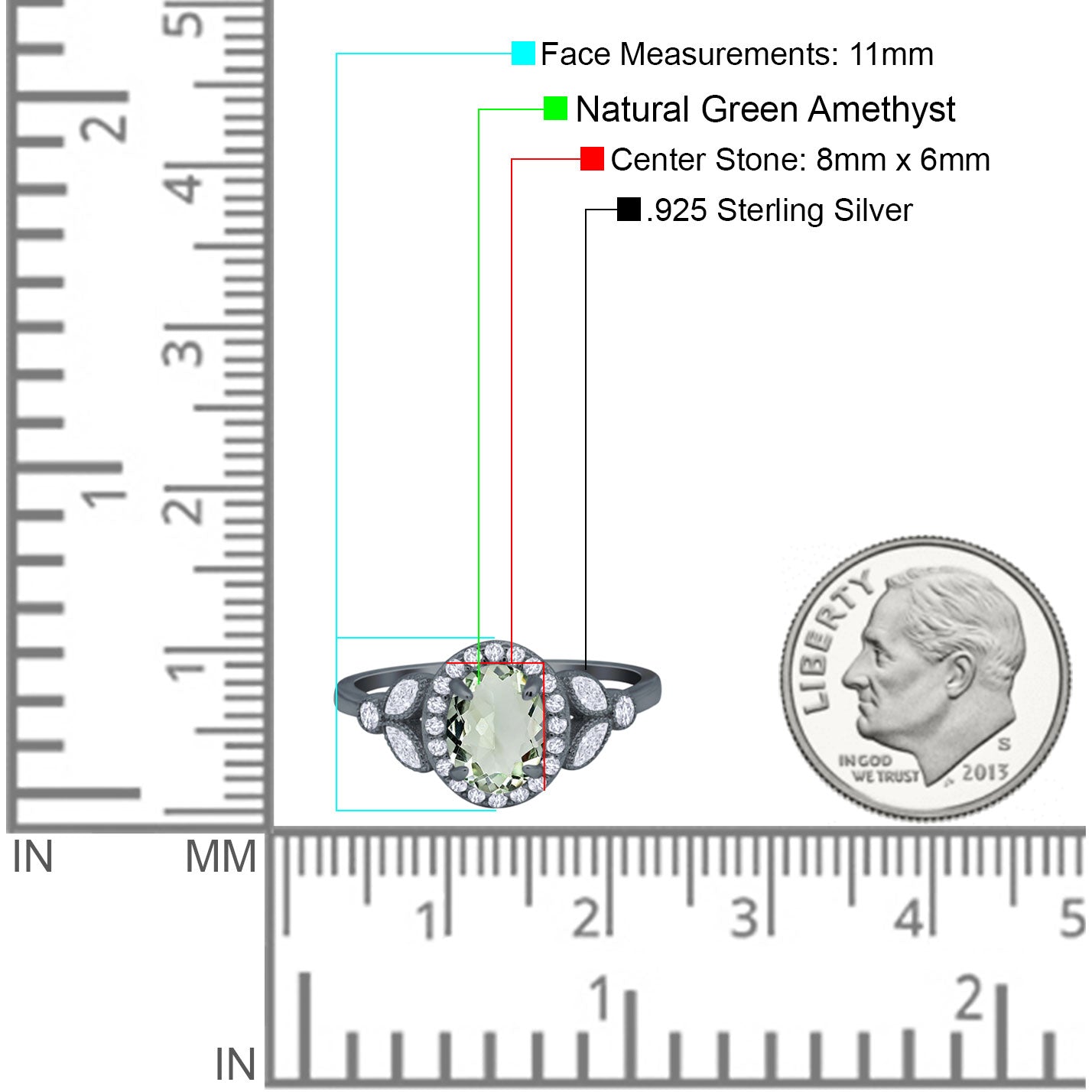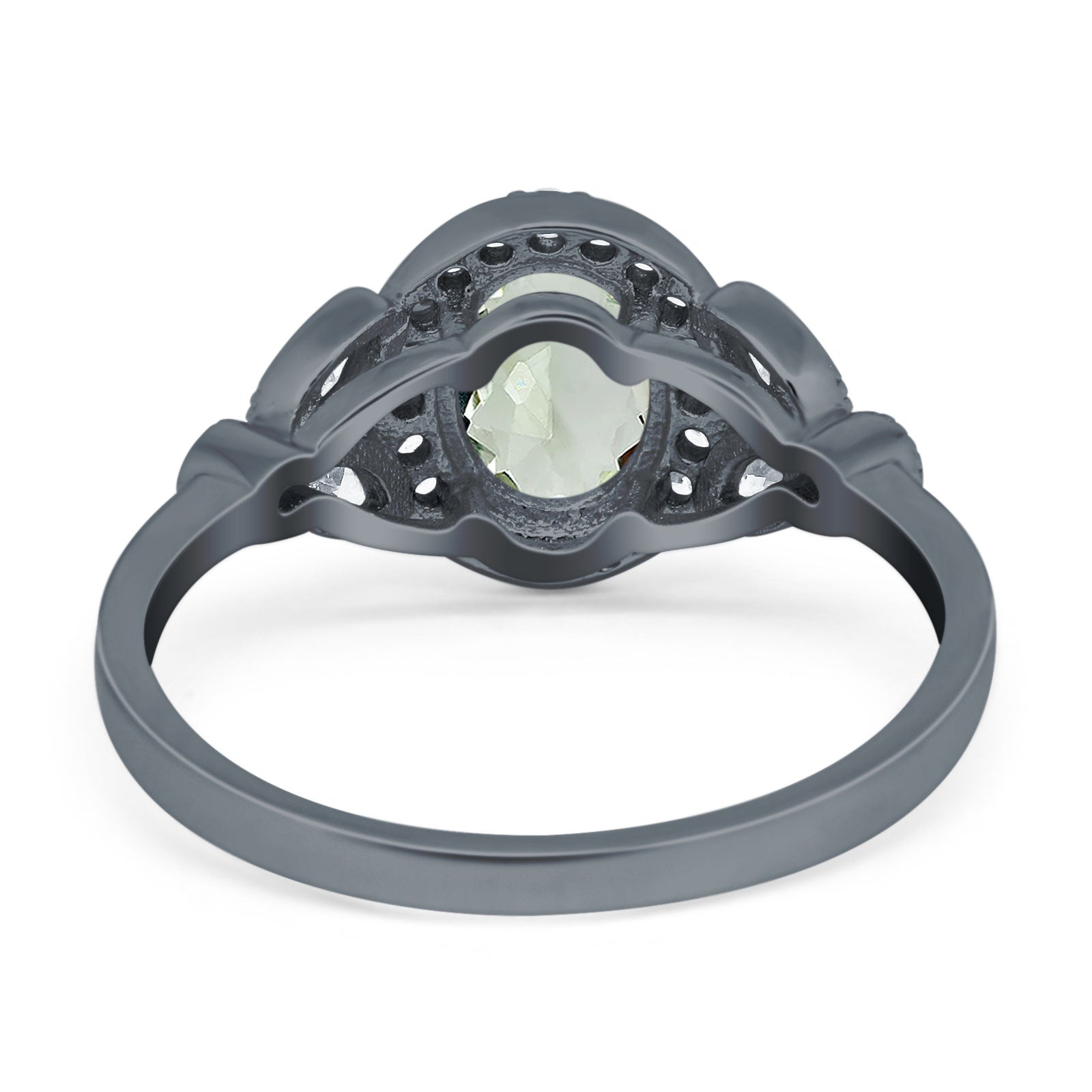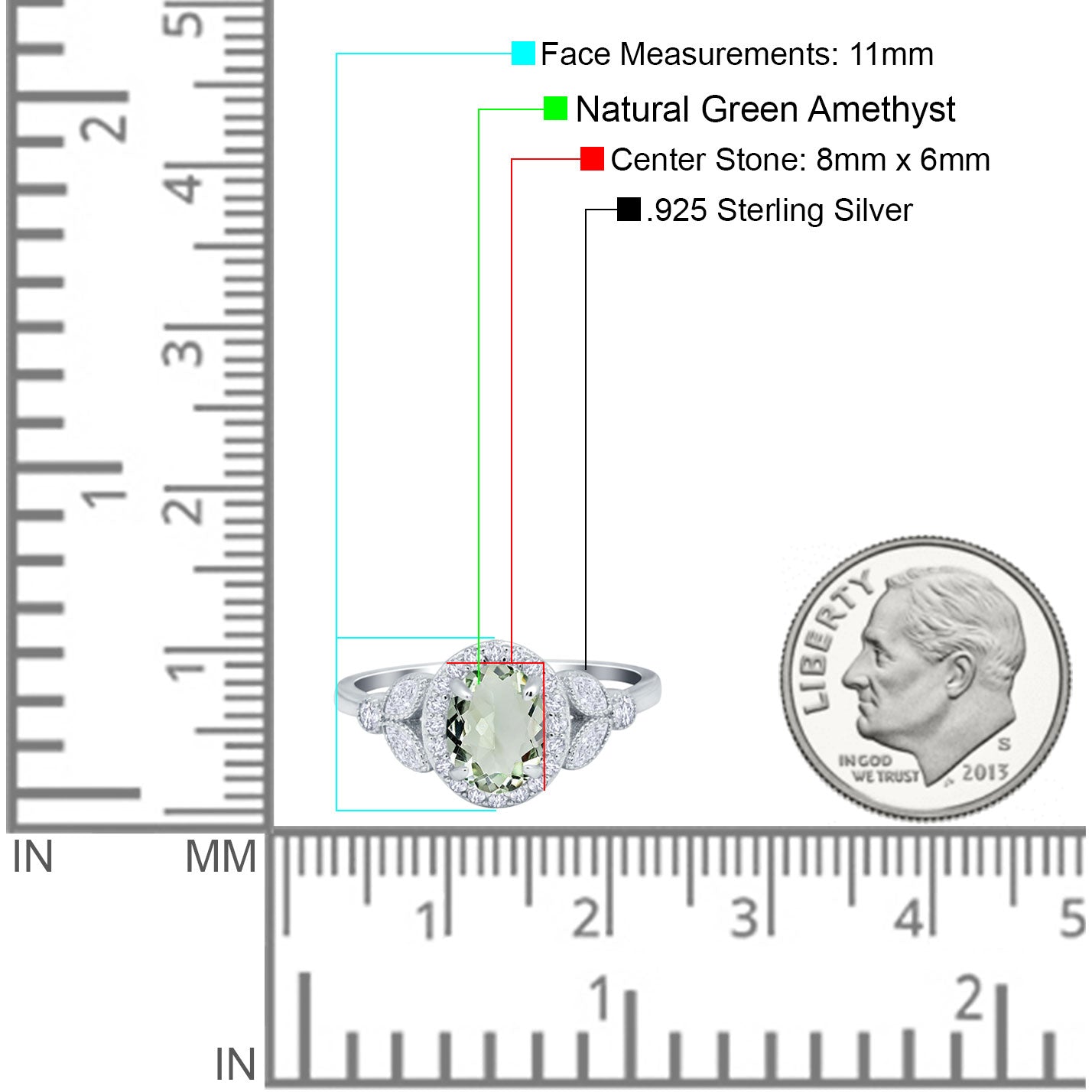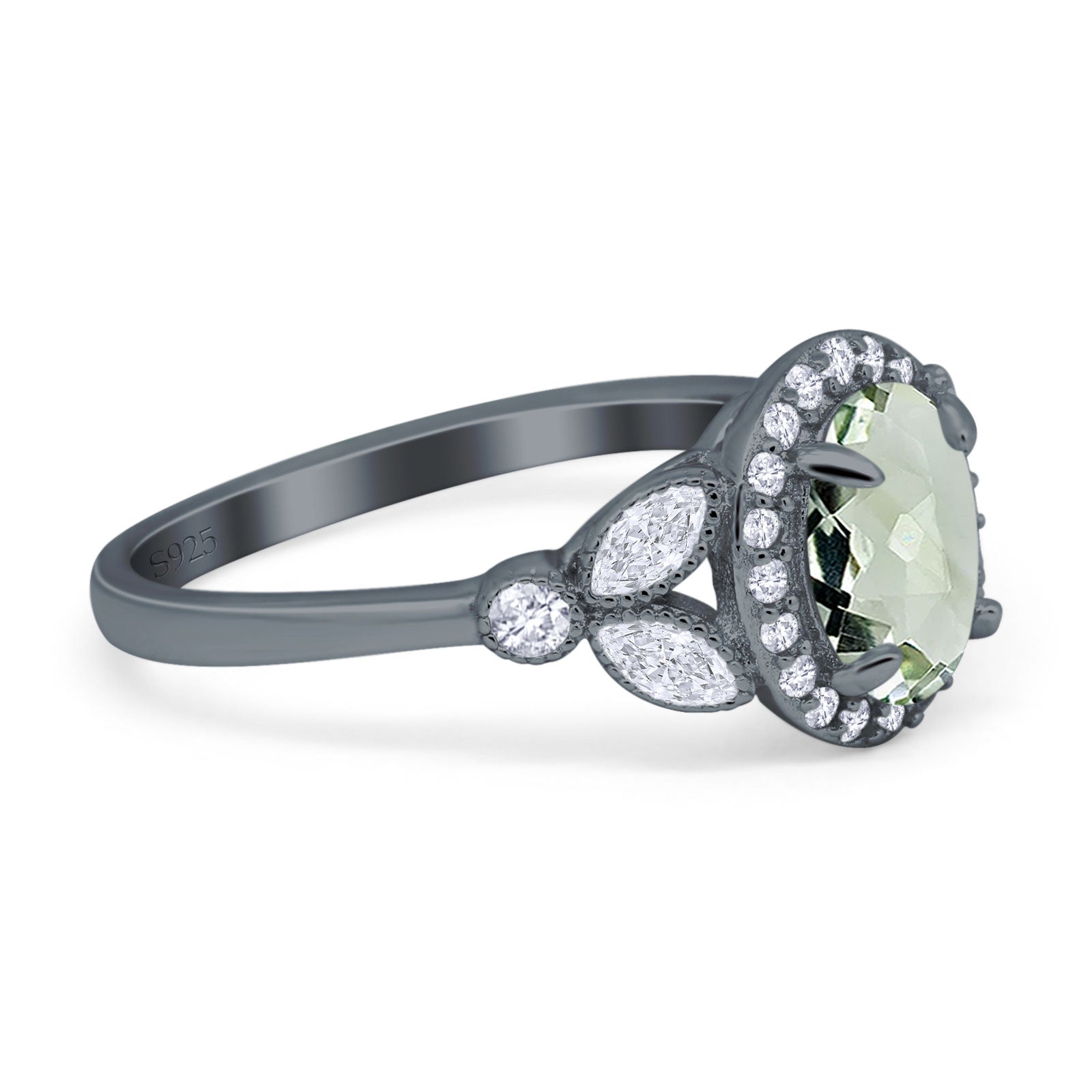 Art Deco Oval Natural Green Amethyst Prasiolite Halo Leaf Accent Ring 925 Sterling Silver