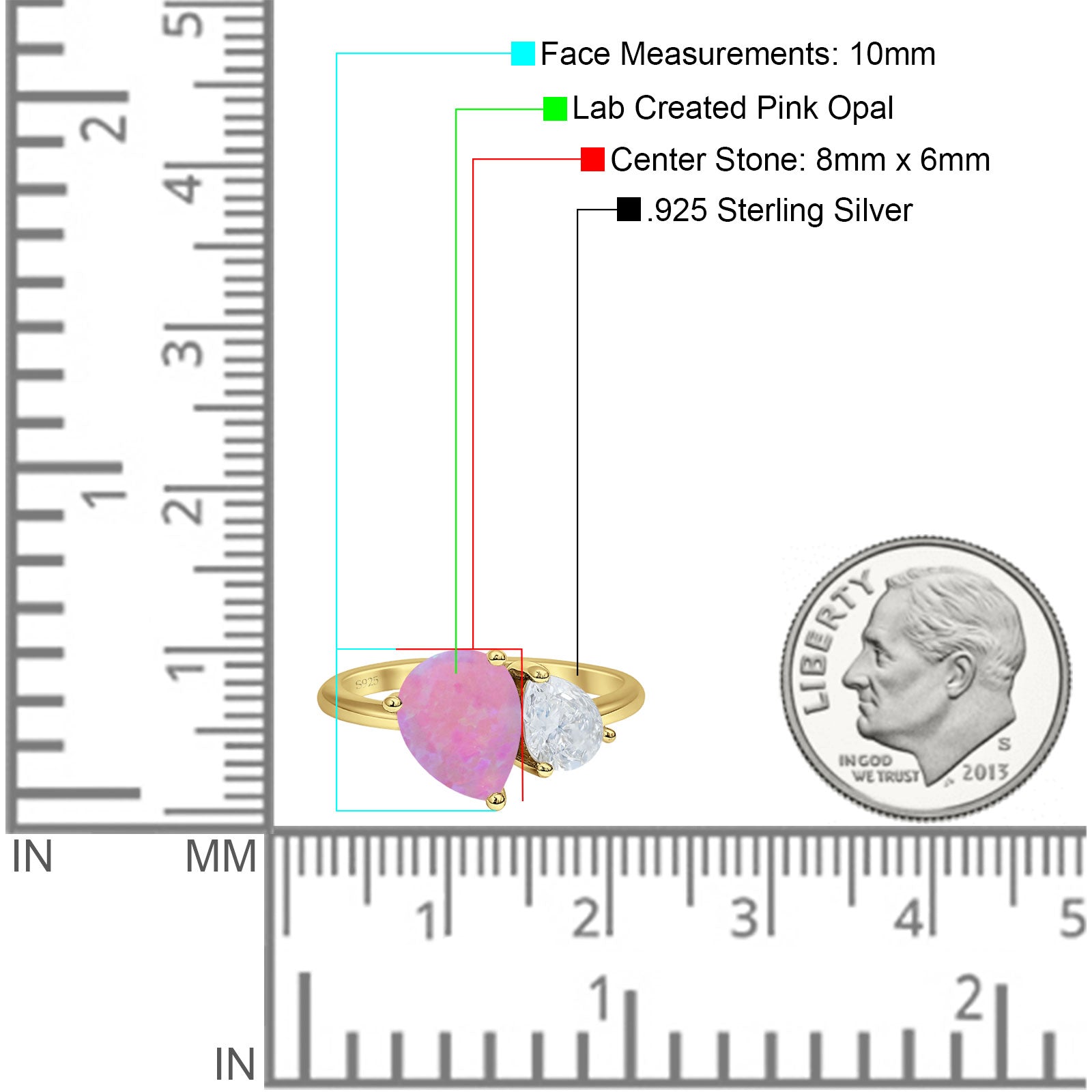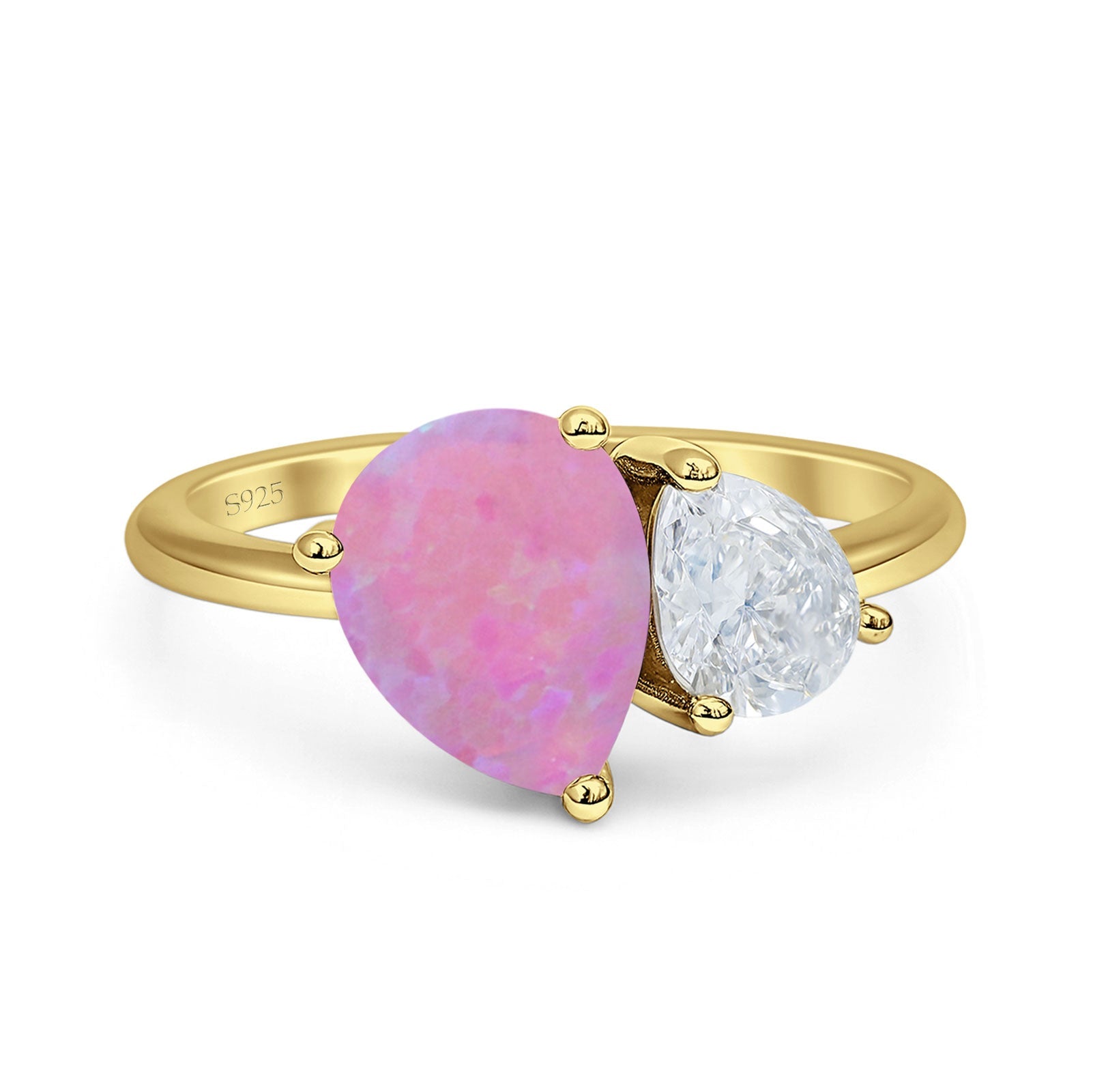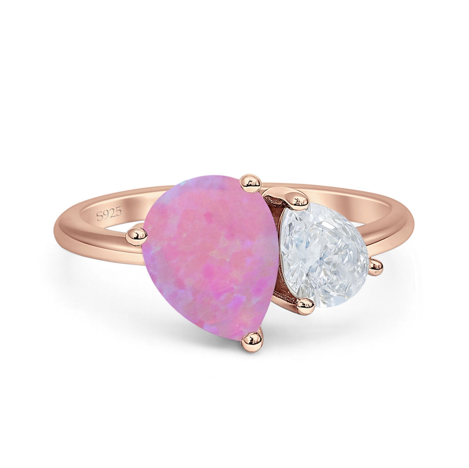 Ring Design: Pear Lab Created Pink Opal Two Stone Ring.