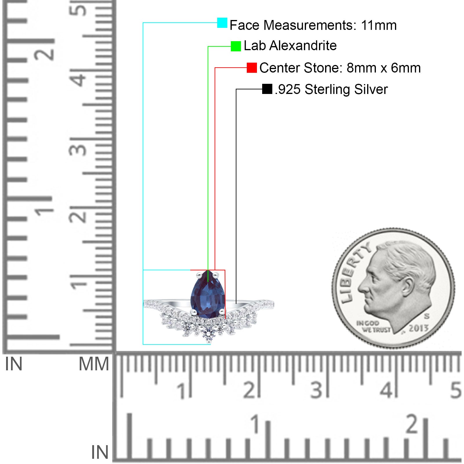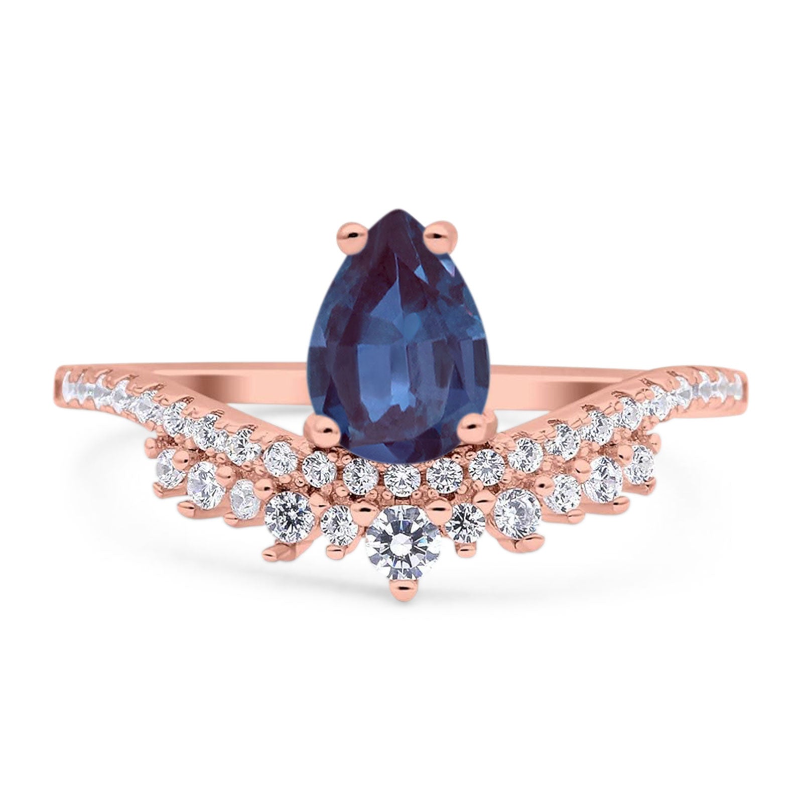 Art Deco Pear Teardrop Lab Alexandrite Cocktail Ring 925 Sterling Silver