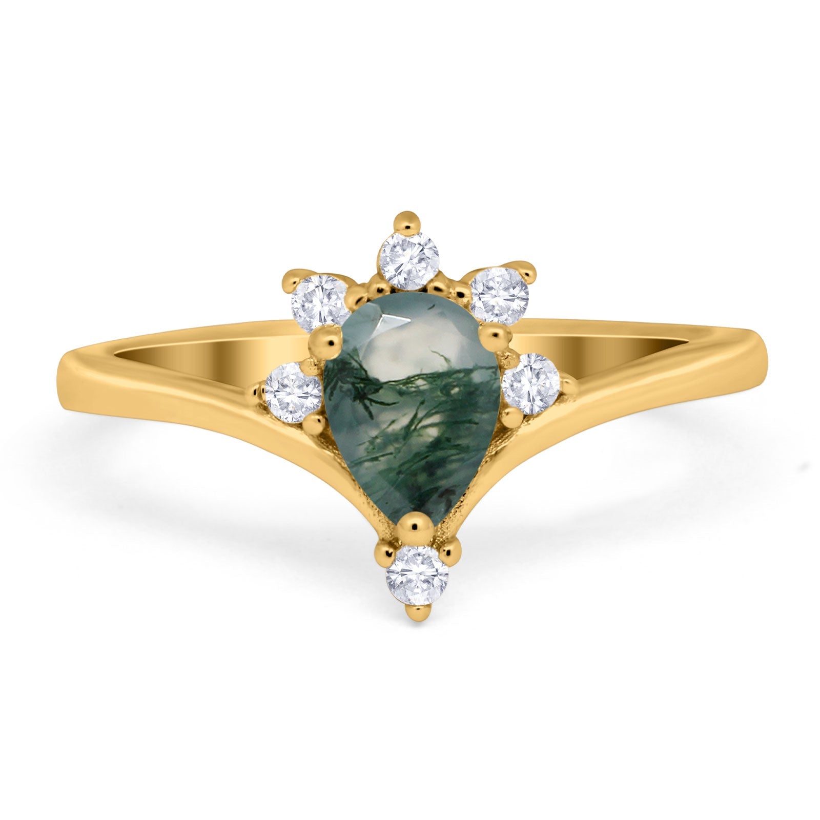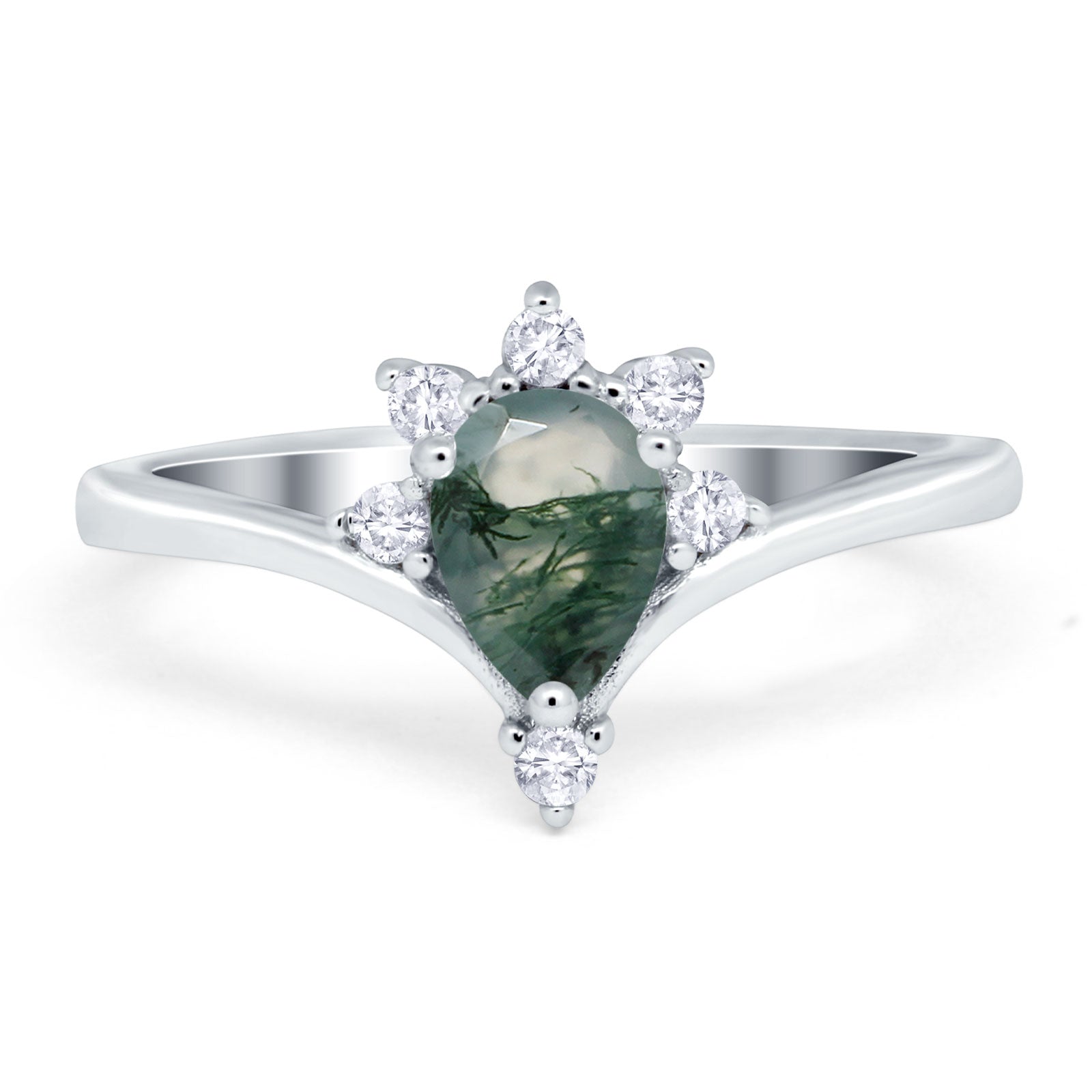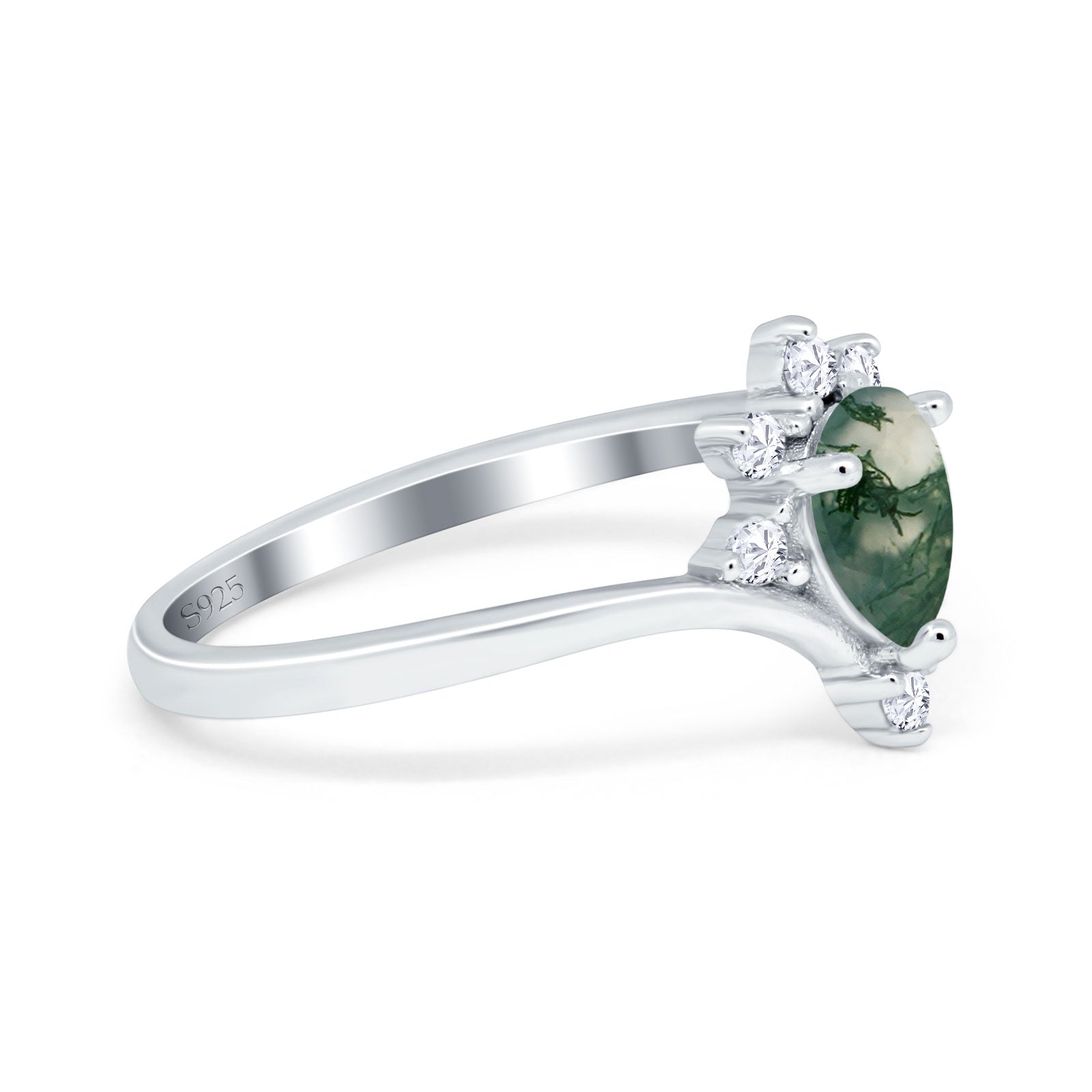 -Pear Teardrop Natural Green Moss Agate Gemstone.