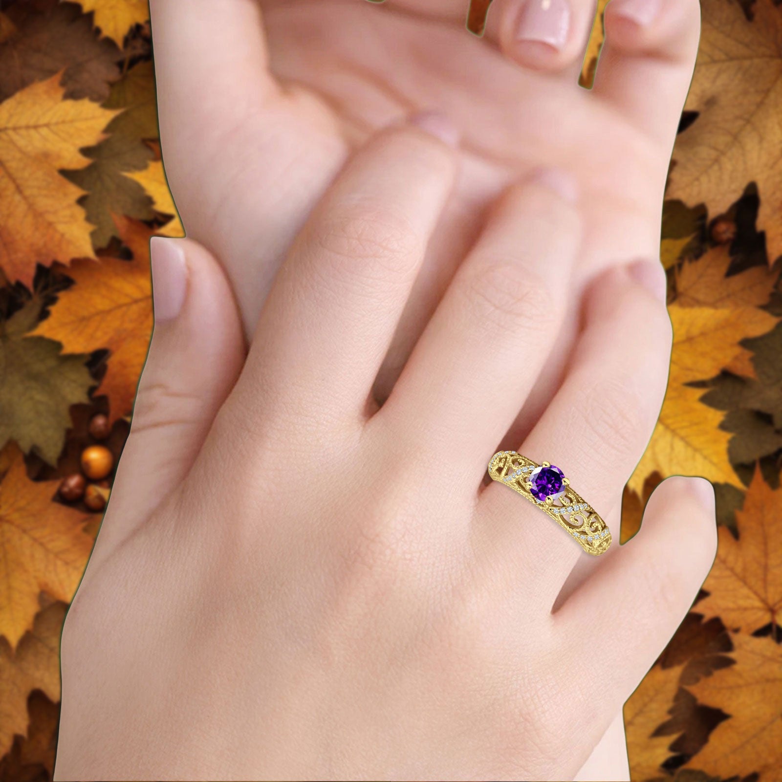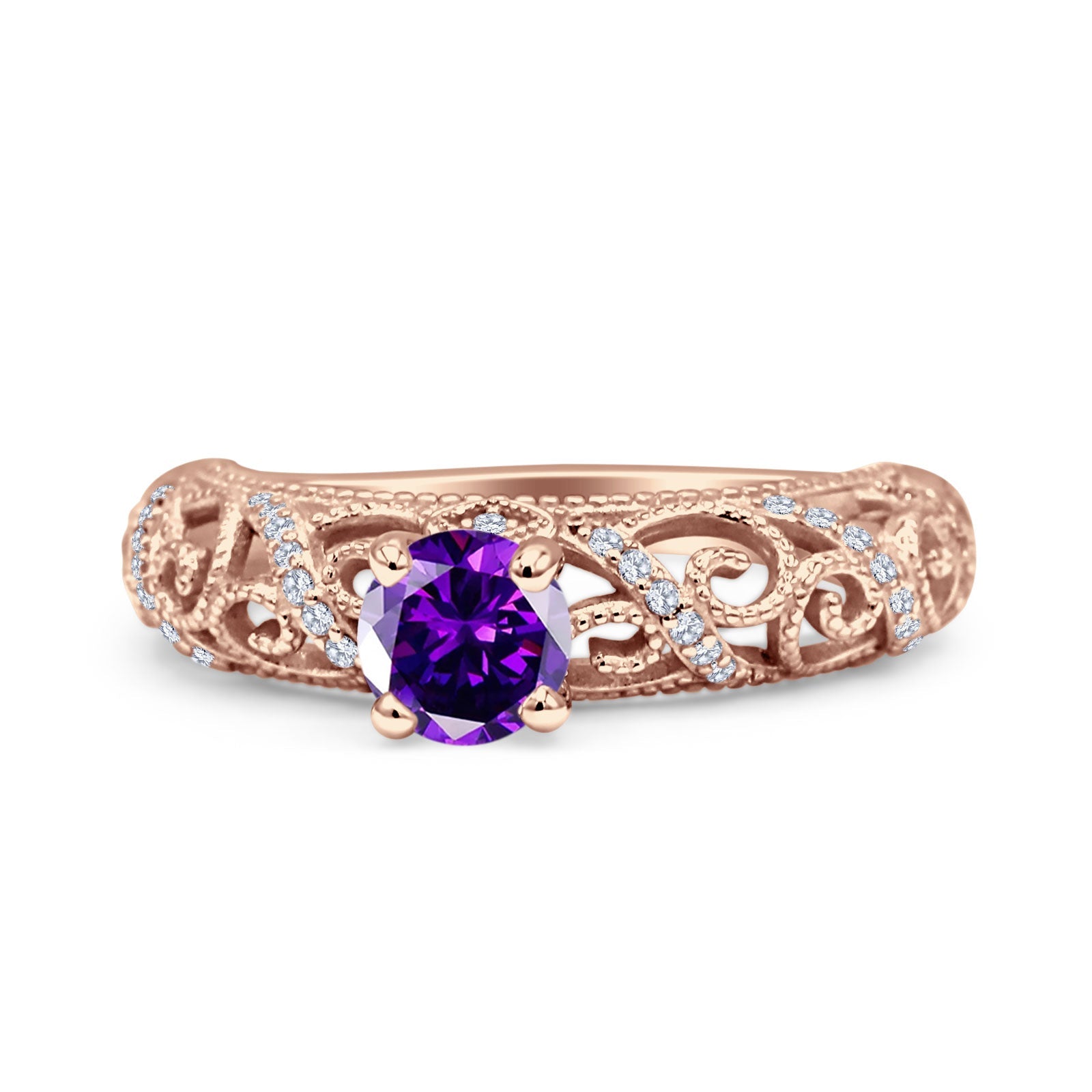 Ring Design: Round Amethyst CZ Filigree Ring.