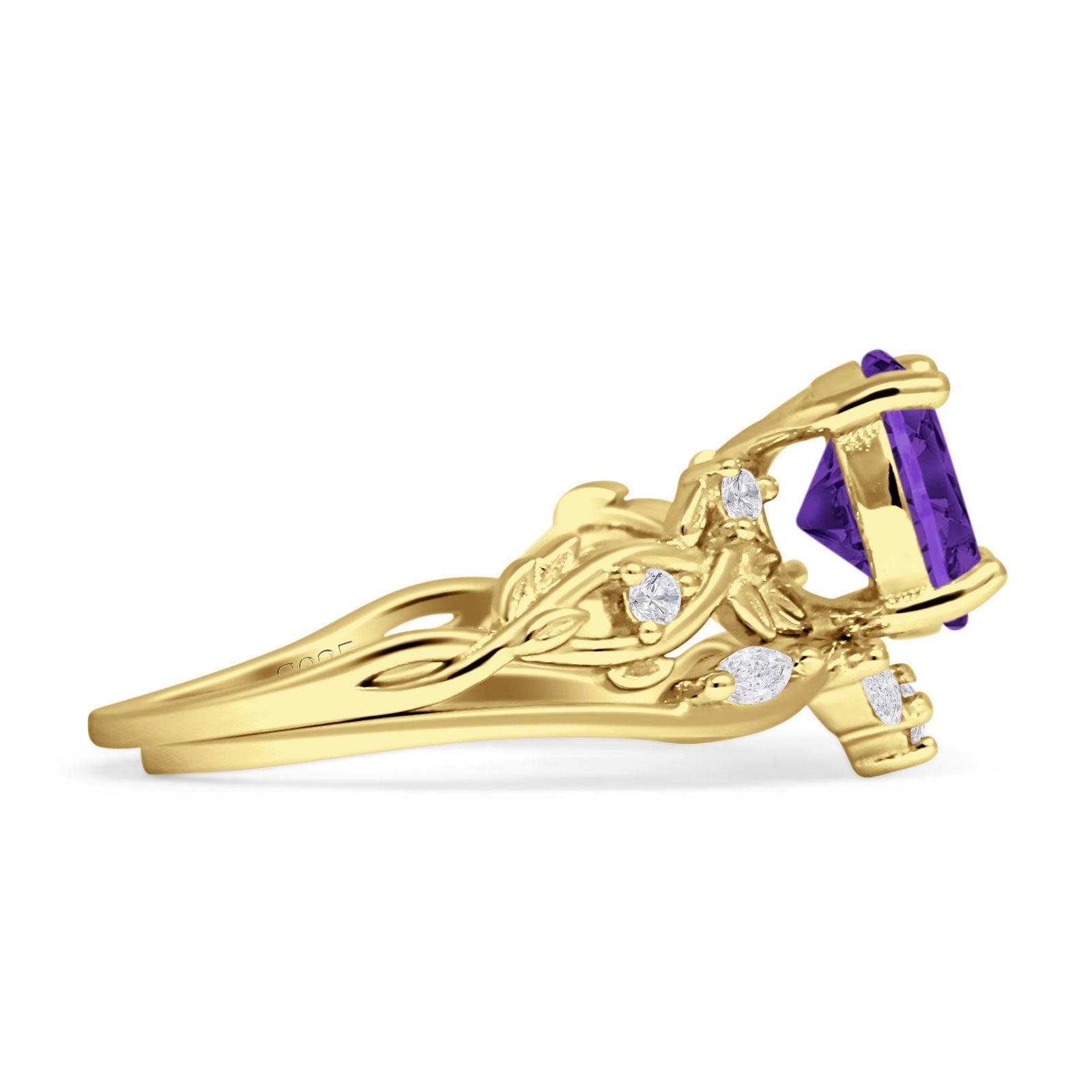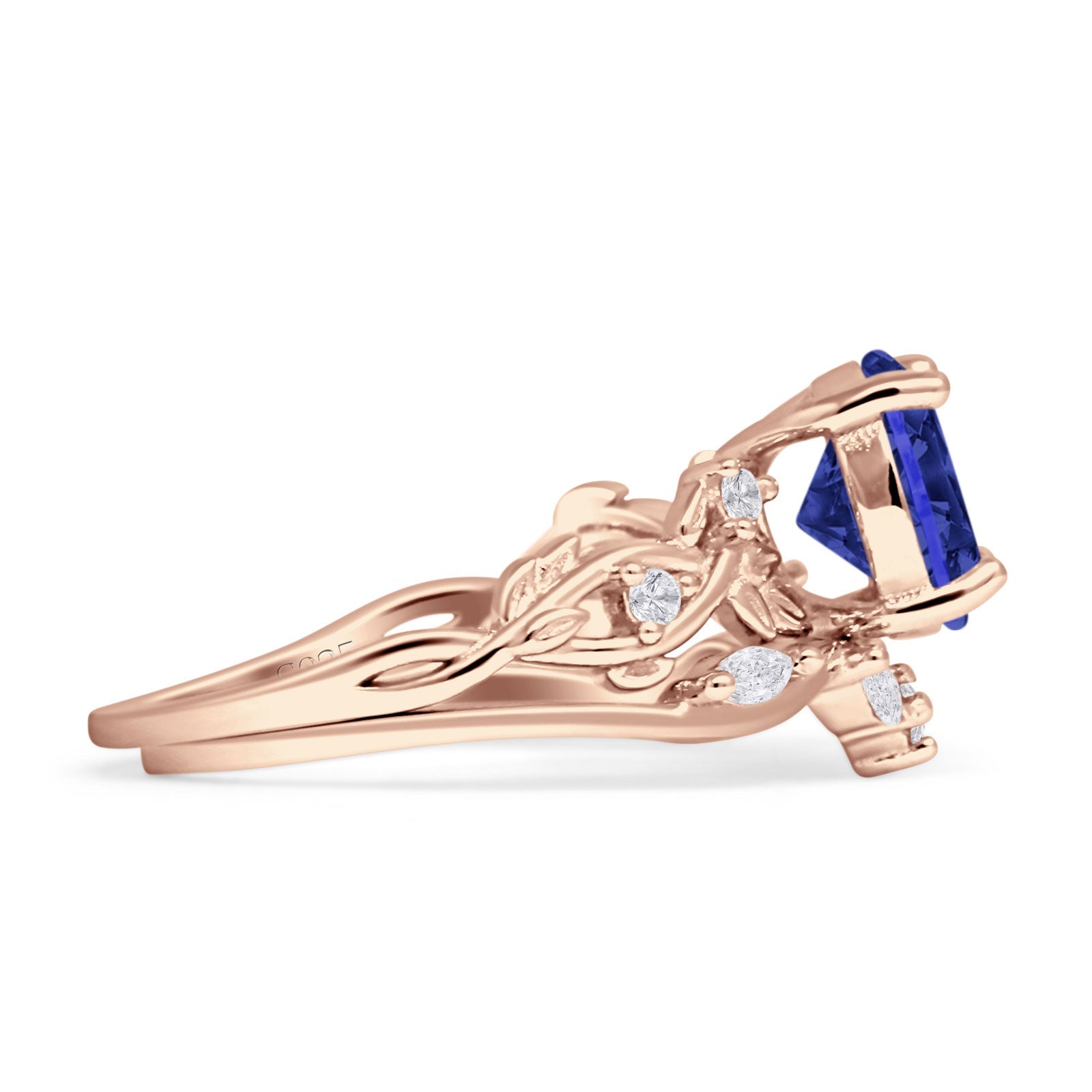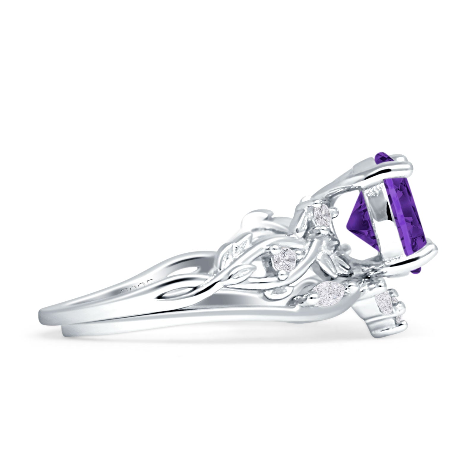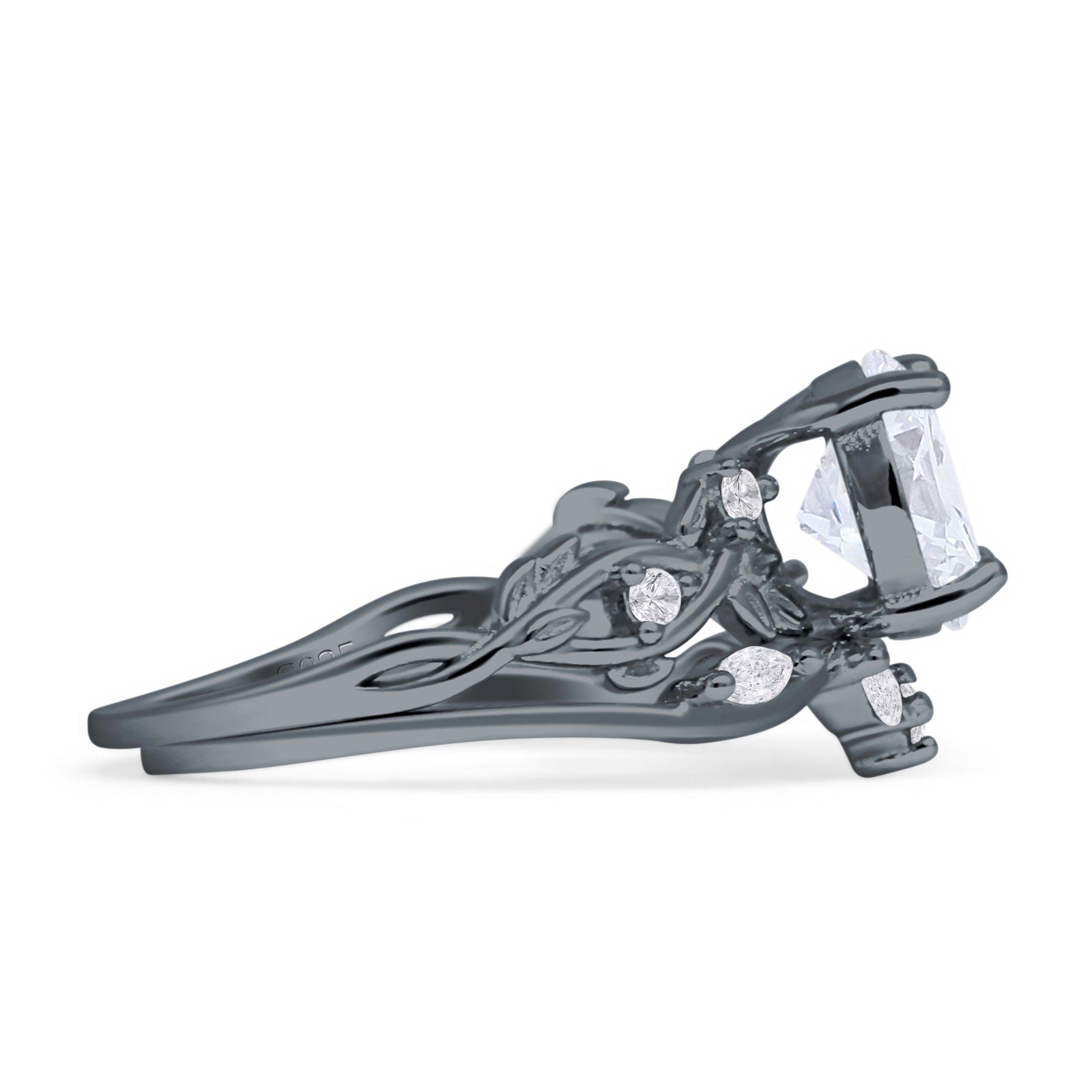 Art Deco Round Cubic Zirconia Infinity Leaf Design Bridal Ring 925 Sterling Silver