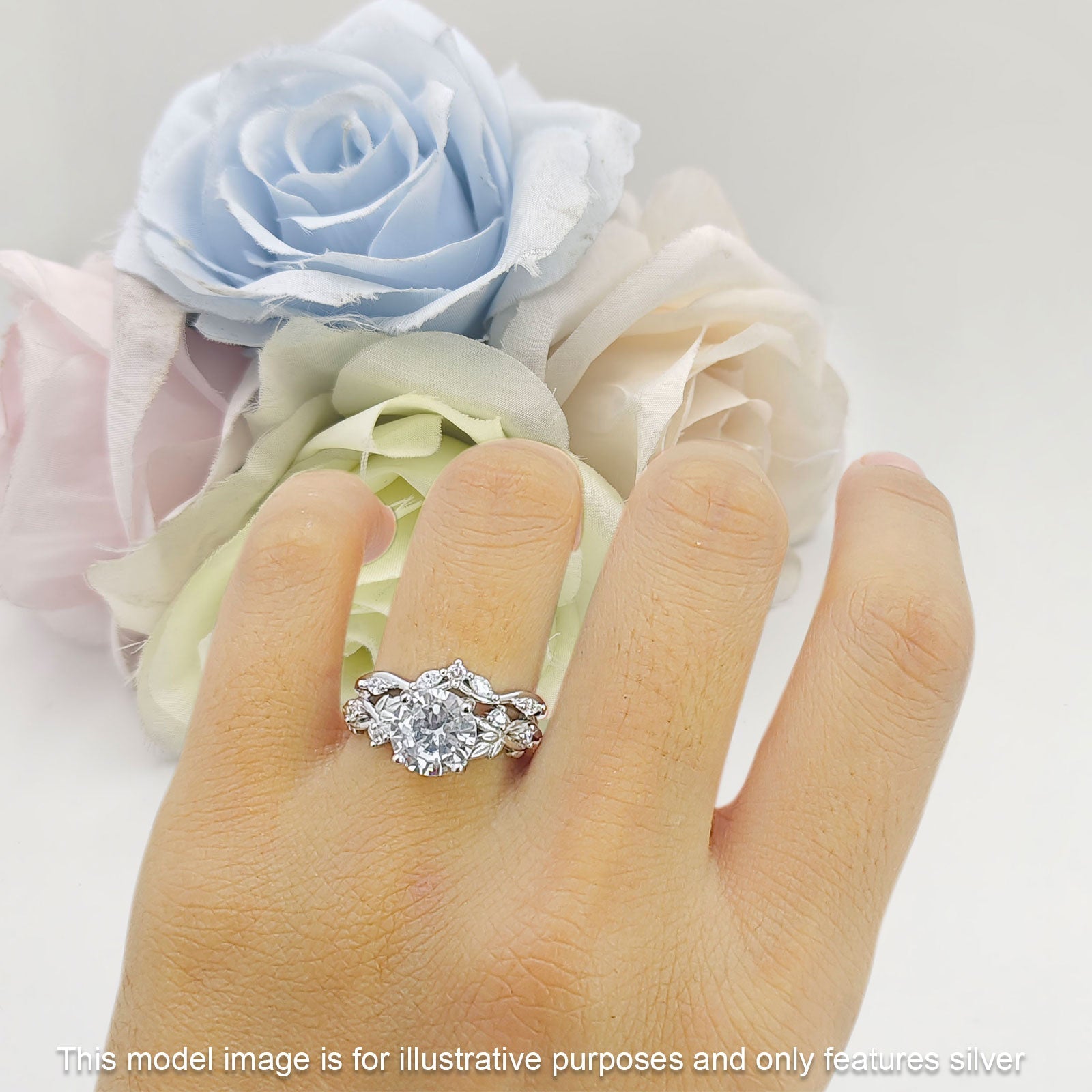 Indulge in the timeless allure of our art deco round cubic zirconia infinity leaf design bridal ring, an exquisite piece that exudes sophistication and romance. Meticulously crafted from premium 925 sterling silver, this ring boasts a captivating blend of art deco inspiration and nature-inspired elegance. The round cubic zirconia centerpiece sparkles with brilliance, complemented by an intricate infinity leaf design that adds a touch of organic grace. Make a statement on your special day with the art deco round cubic zirconia infinity leaf design bridal ring—a symbol of enduring elegance and commitment.
