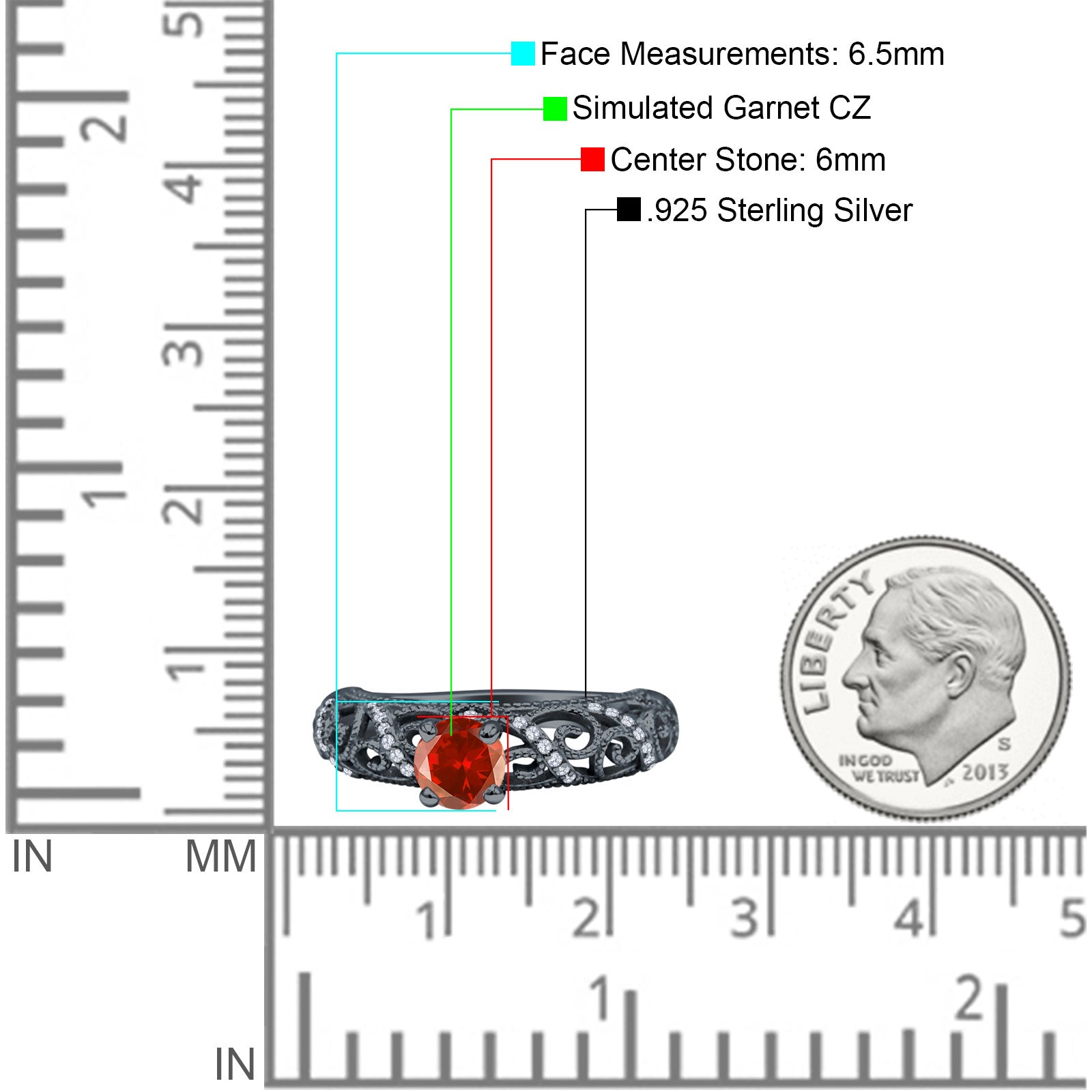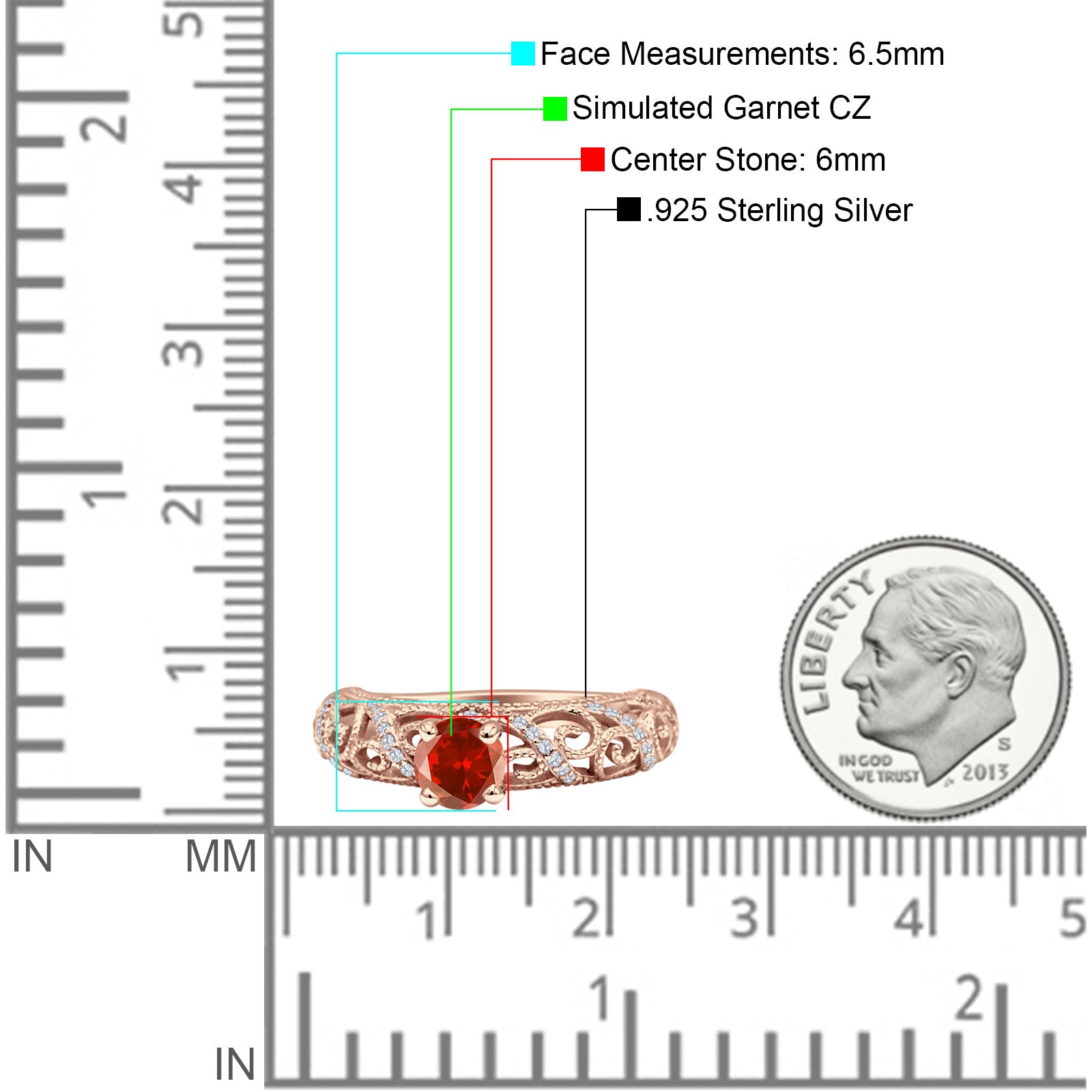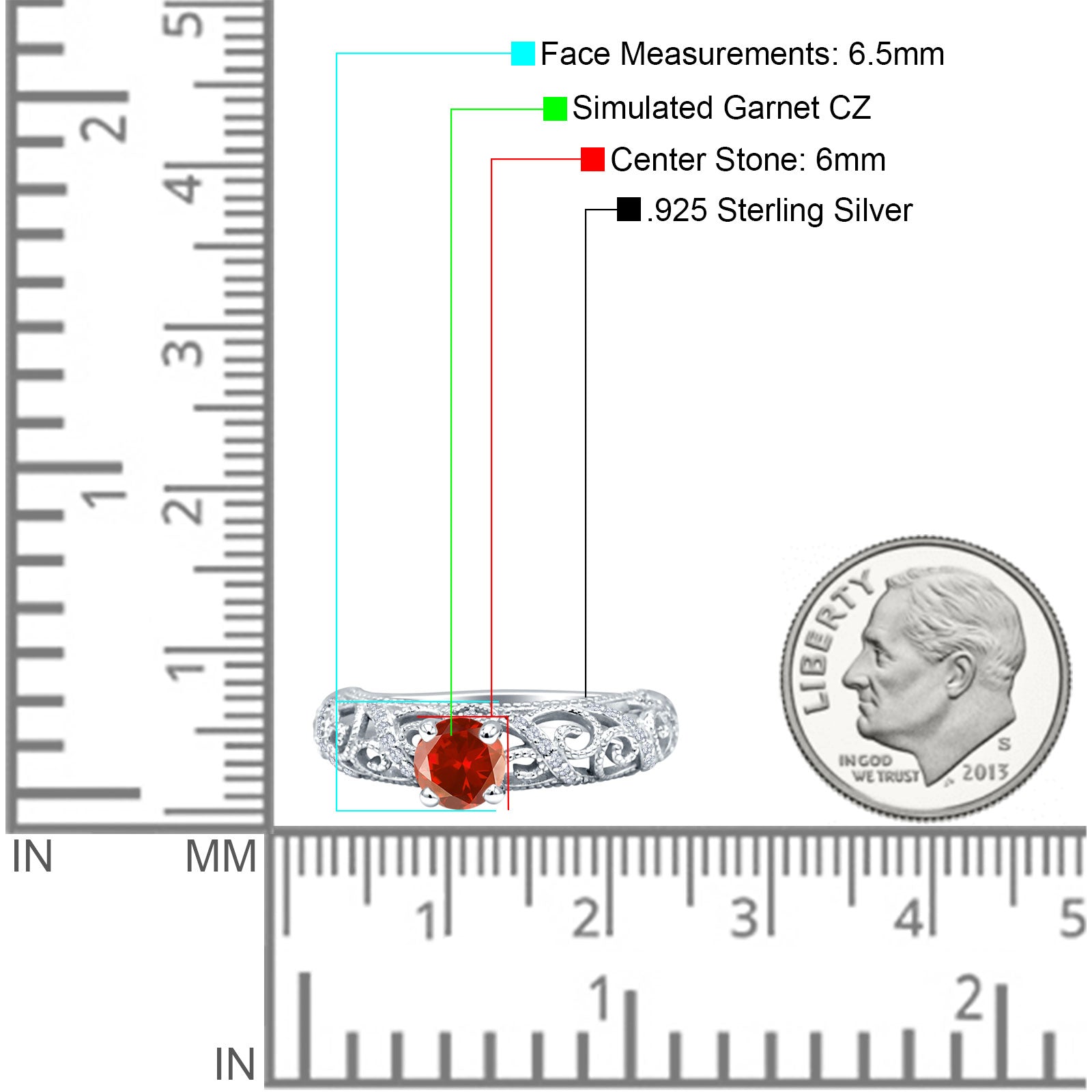 Art Deco Round Garnet CZ Filigree Ring 925 Sterling Silver