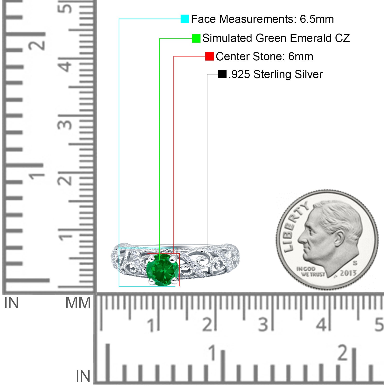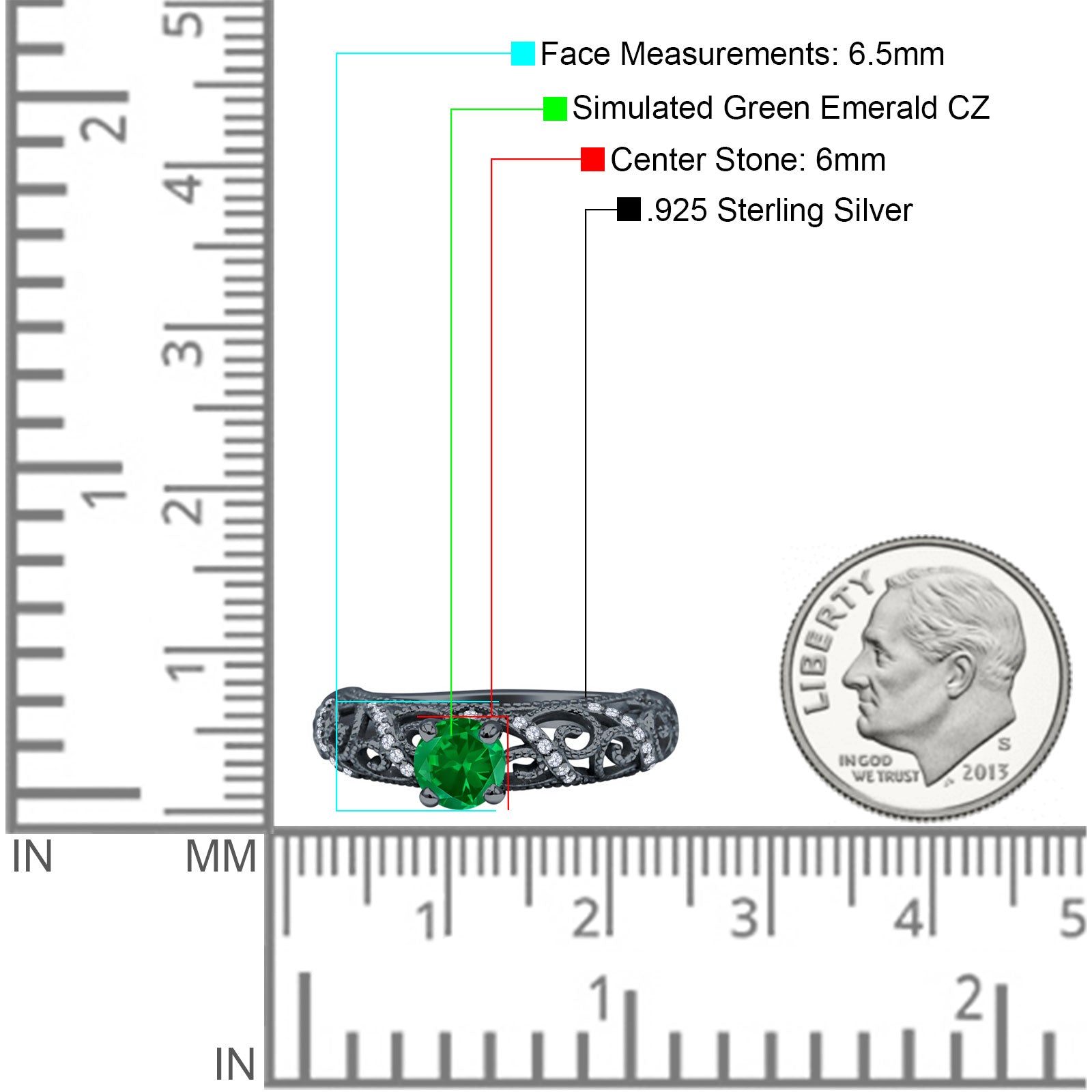 Ring Design: Round Green Emerald CZ Filigree Ring.