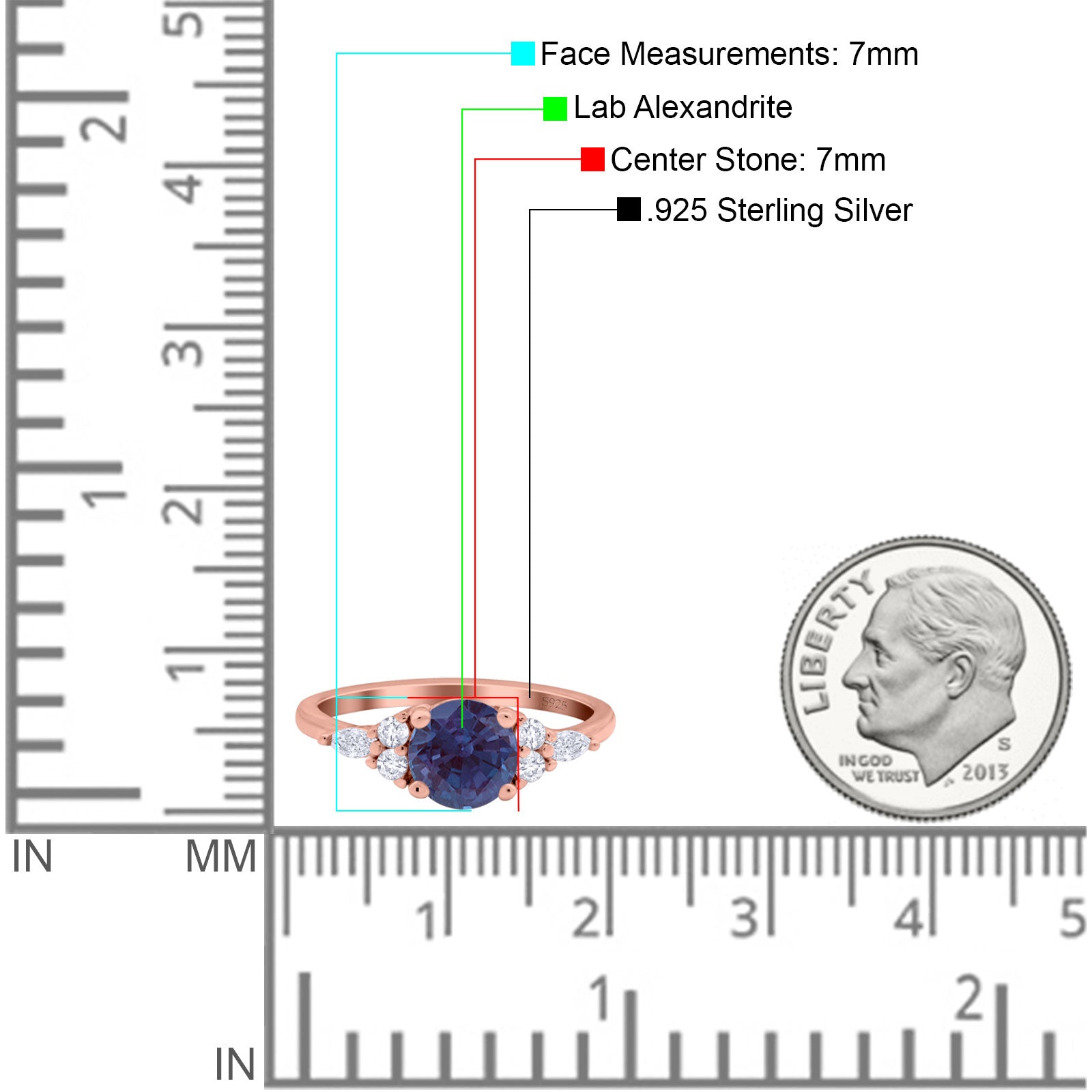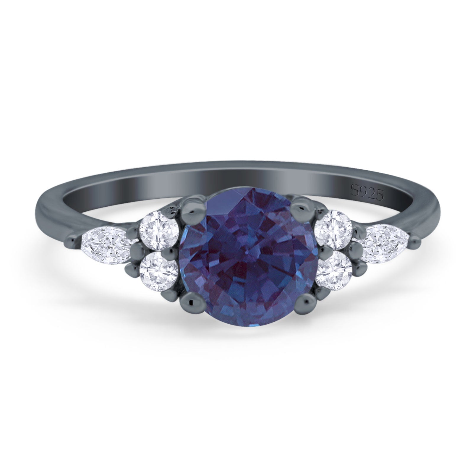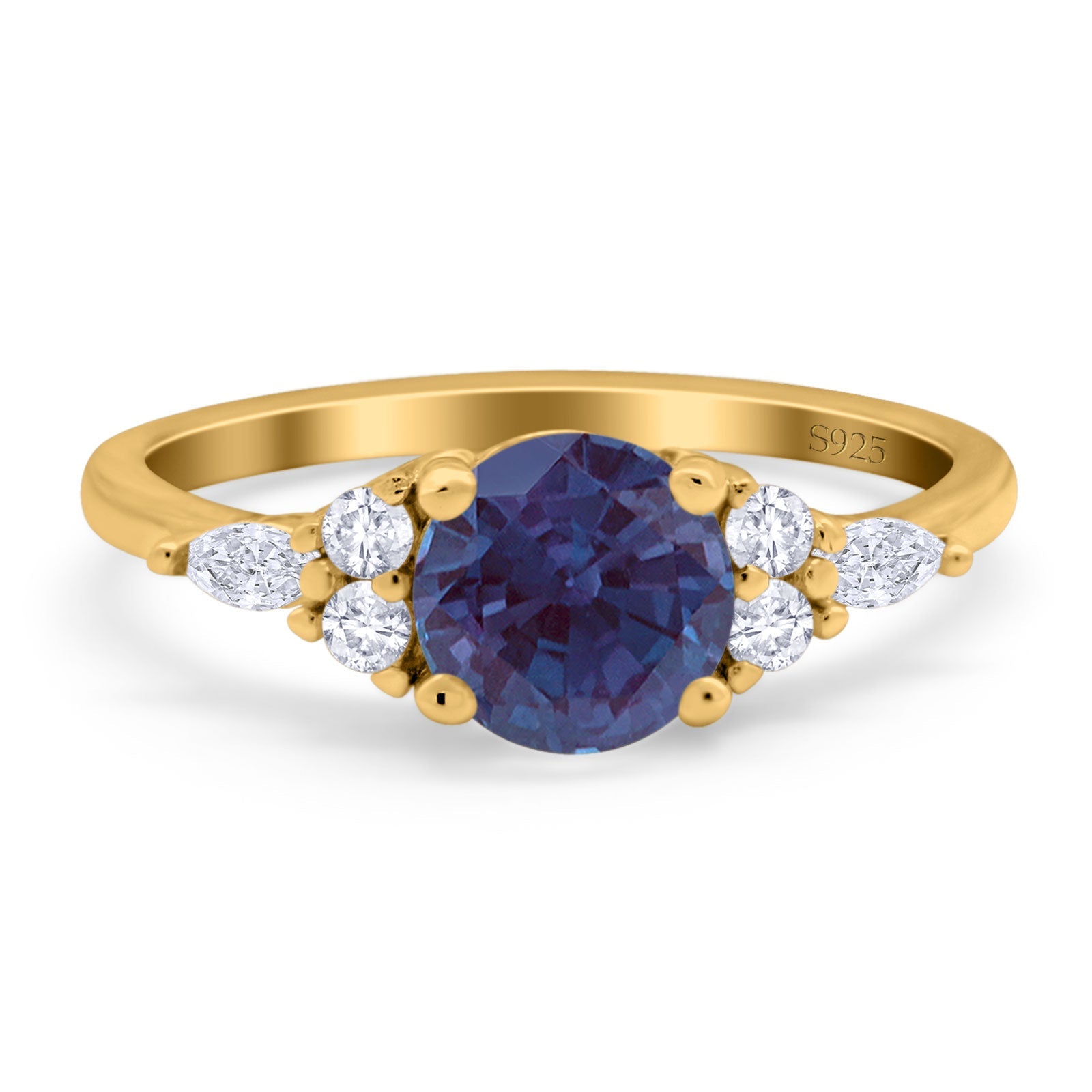 Art Deco Round Lab Alexandrite Marquise Style Ring 925 Sterling Silver