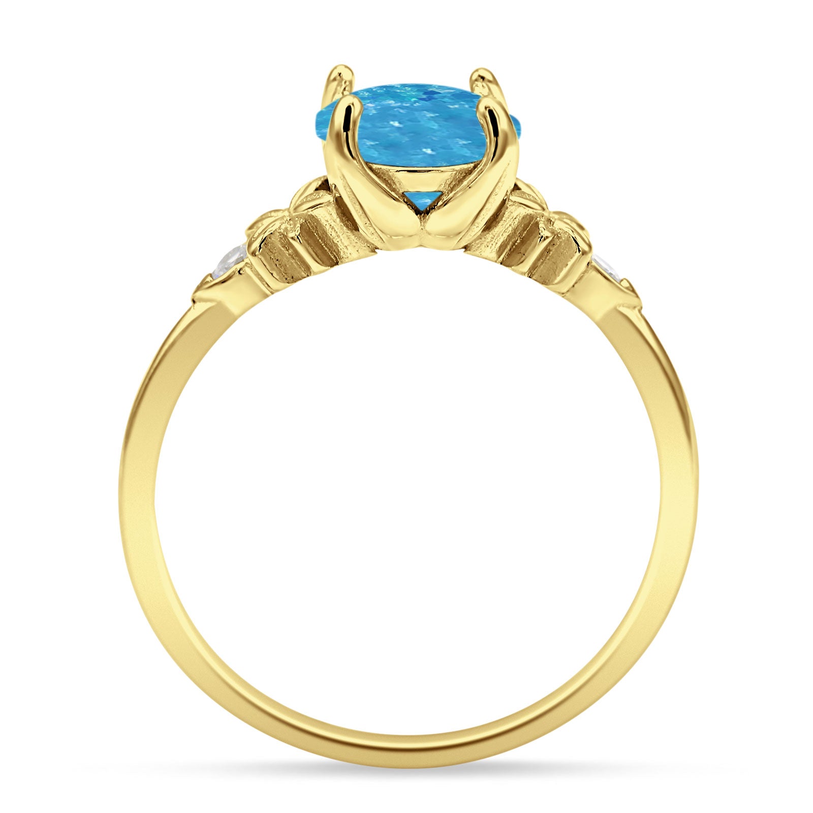 Ring Design: Round Lab Created Blue Opal Floral Ring.