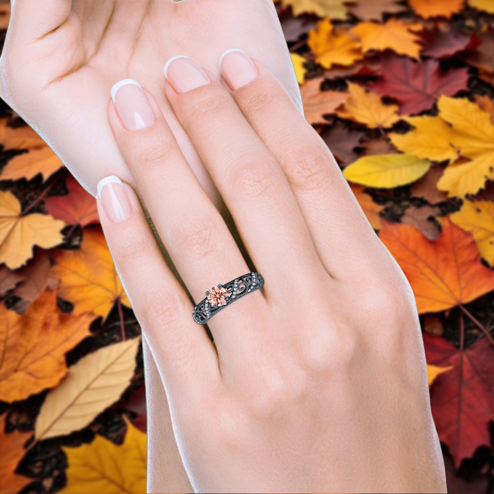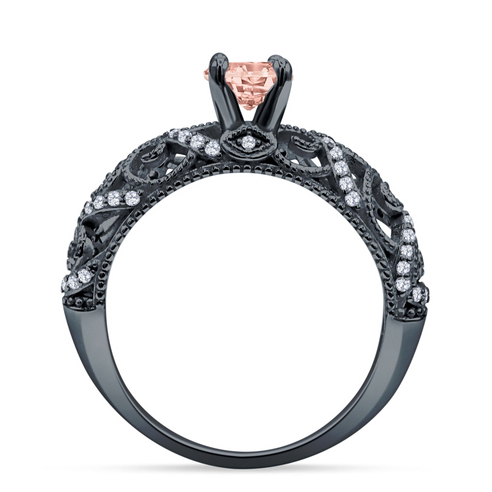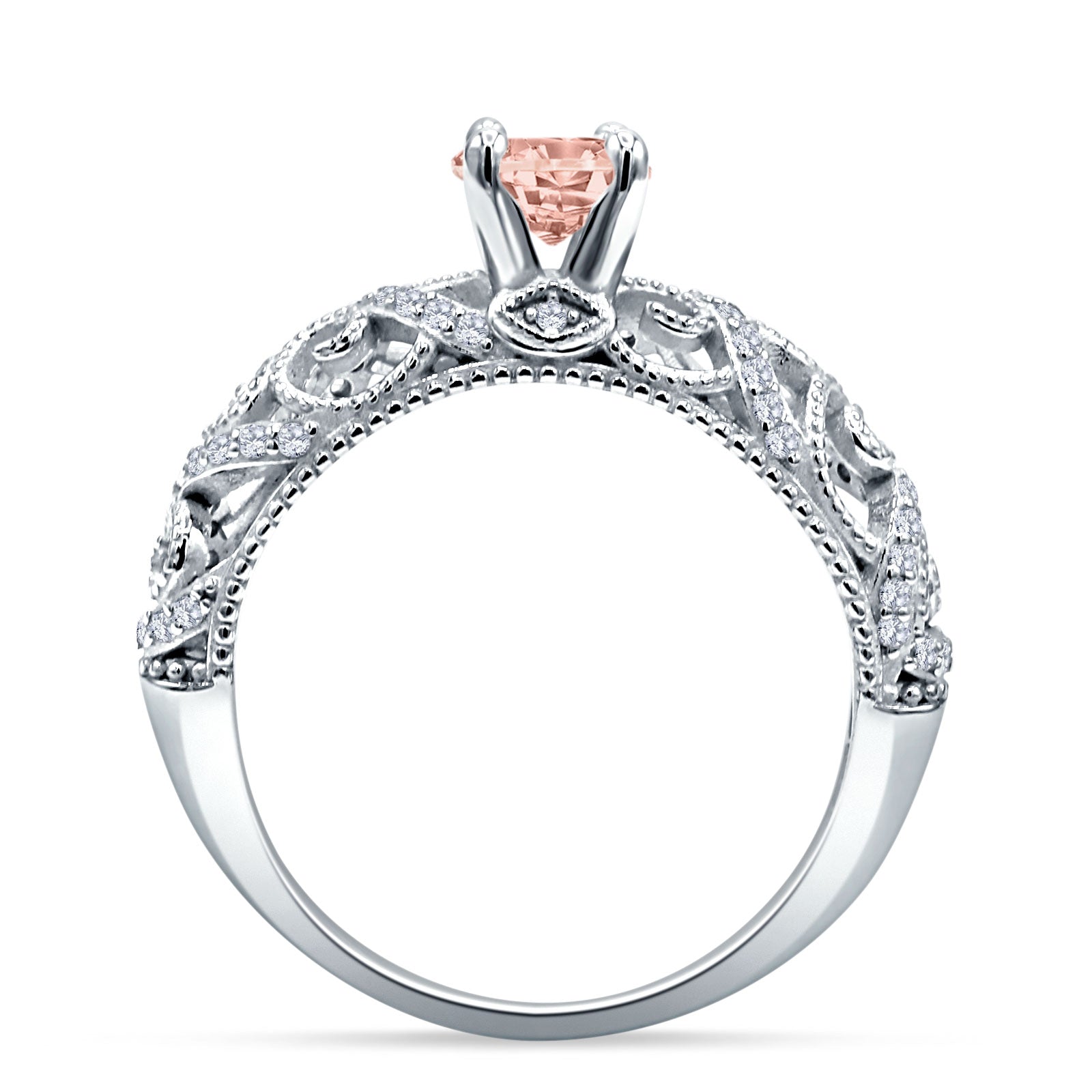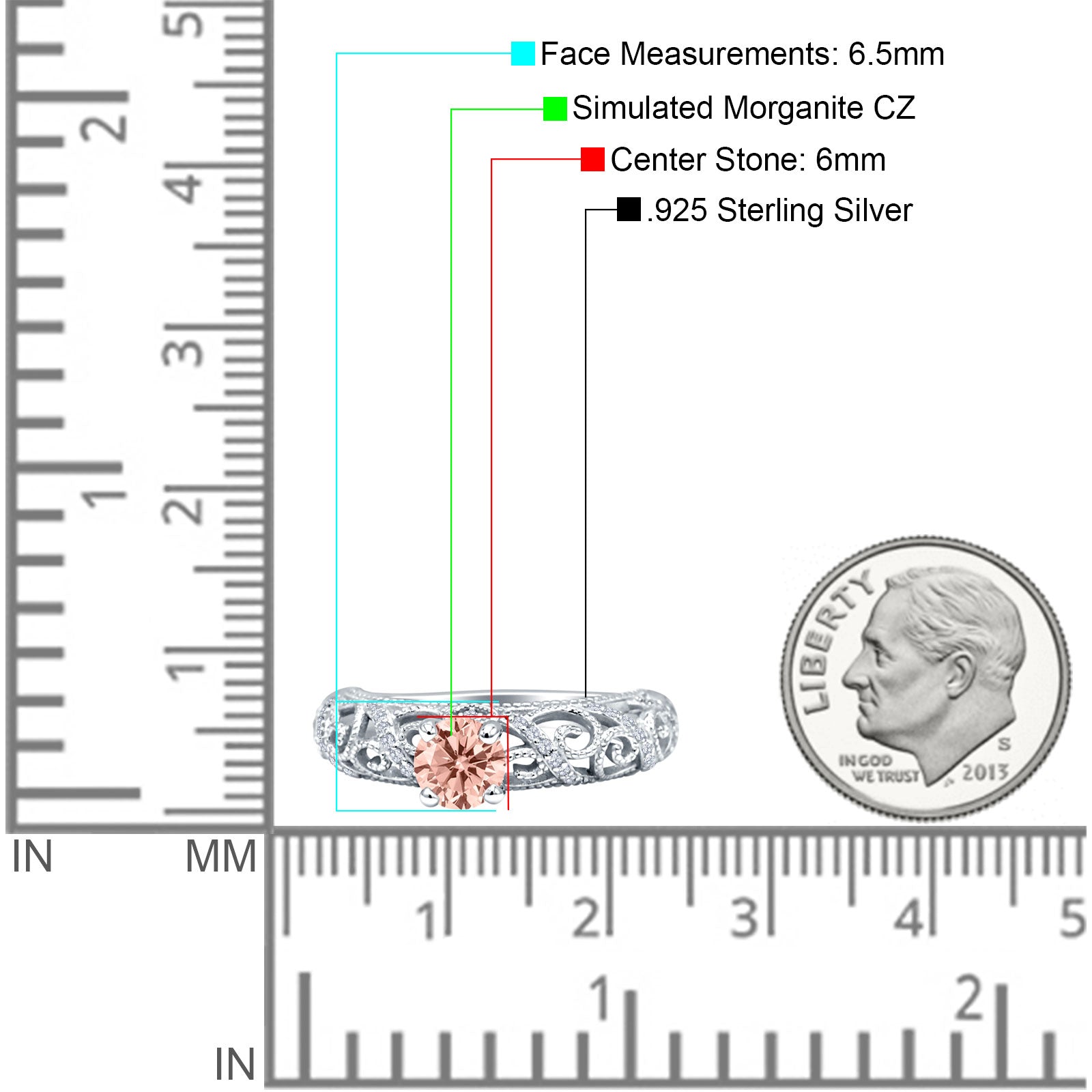 Art Deco Round Morganite CZ Filigree Ring 925 Sterling Silver