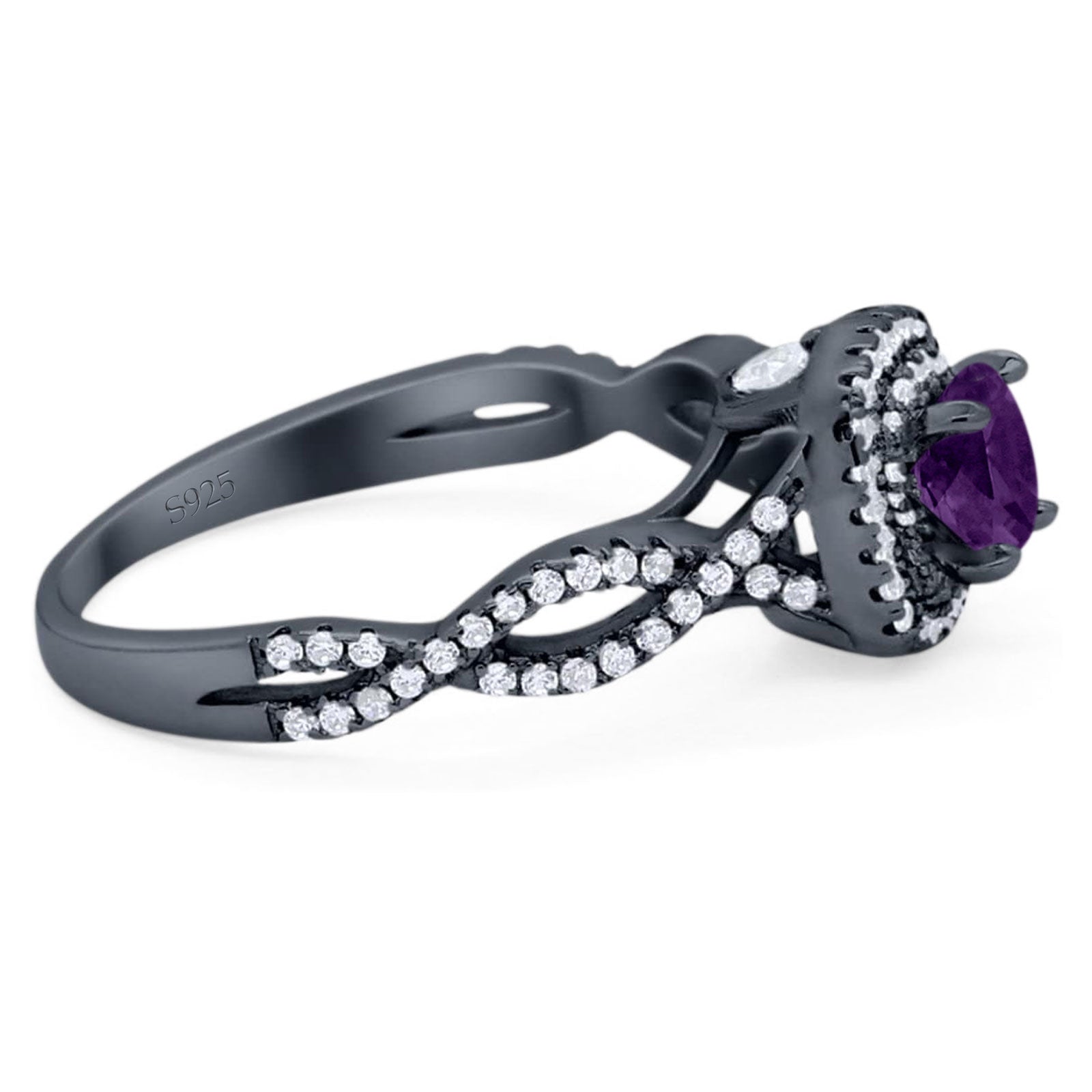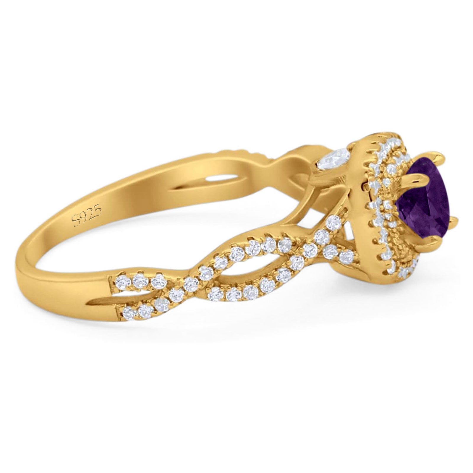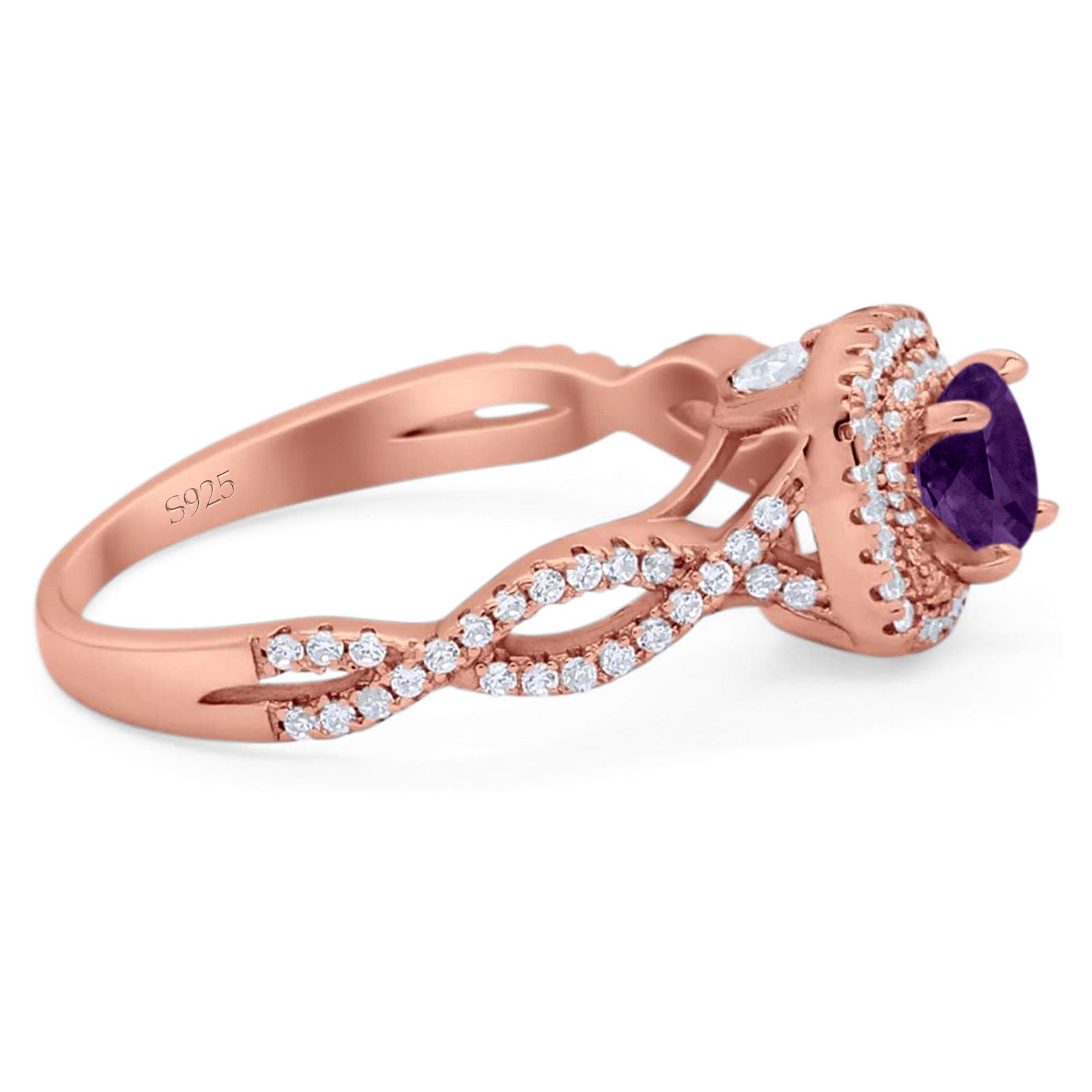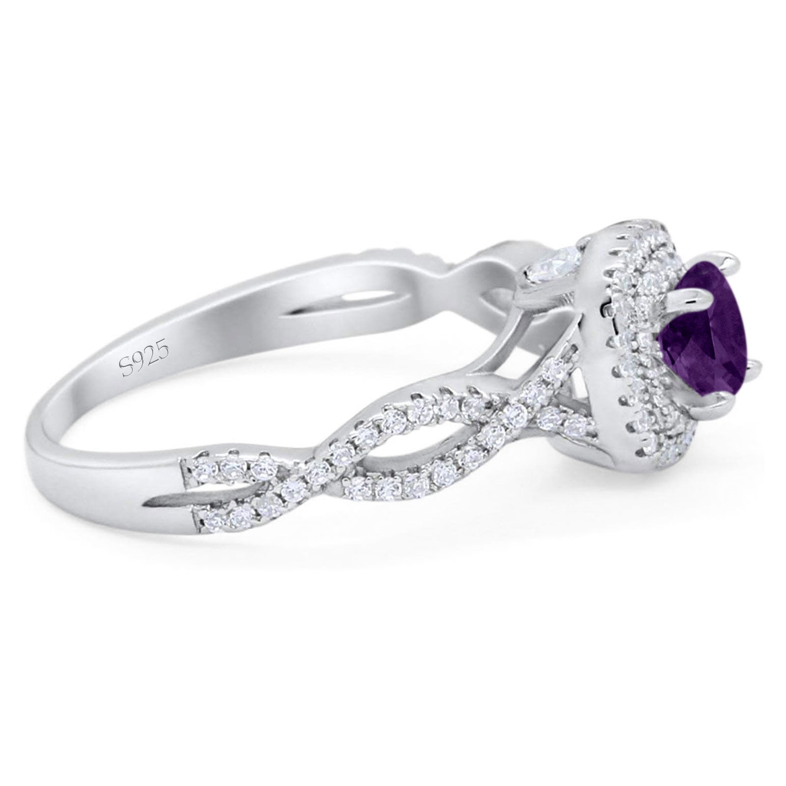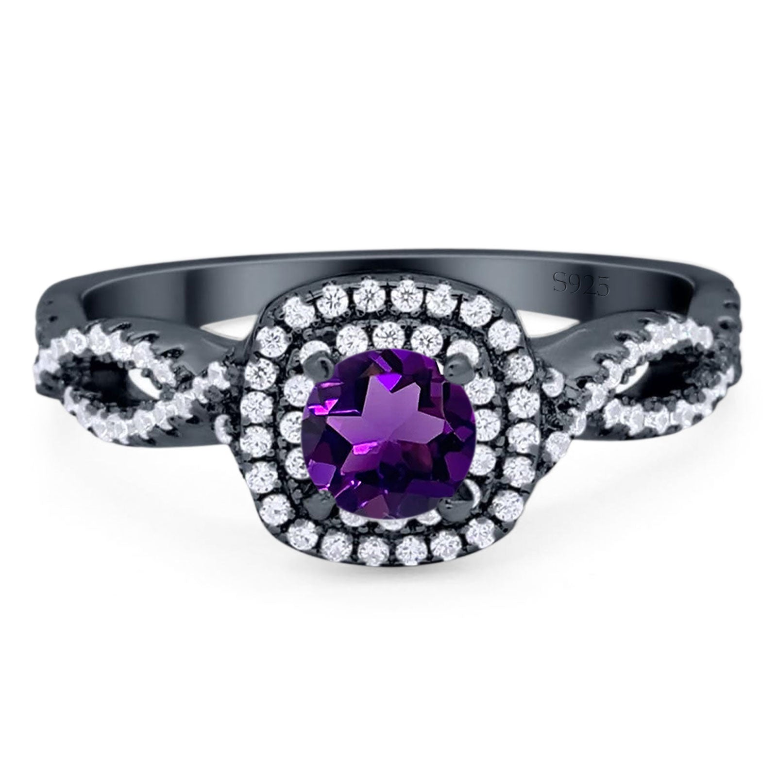Art Deco Round Natural Amethyst Infinity Shank Twisted Ring 925 Sterling Silver