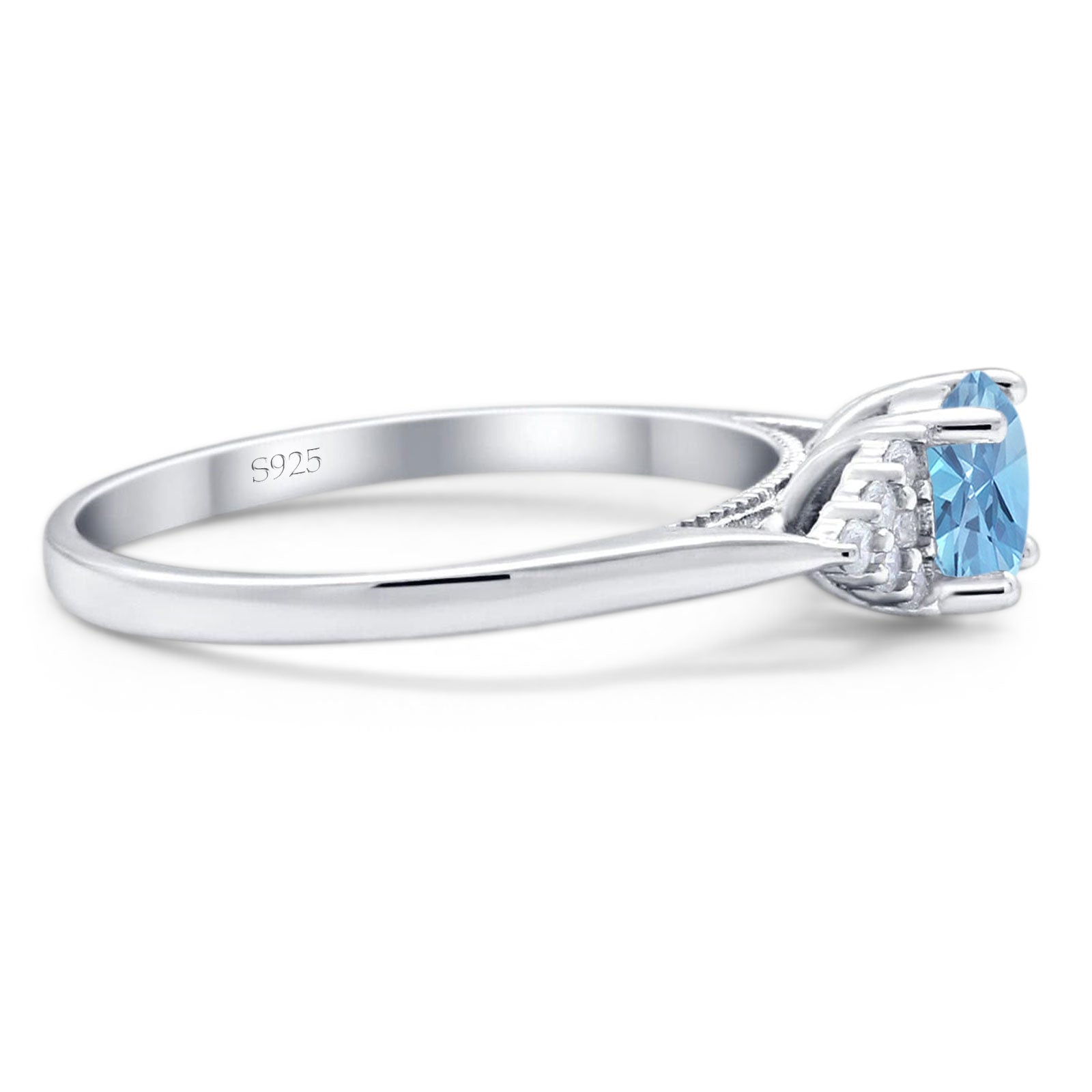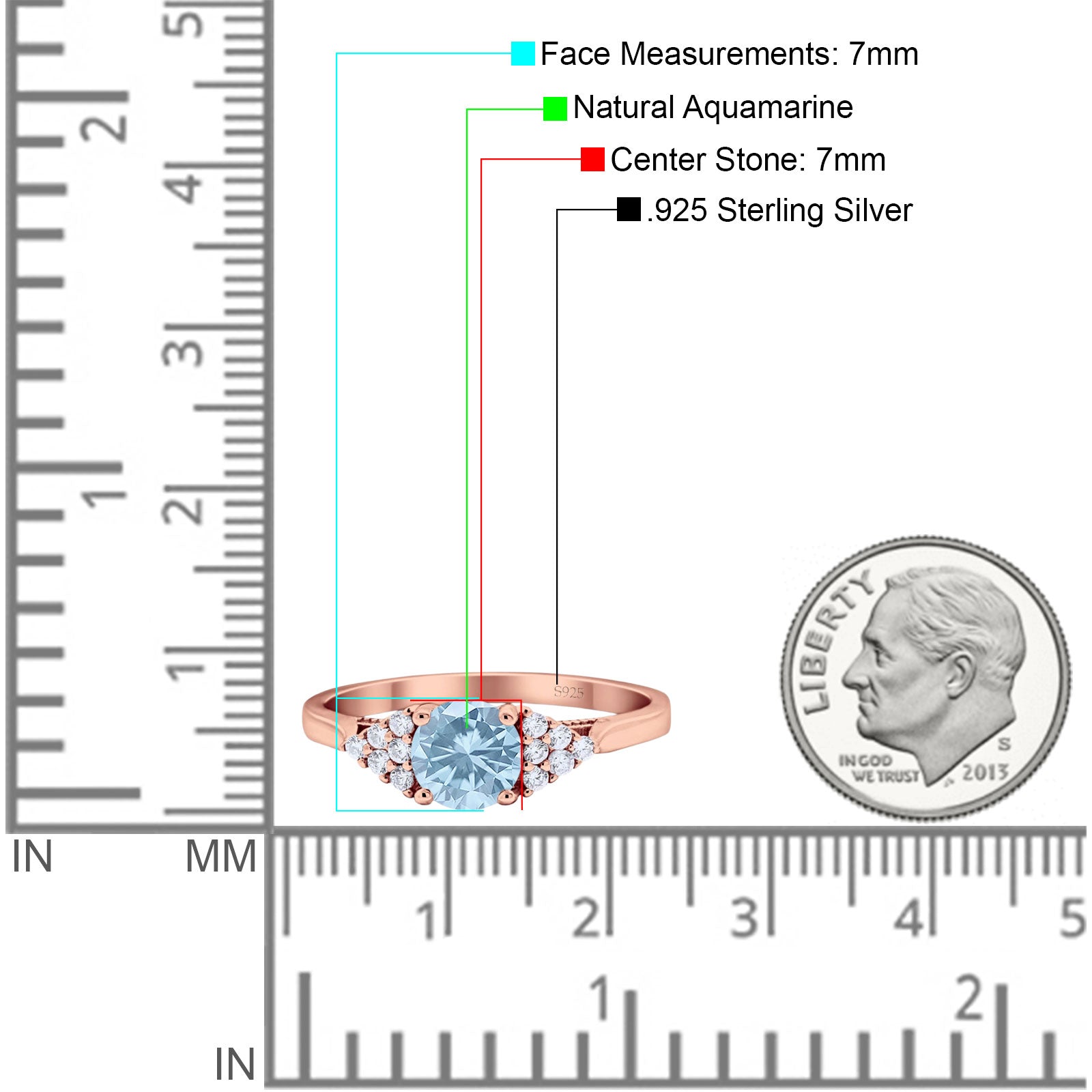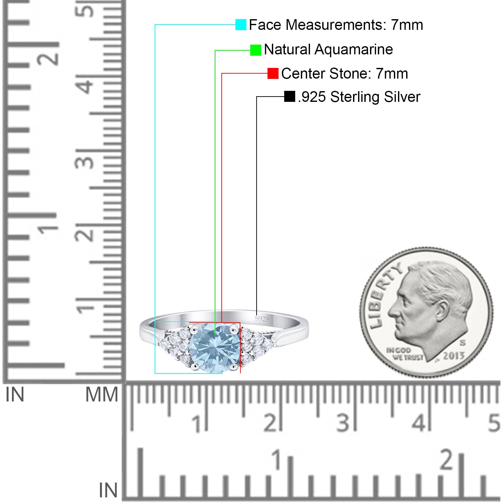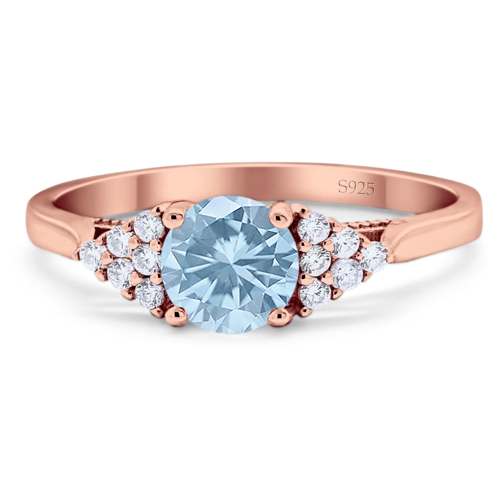Art Deco Round Natural Aquamarine Cluster Wedding Ring 925 Sterling Silver