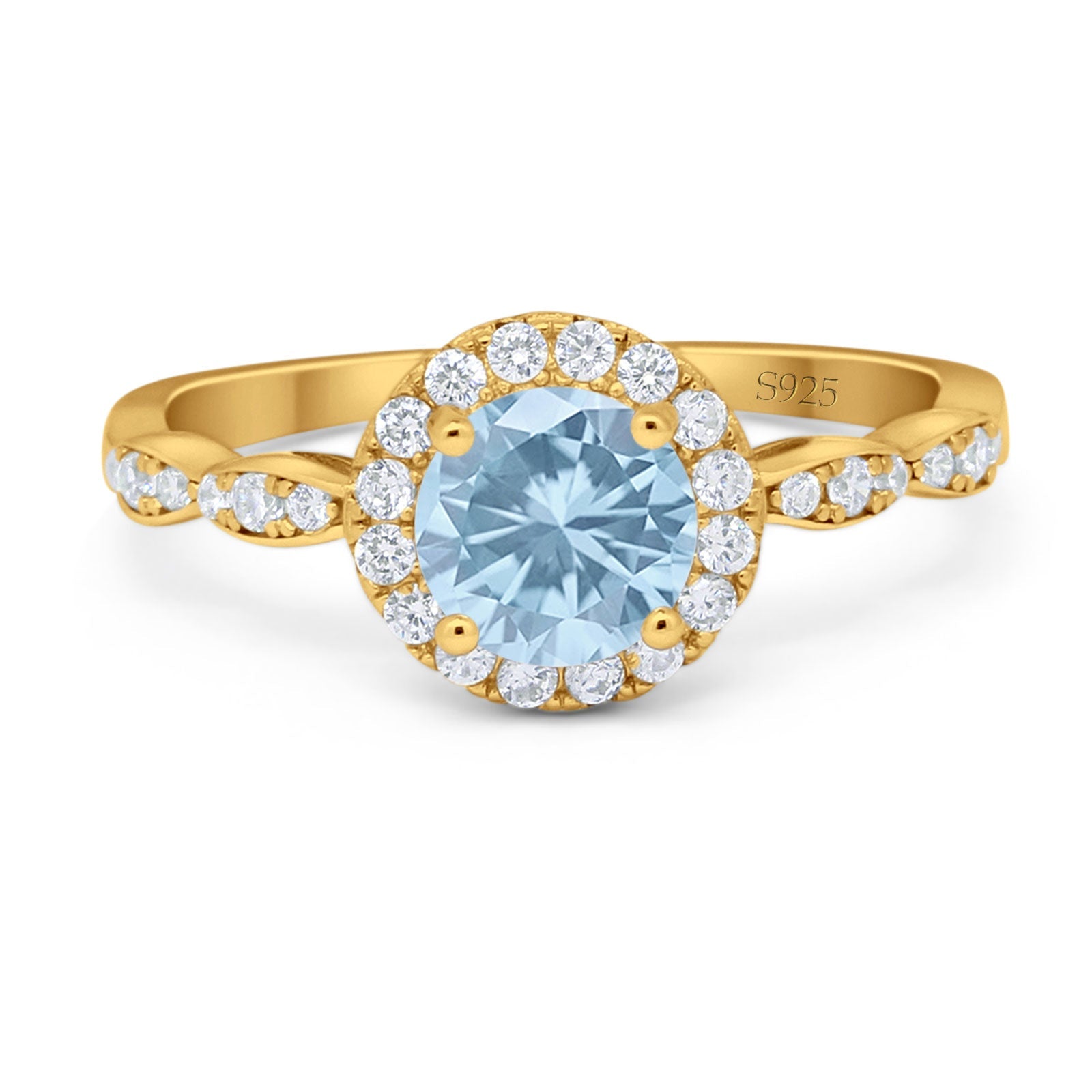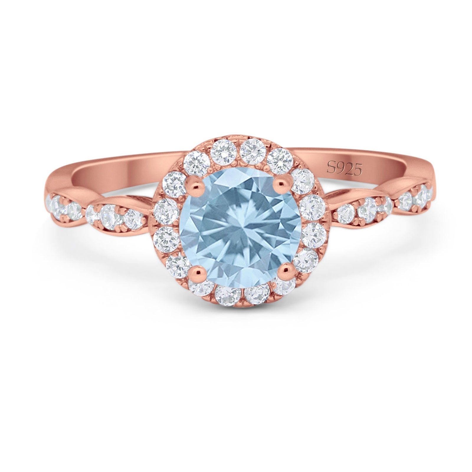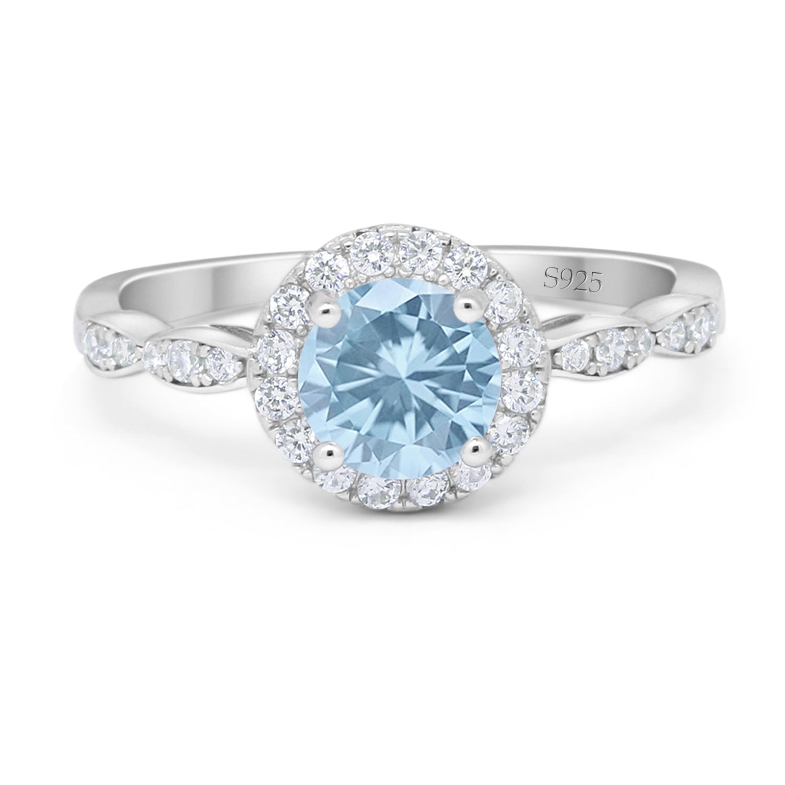 Art Deco Round Natural Aquamarine Halo Engagement Ring 925 Sterling Silver