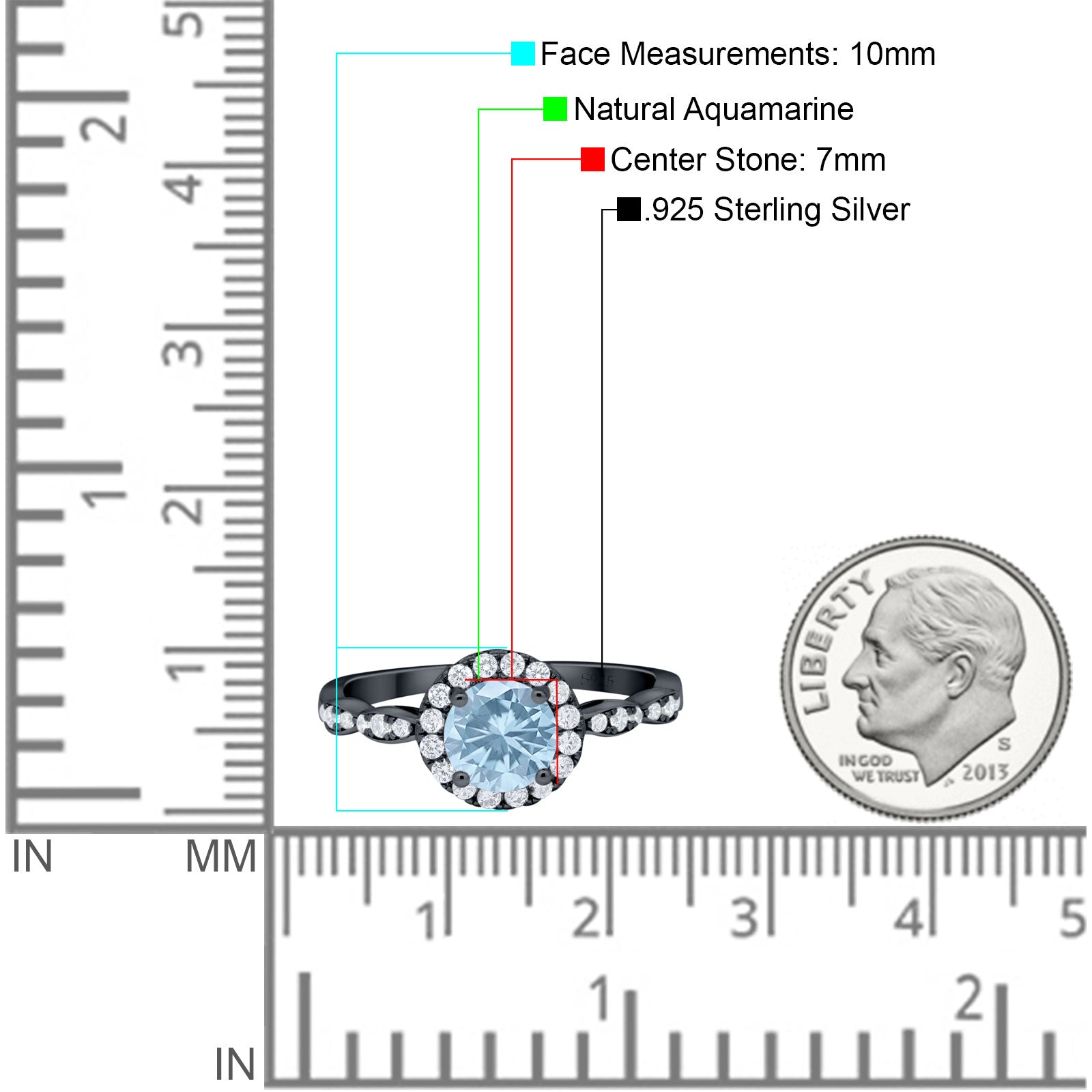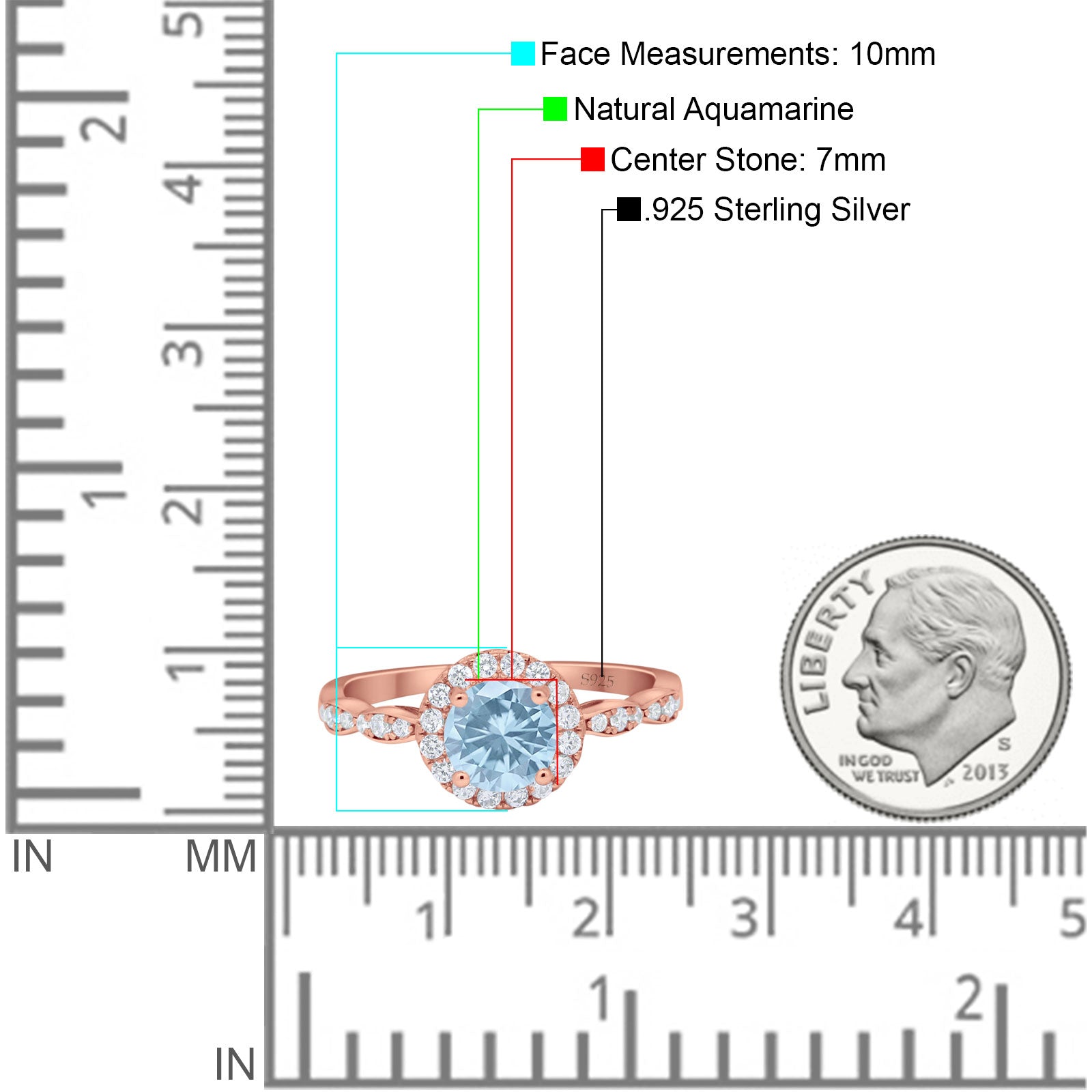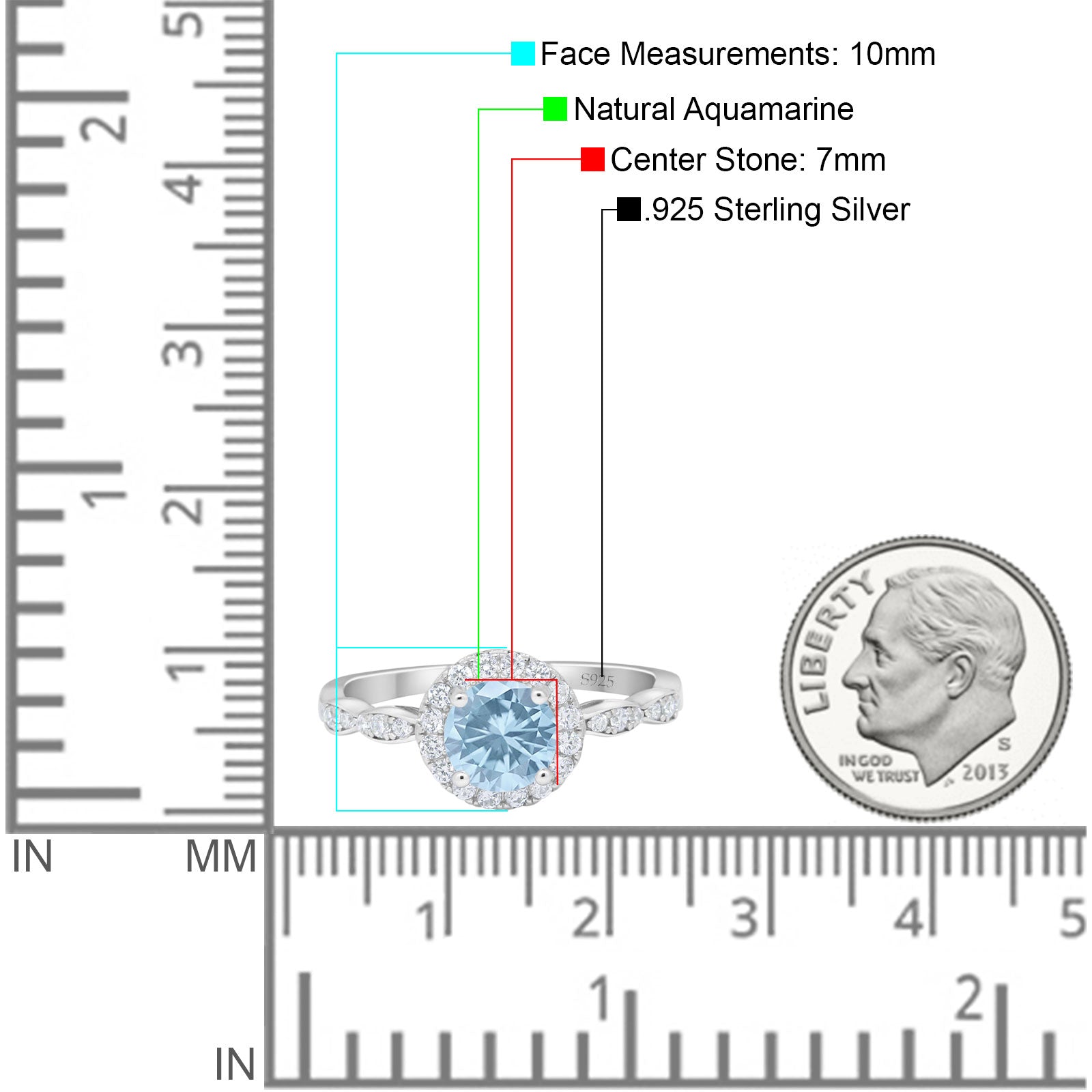 Art Deco Round Natural Aquamarine Halo Engagement Ring 925 Sterling Silver