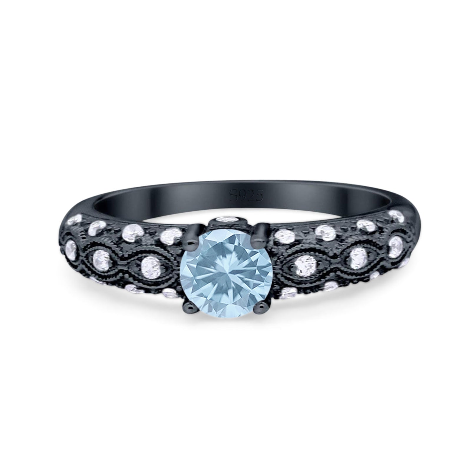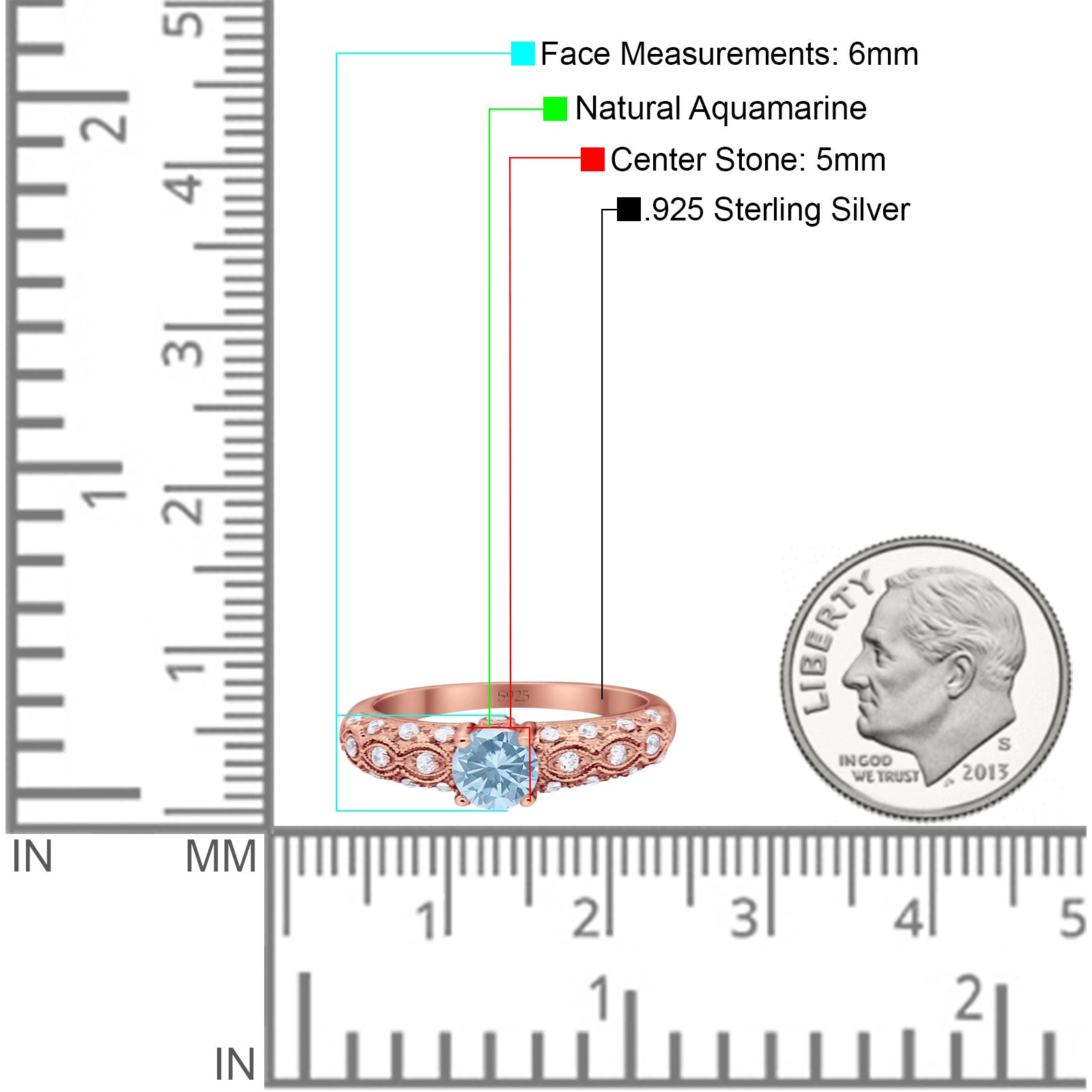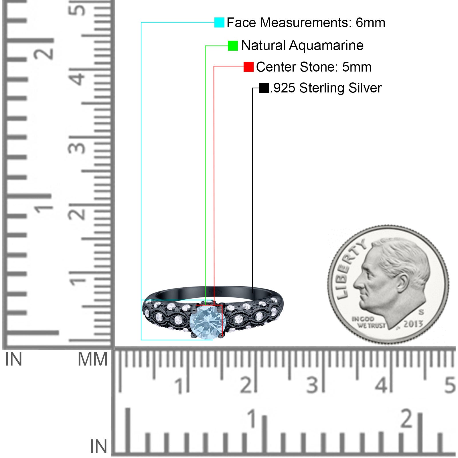 Art Deco Round Natural Aquamarine Solitaire Ring 925 Sterling Silver
