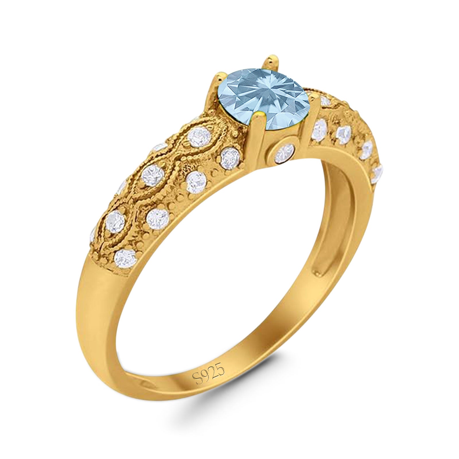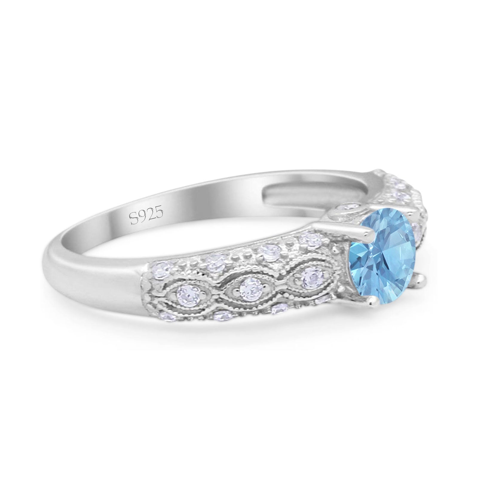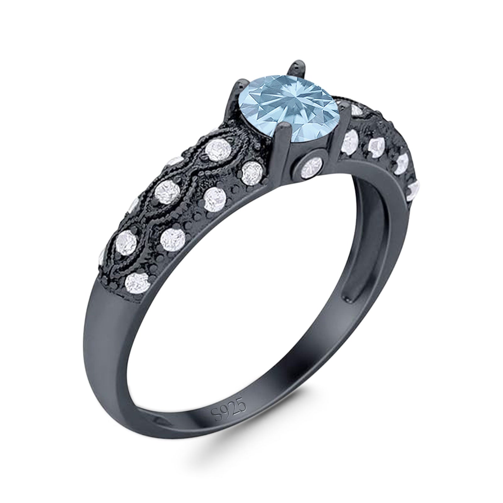 Art Deco Round Natural Aquamarine Solitaire Ring 925 Sterling Silver