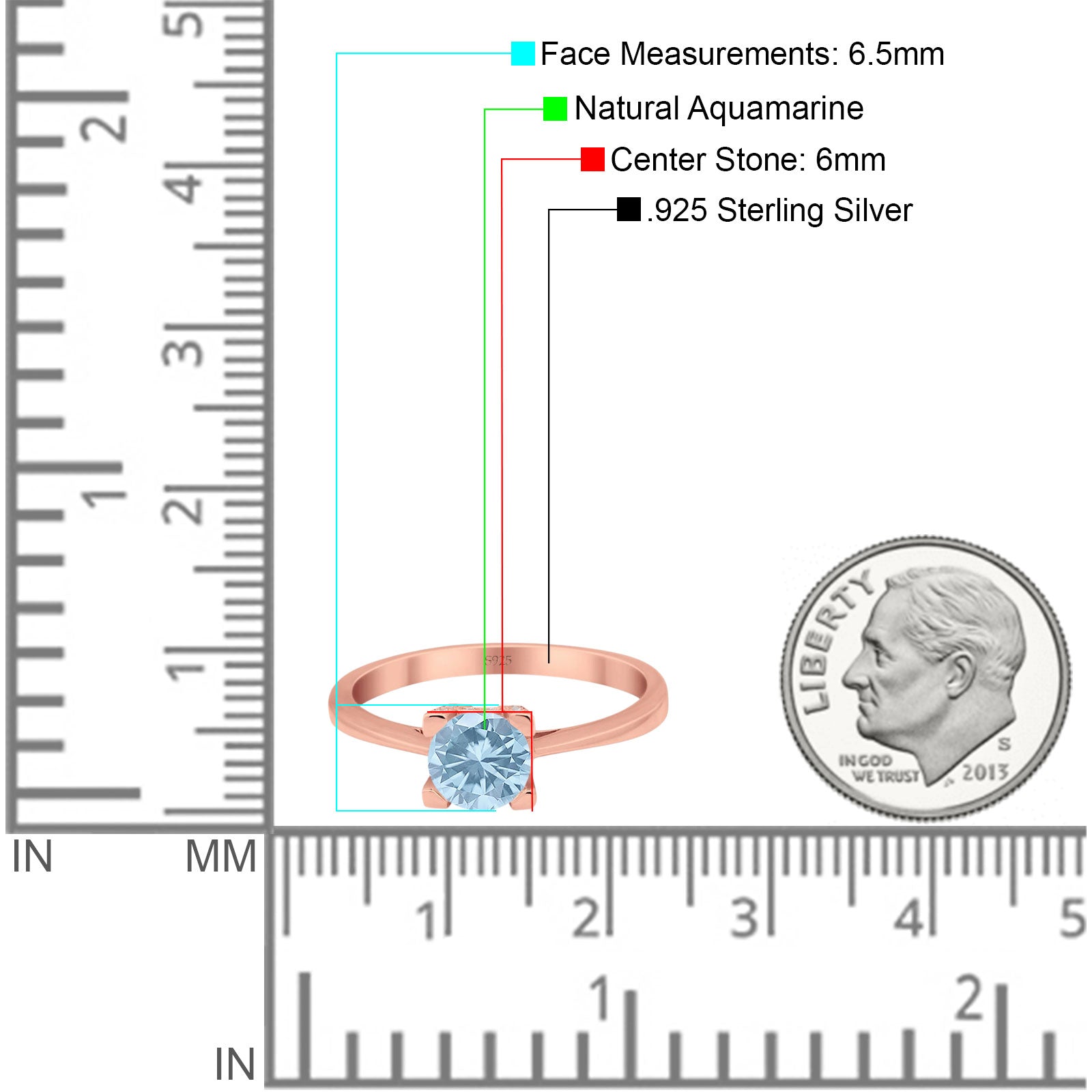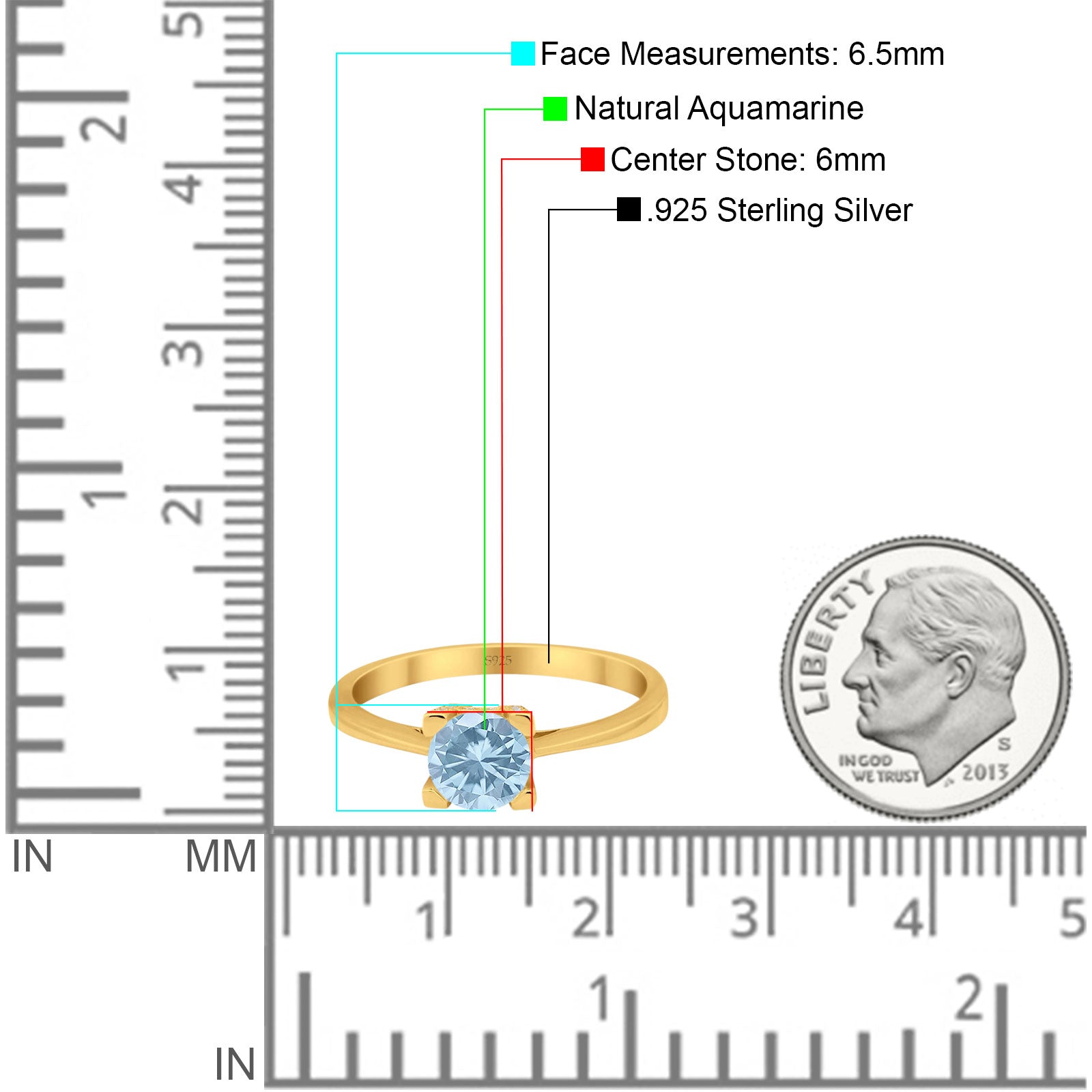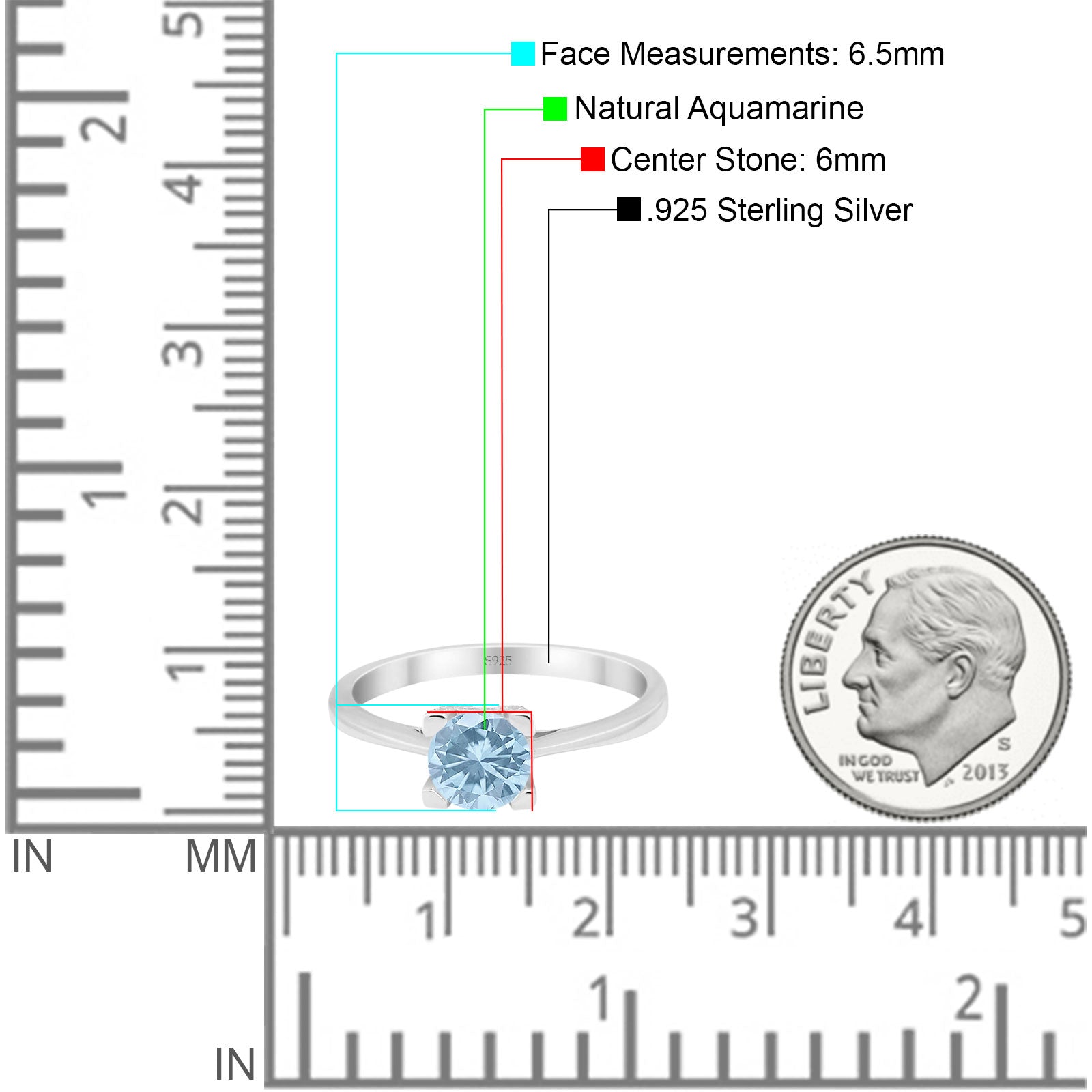 Art Deco Round Natural Aquamarine Solitaire Ring 925 Sterling Silver
