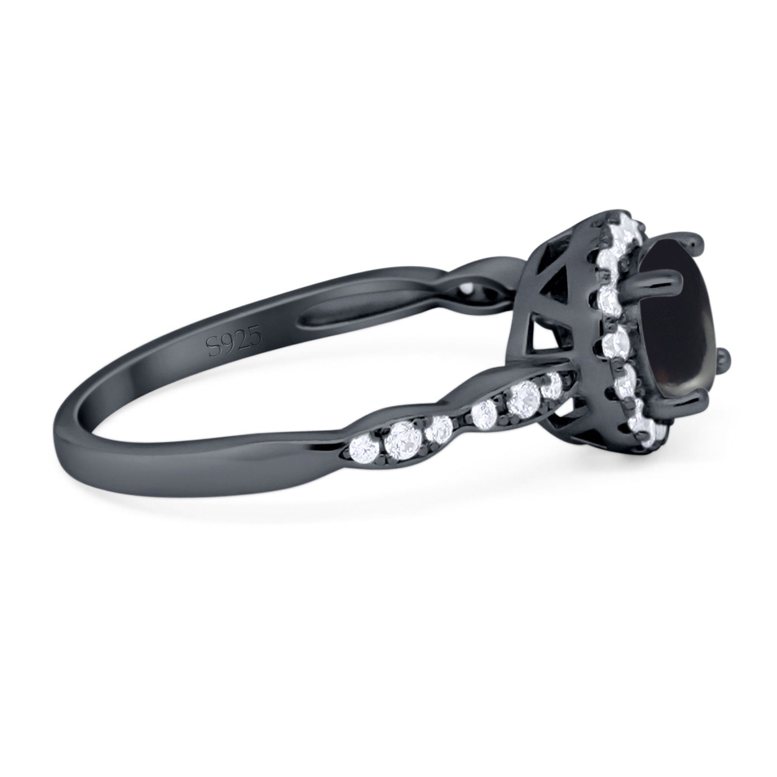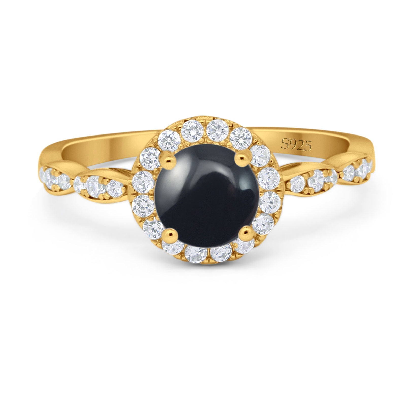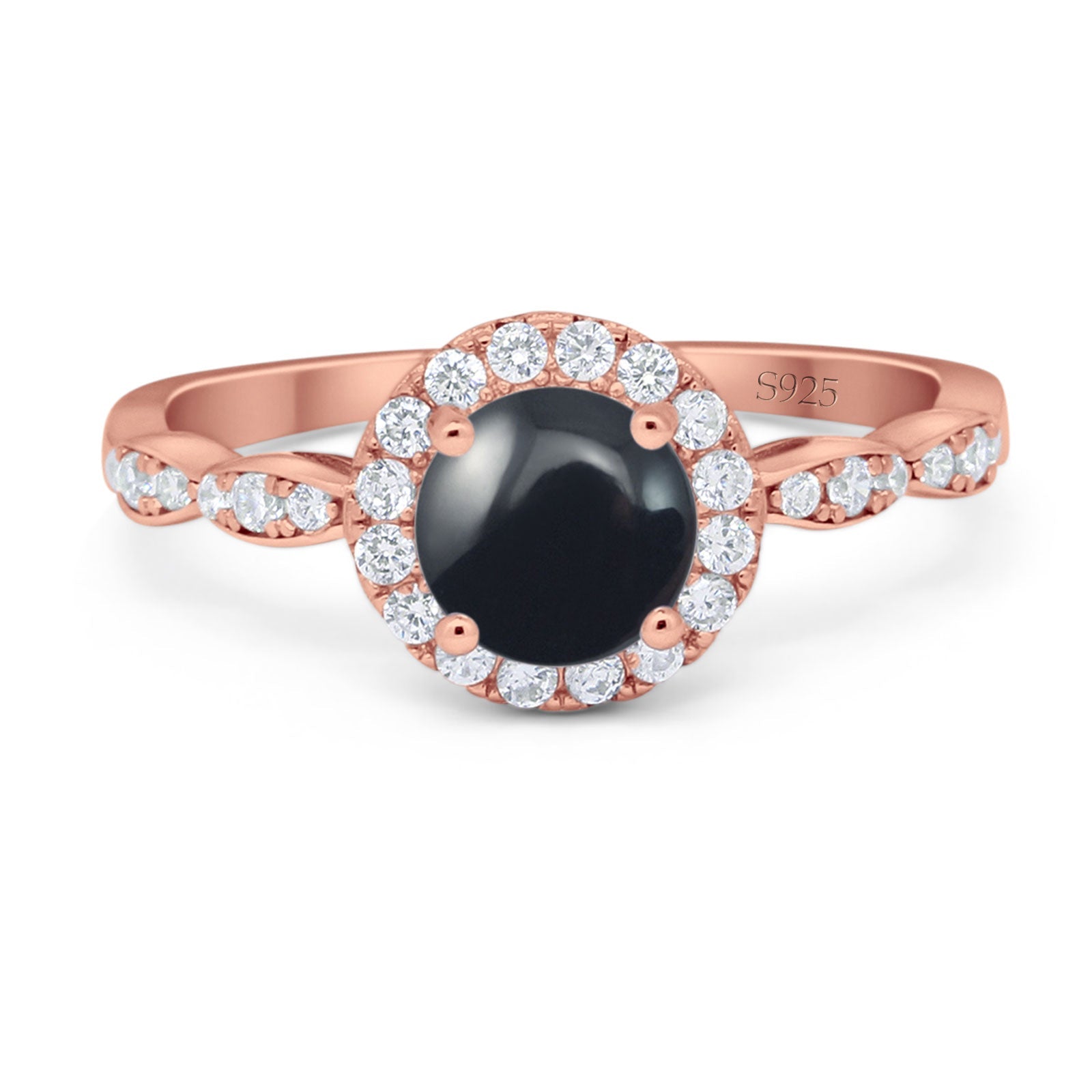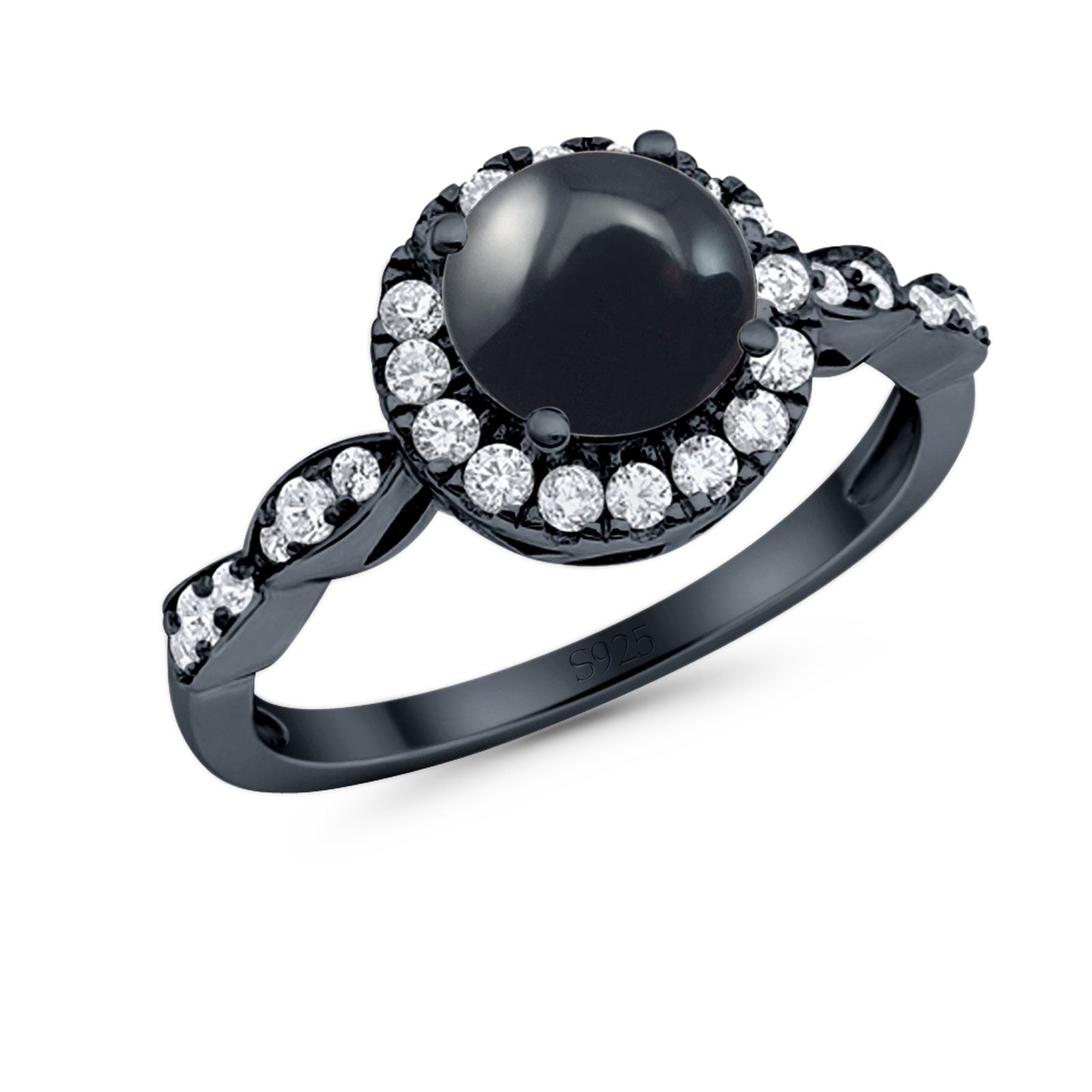 Art Deco Round Natural Black Onyx Halo Engagement Ring 925 Sterling Silver