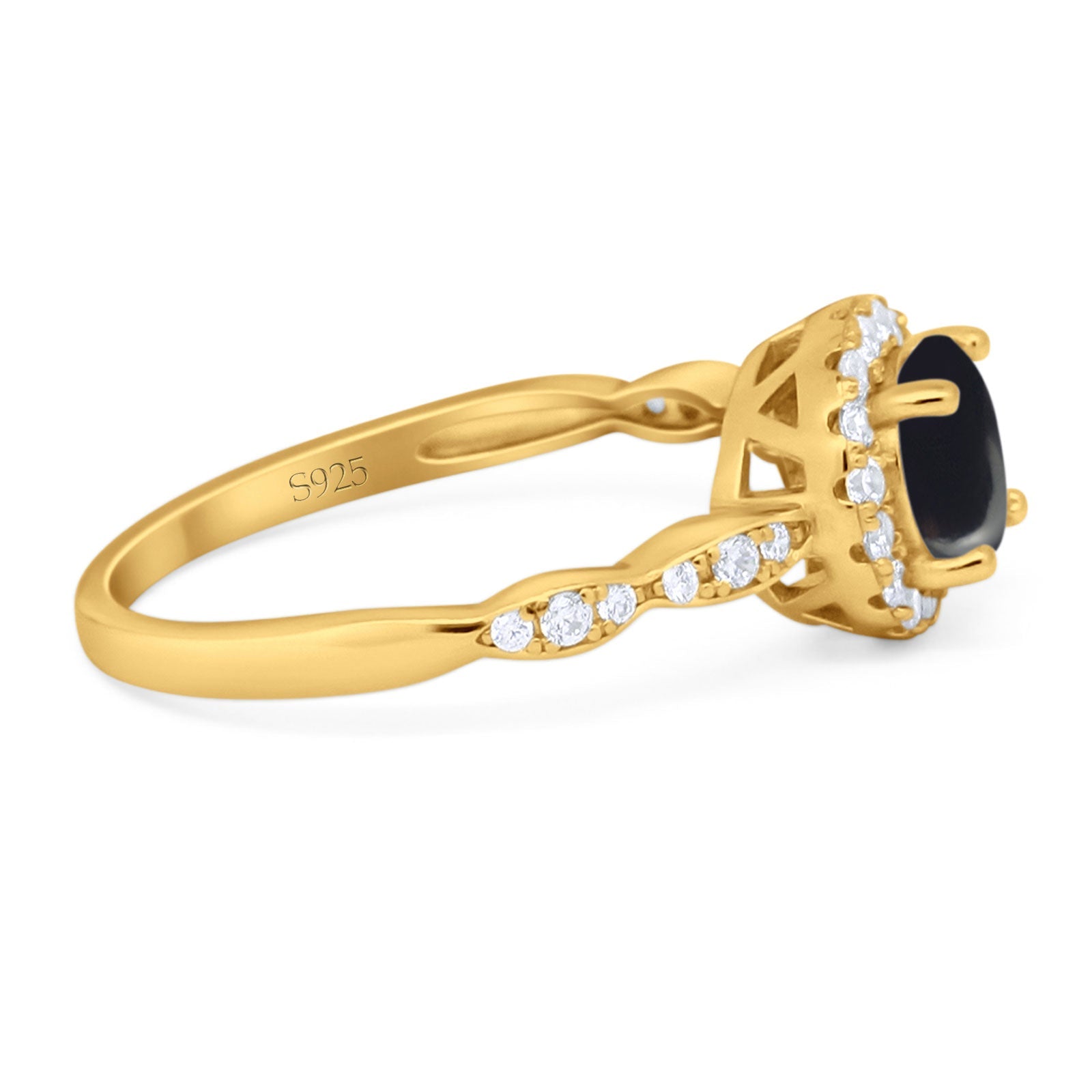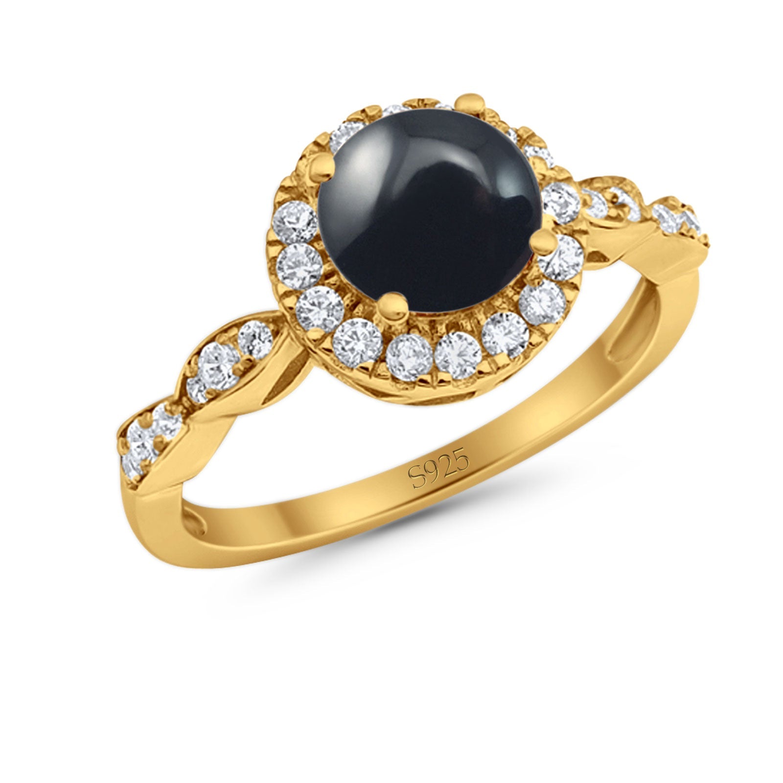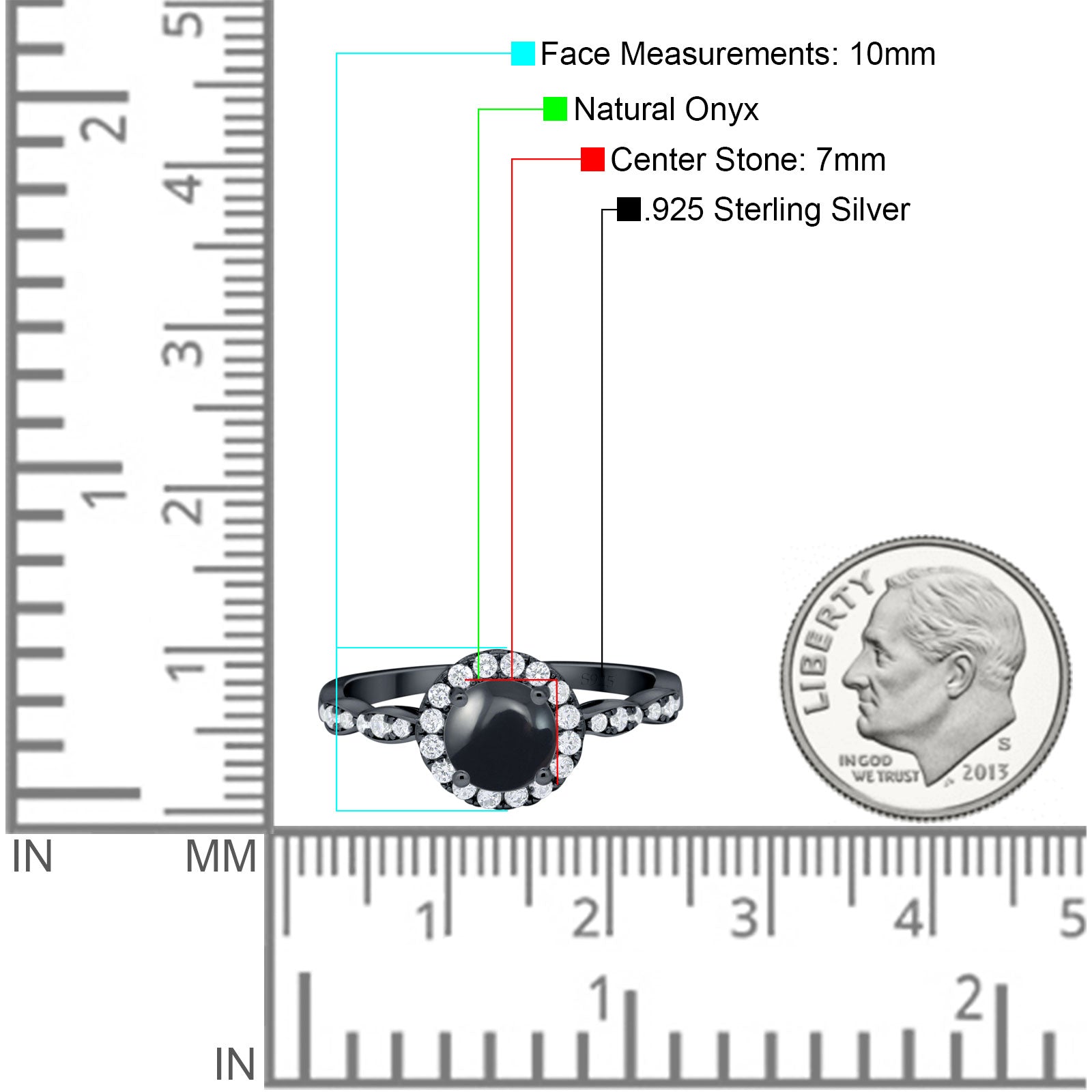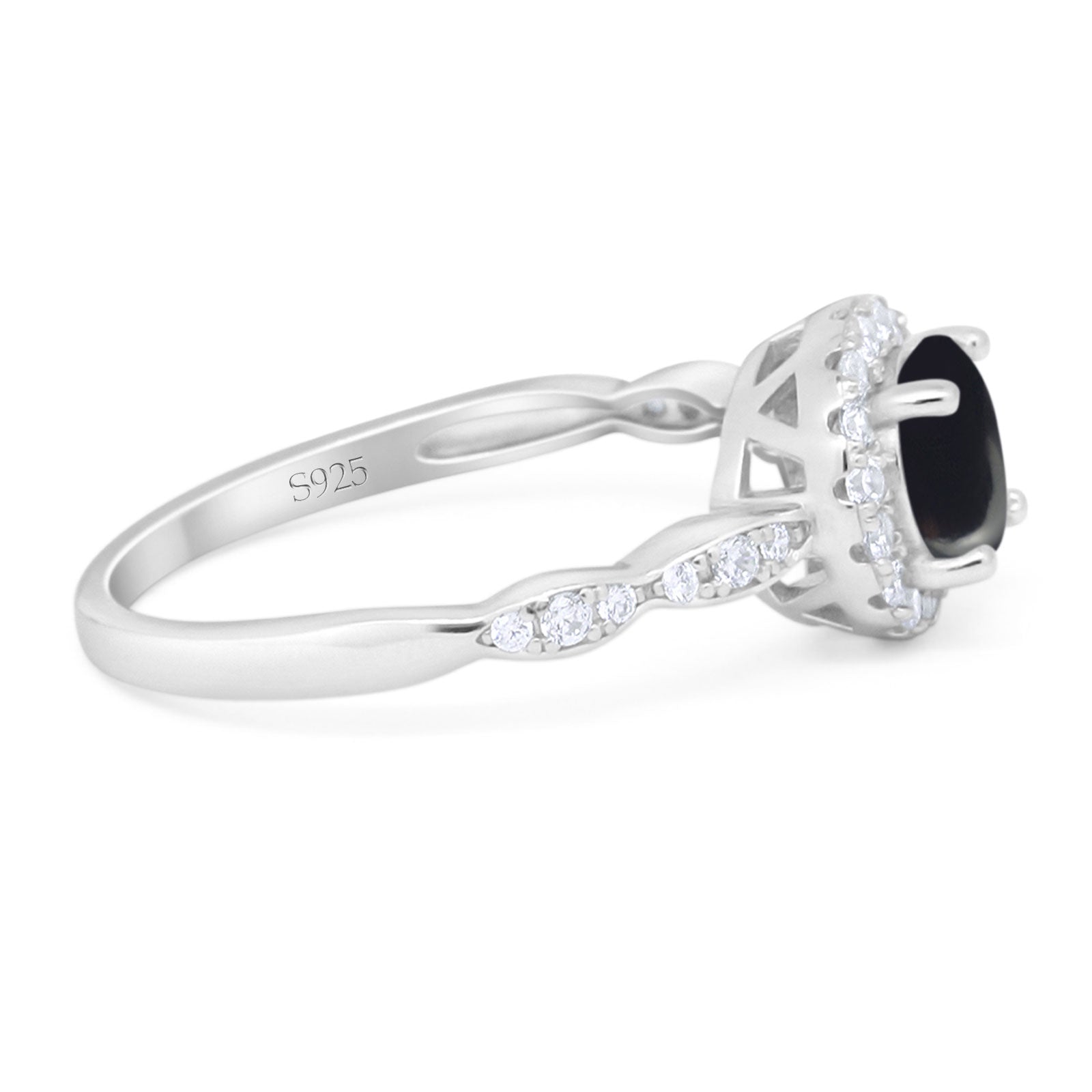 Art Deco Round Natural Black Onyx Halo Engagement Ring 925 Sterling Silver