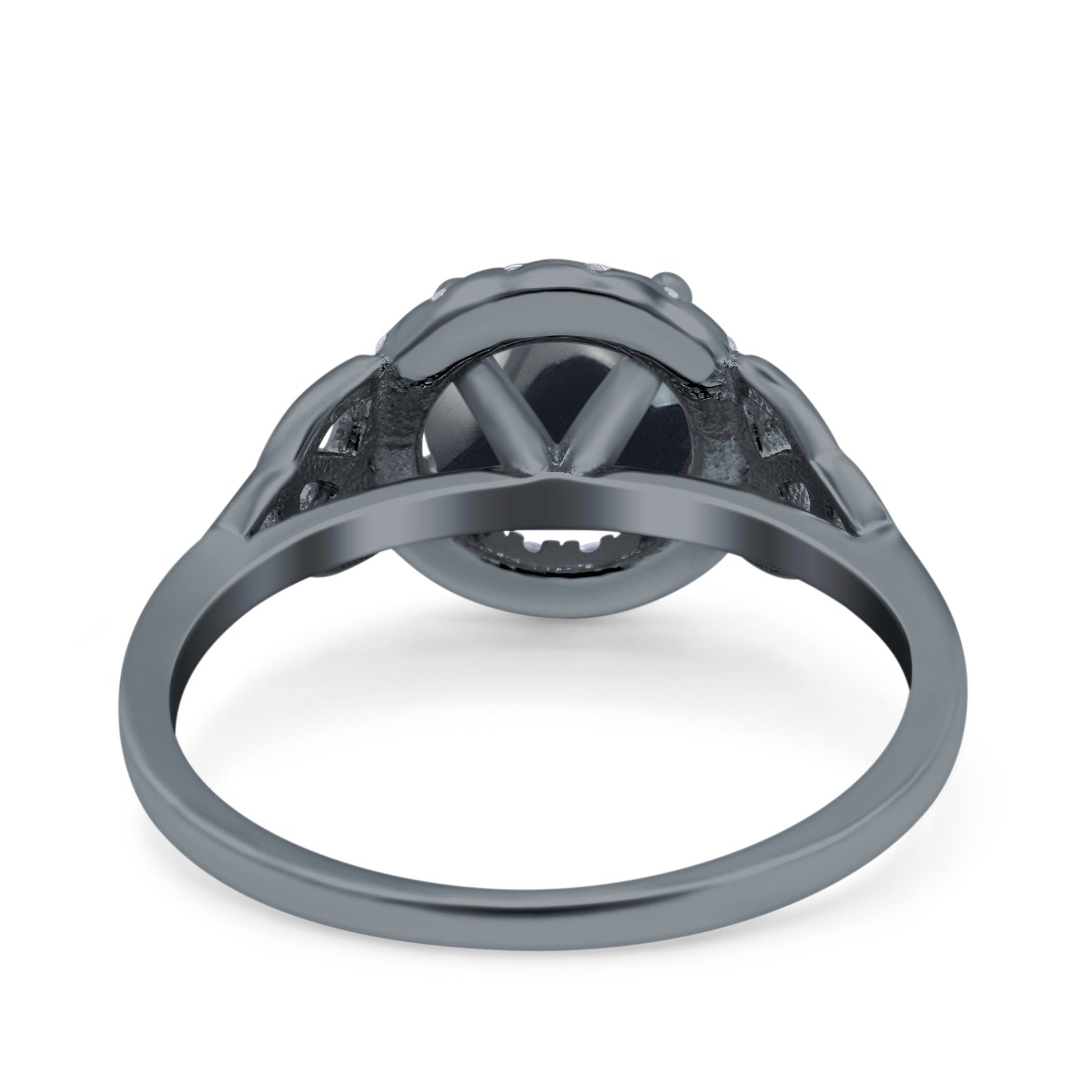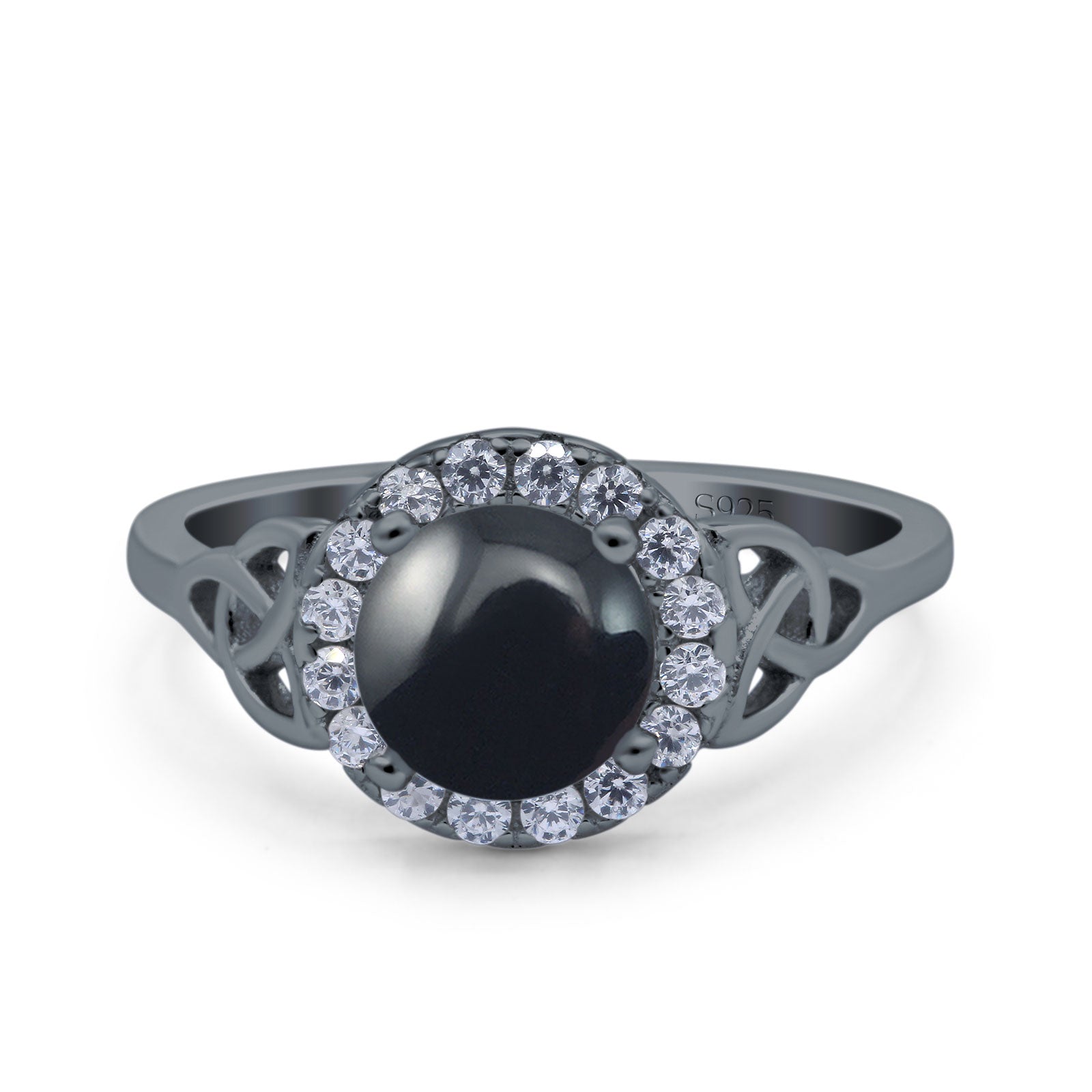 Art Deco Round Natural Black Onyx Trinity Ring 925 Sterling Silver