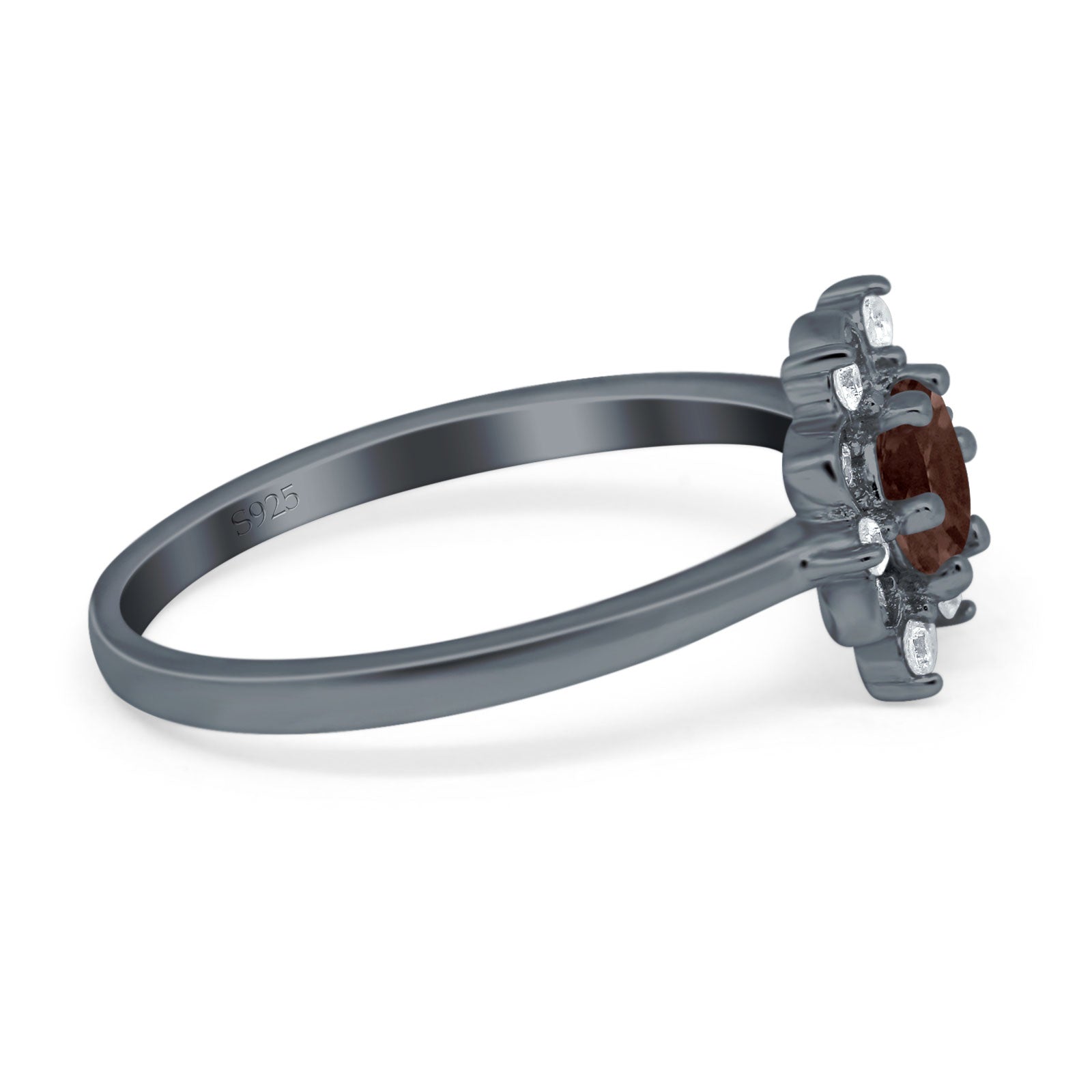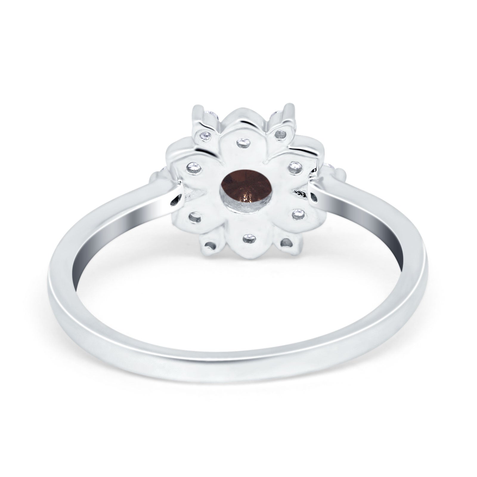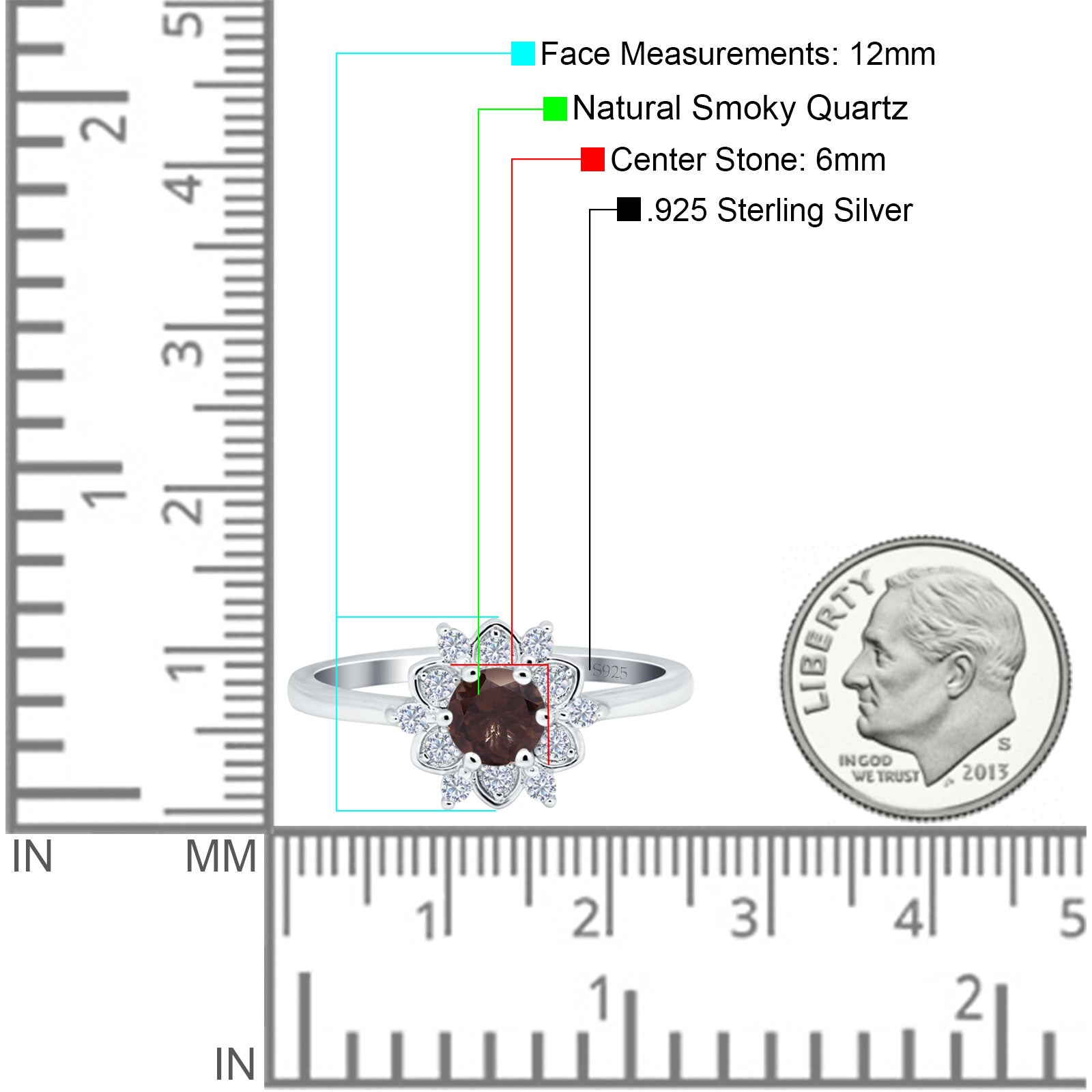 Art Deco Round Natural Chocolate Smoky Quartz Flower Design Ring 925 Sterling Silver