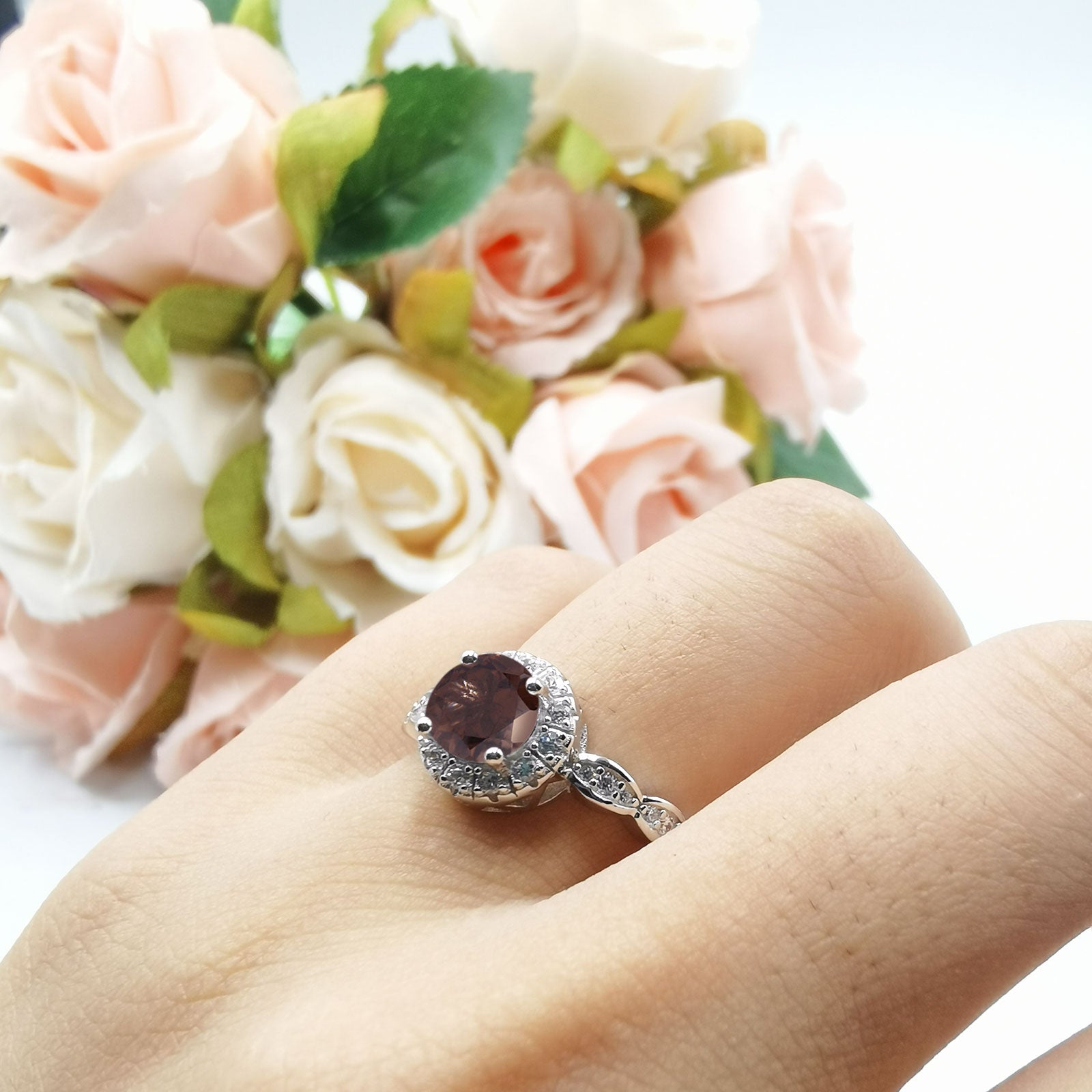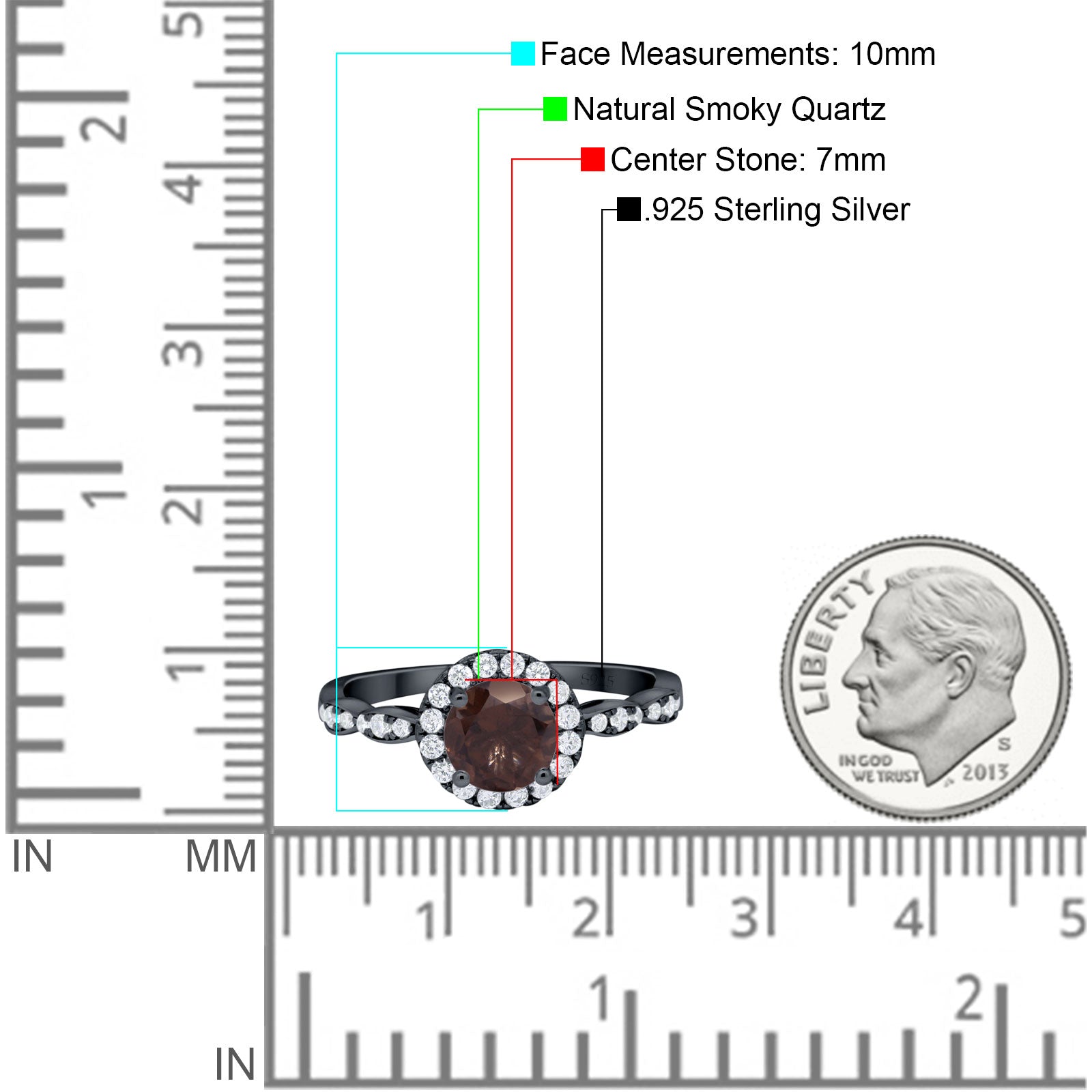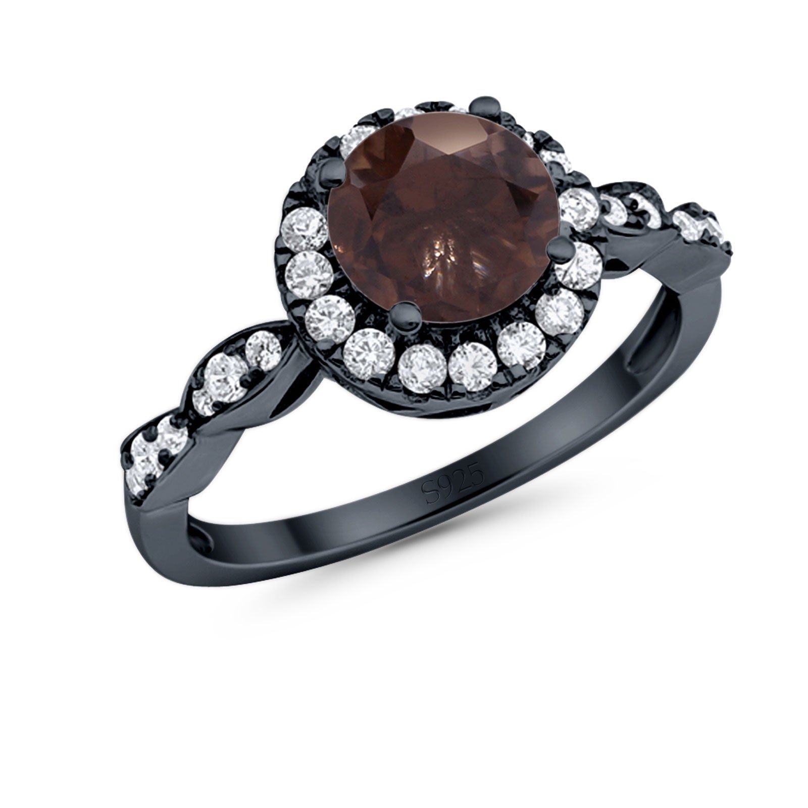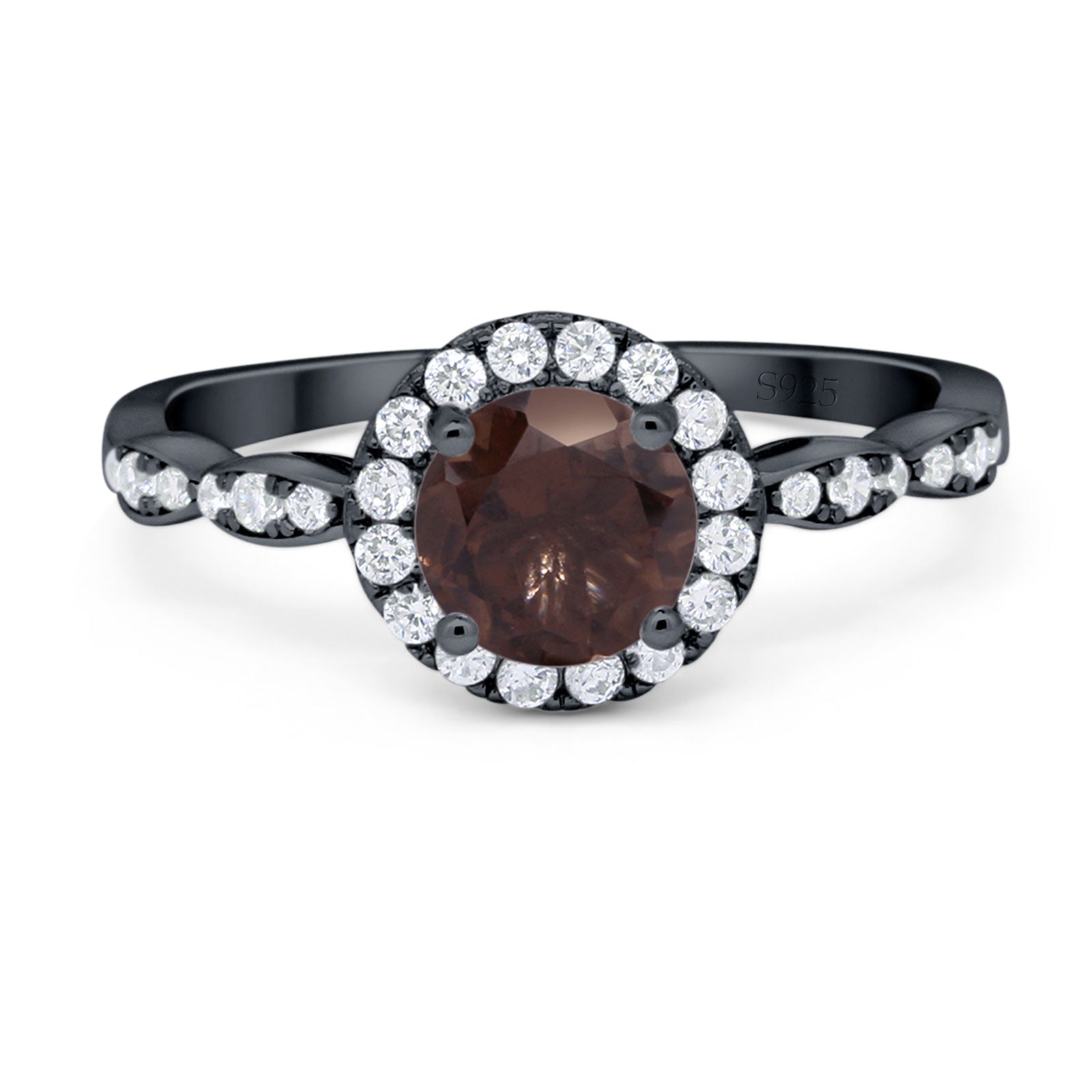 Art Deco Round Natural Chocolate Smoky Quartz Halo Engagement Ring 925 Sterling Silver