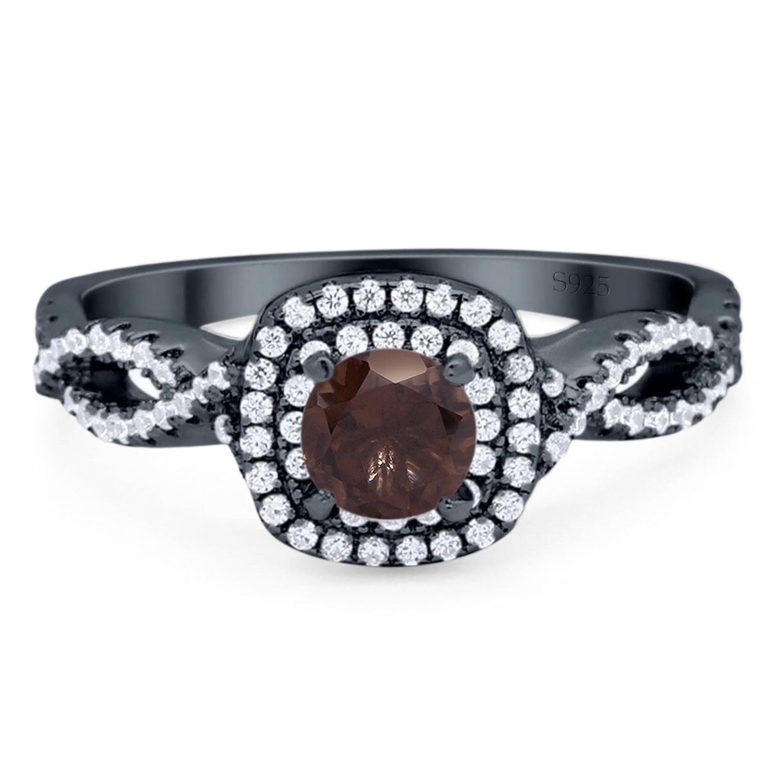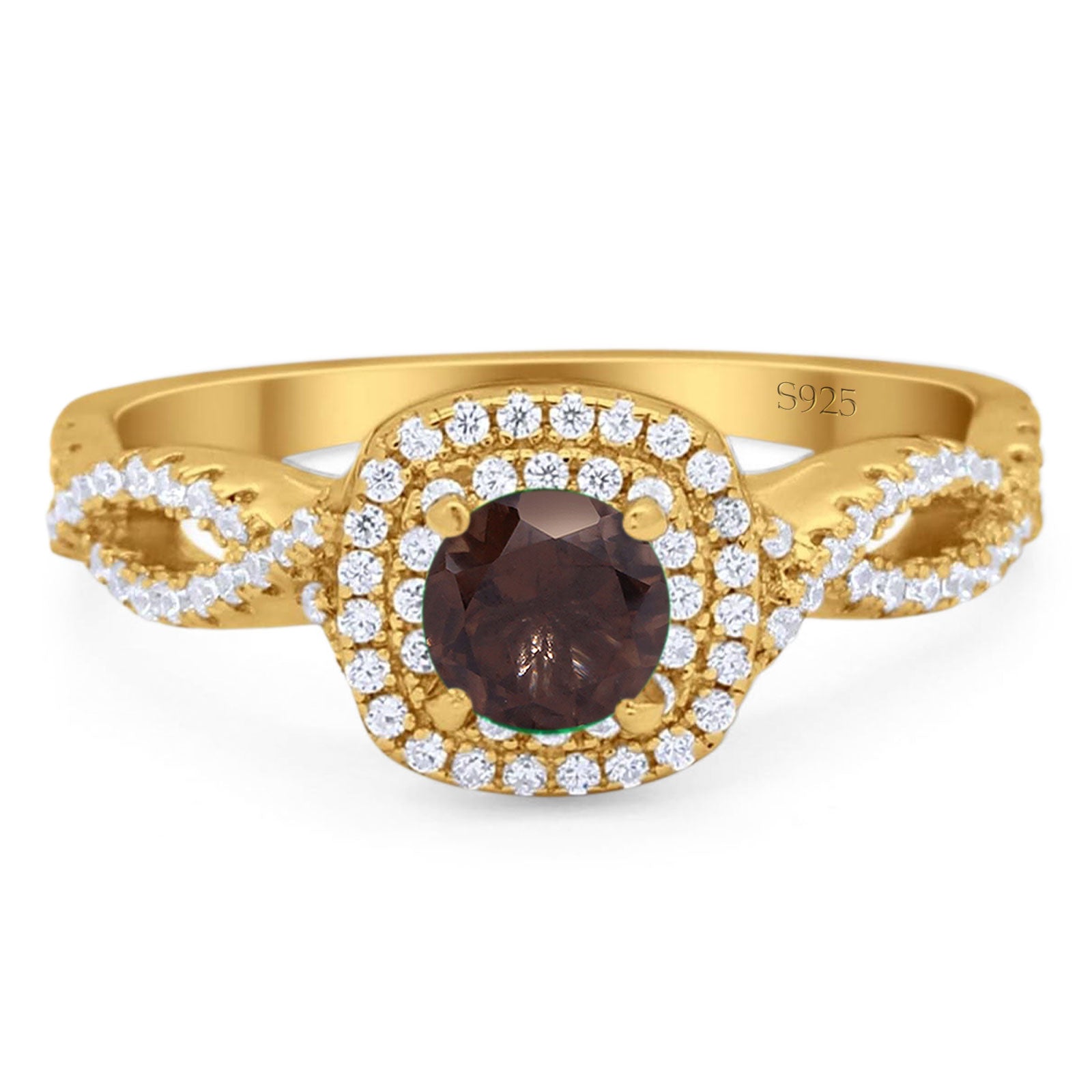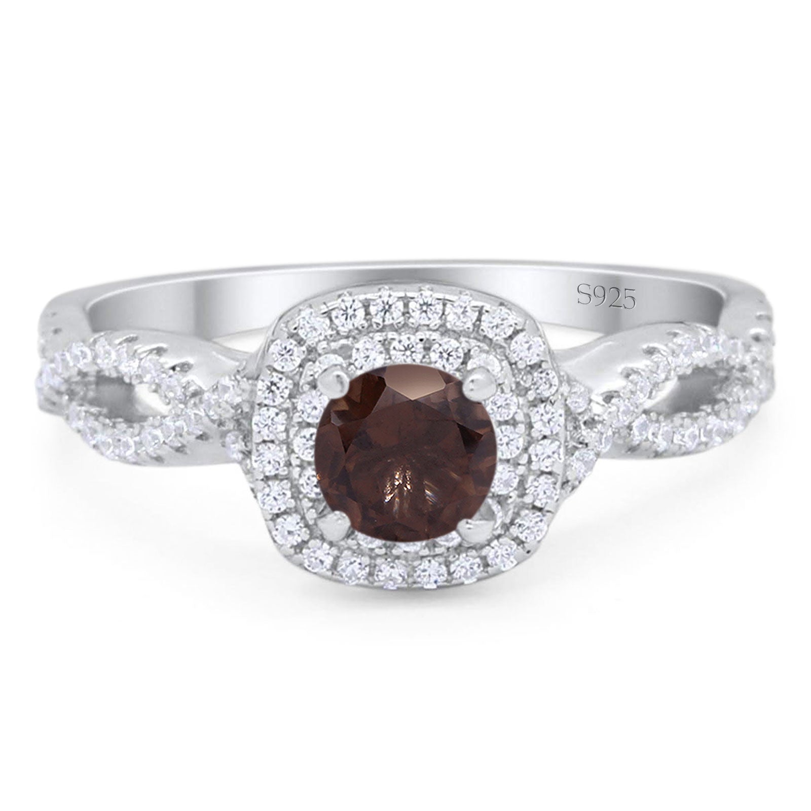 Art Deco Round Natural Chocolate Smoky Quartz Infinity Shank Twisted Ring 925 Sterling Silver