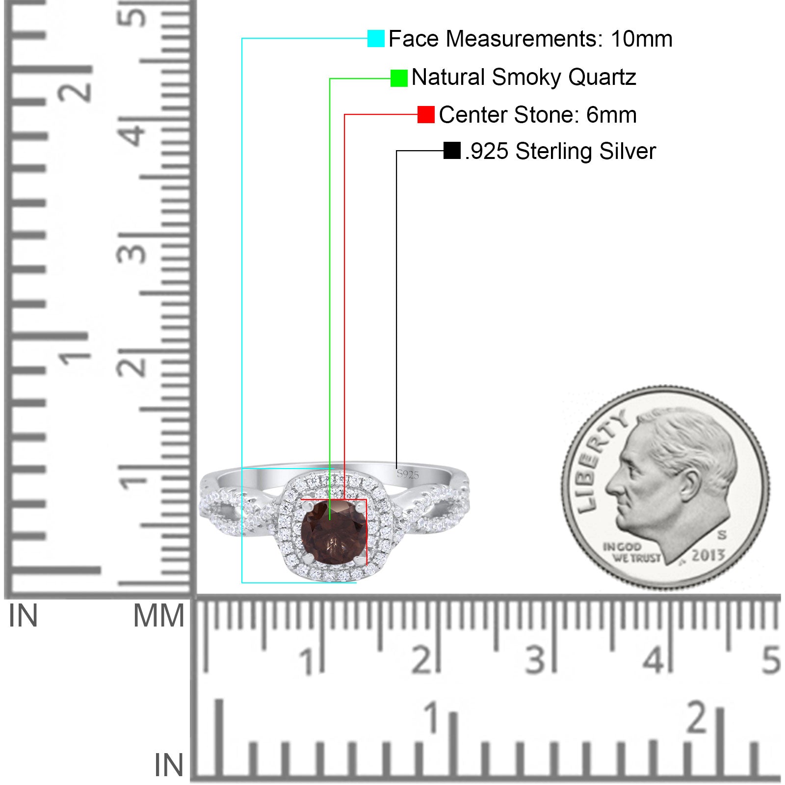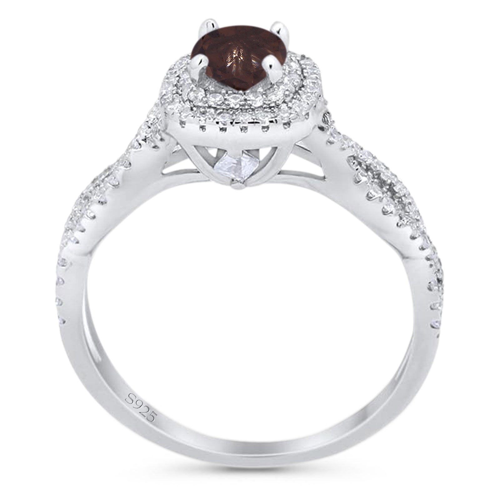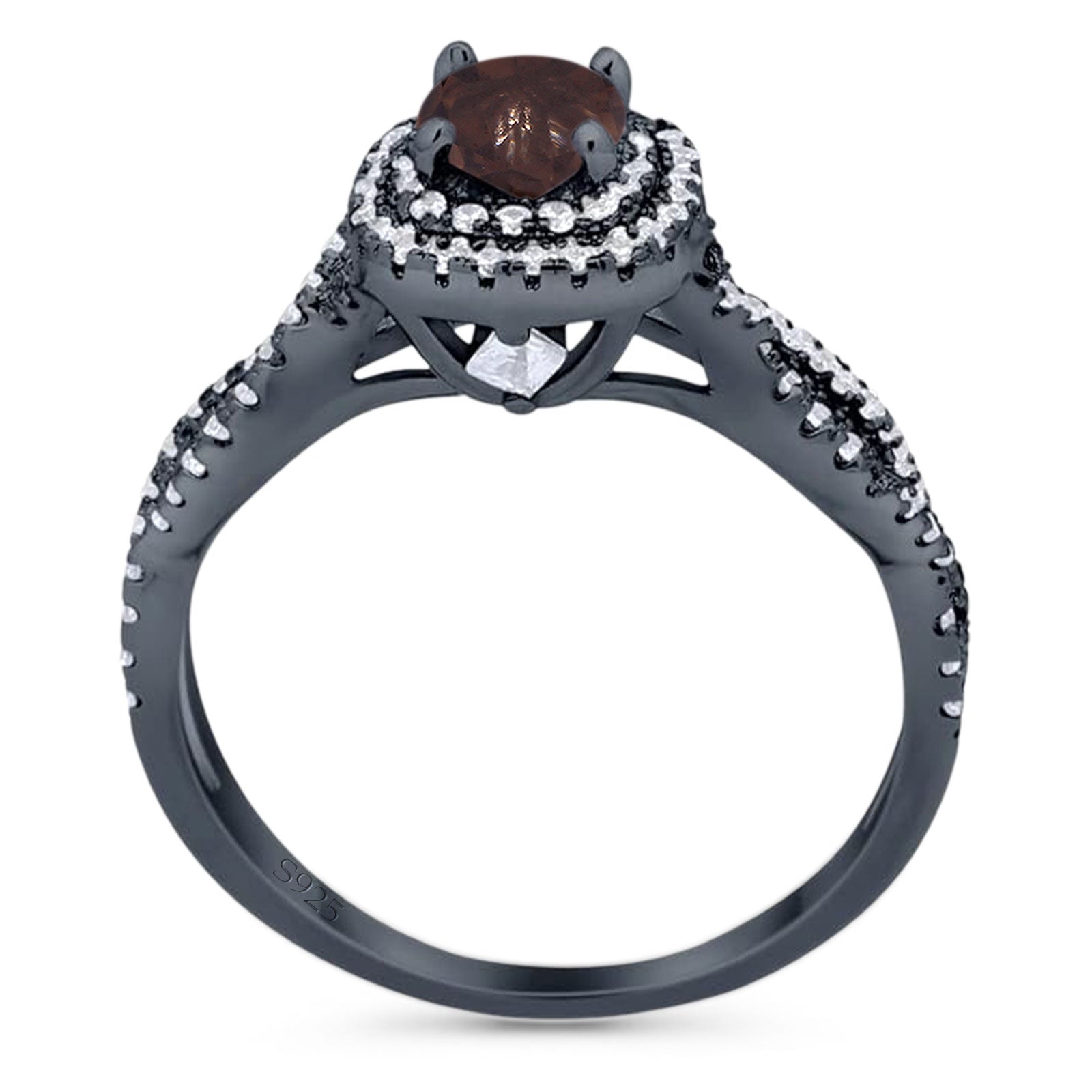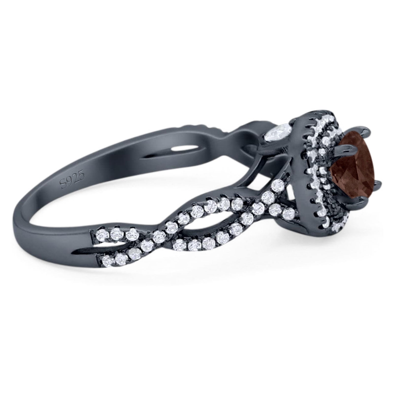 Art Deco Round Natural Chocolate Smoky Quartz Infinity Shank Twisted Ring 925 Sterling Silver
