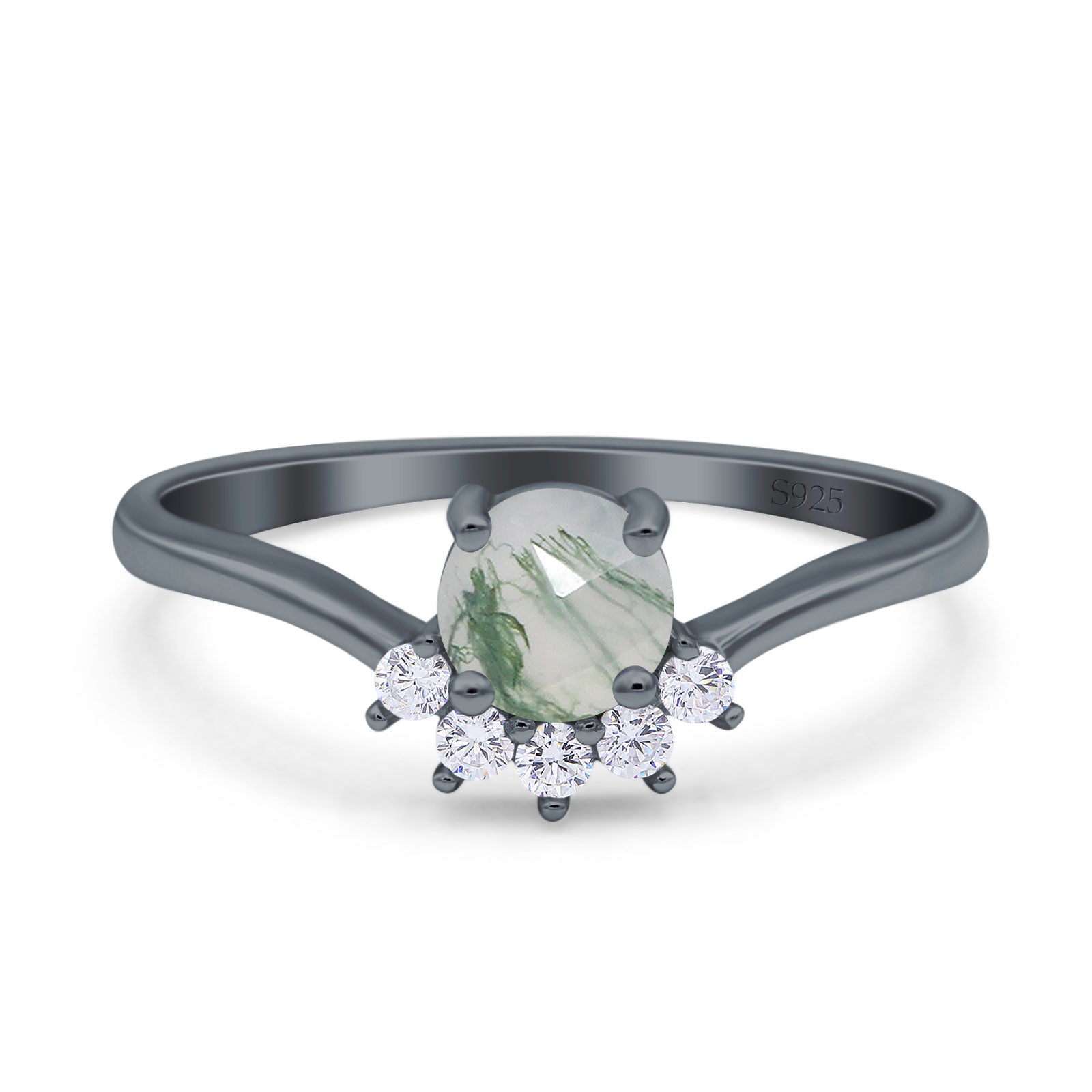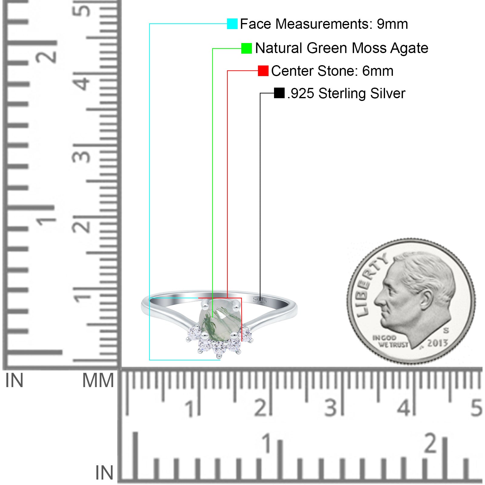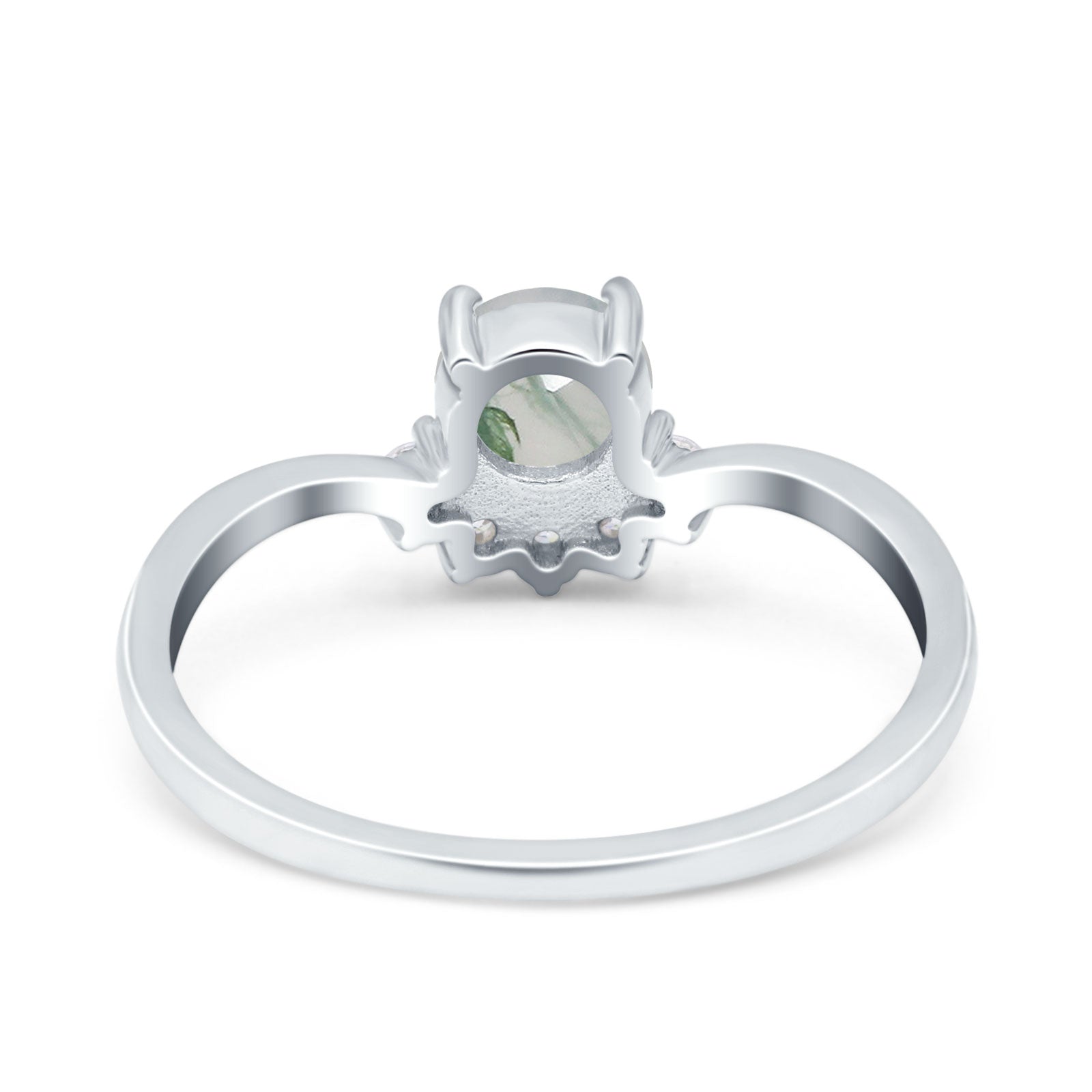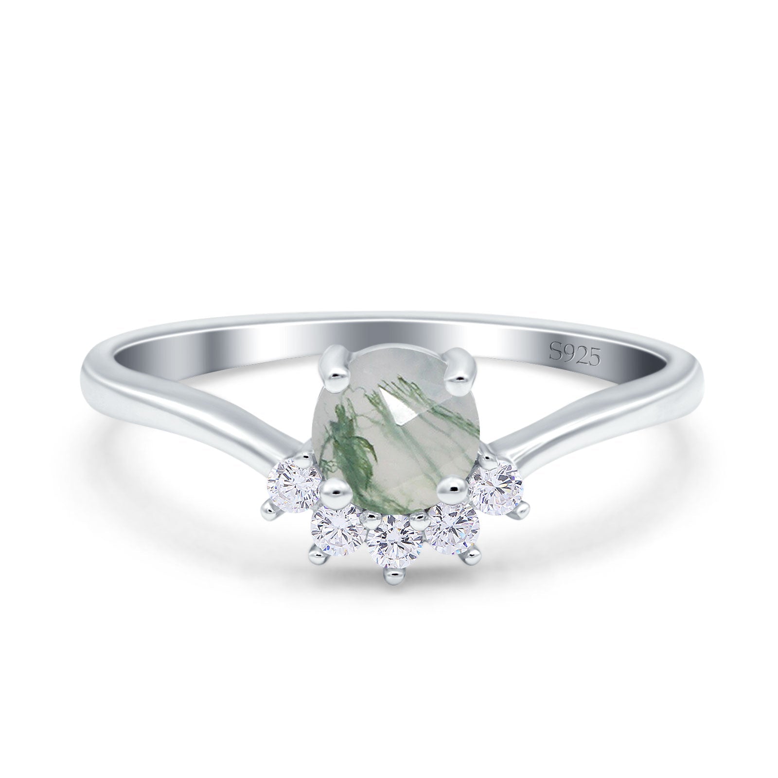 Art Deco Round Natural Green Moss Agate Cluster CZ Ring 925 Sterling Silver