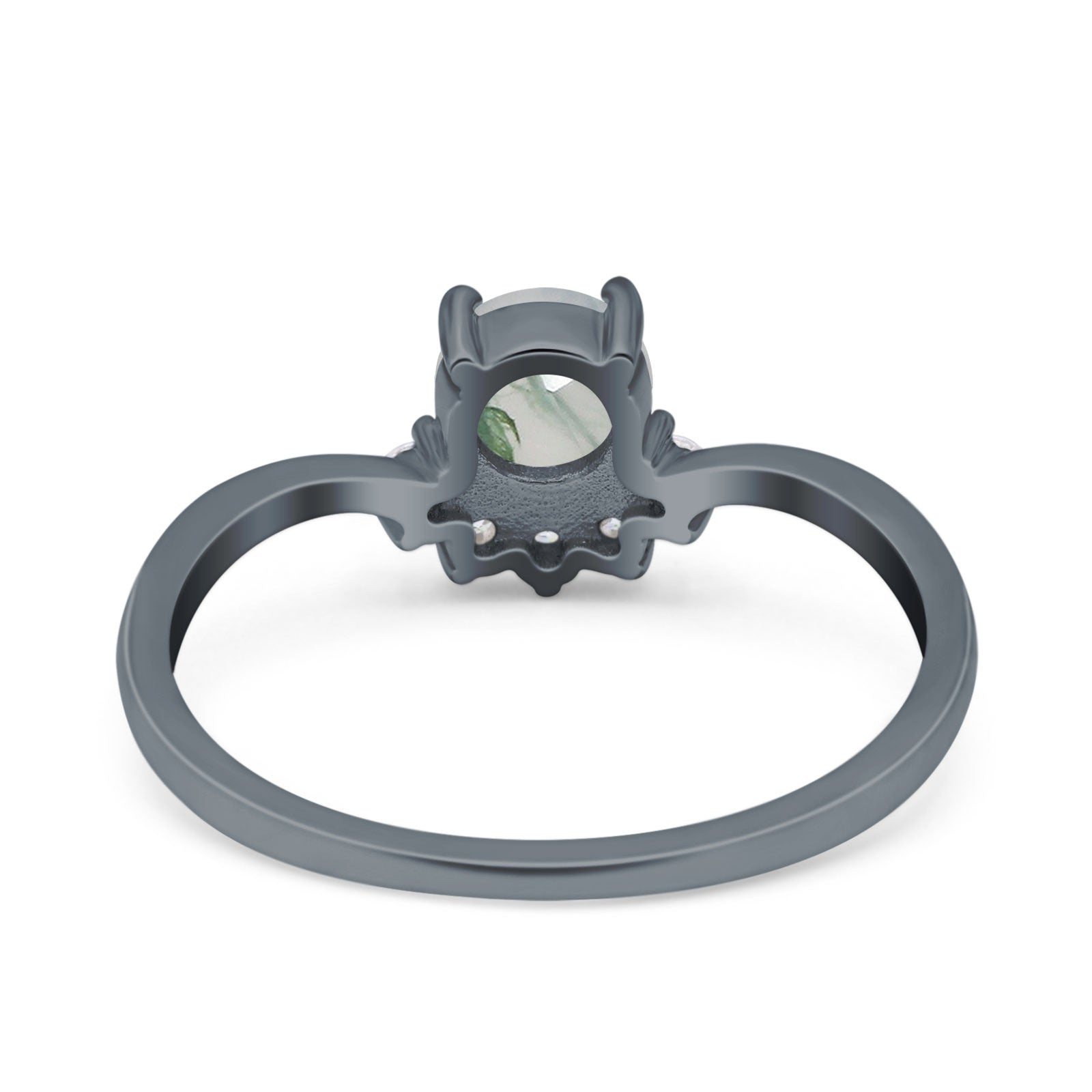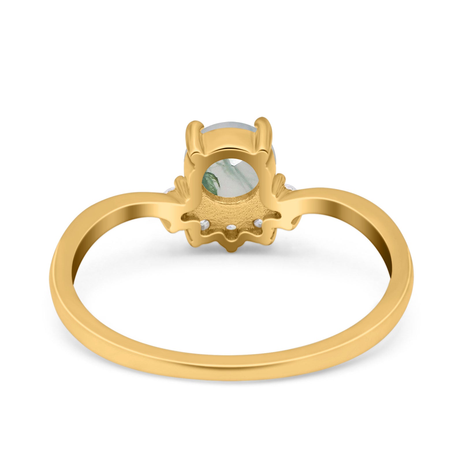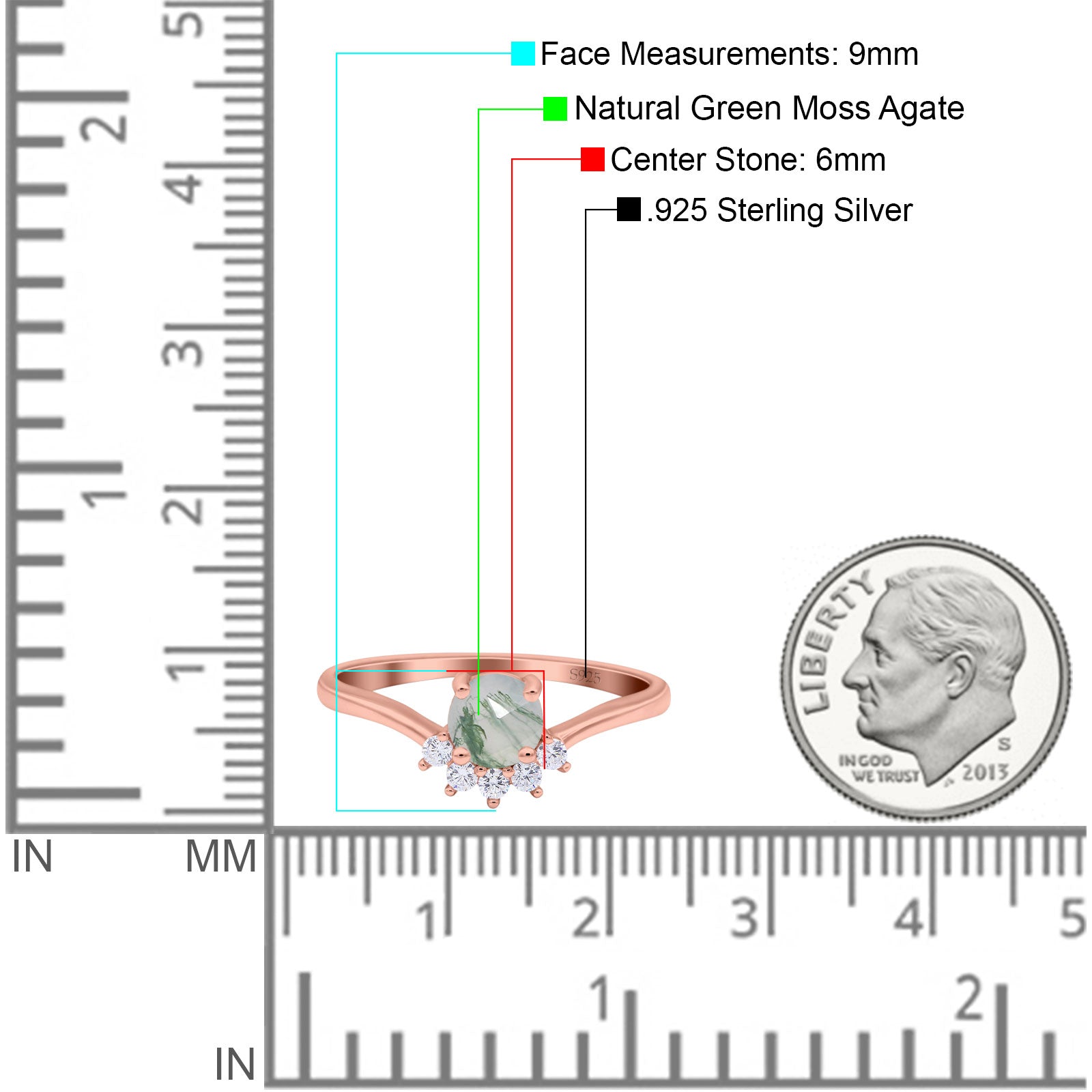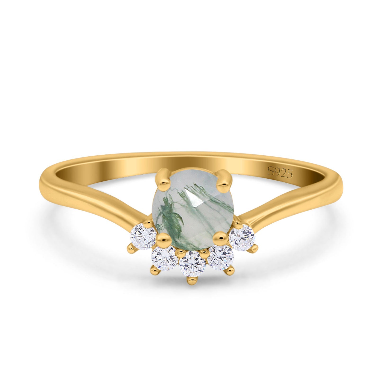 Art Deco Round Natural Green Moss Agate Cluster CZ Ring 925 Sterling Silver