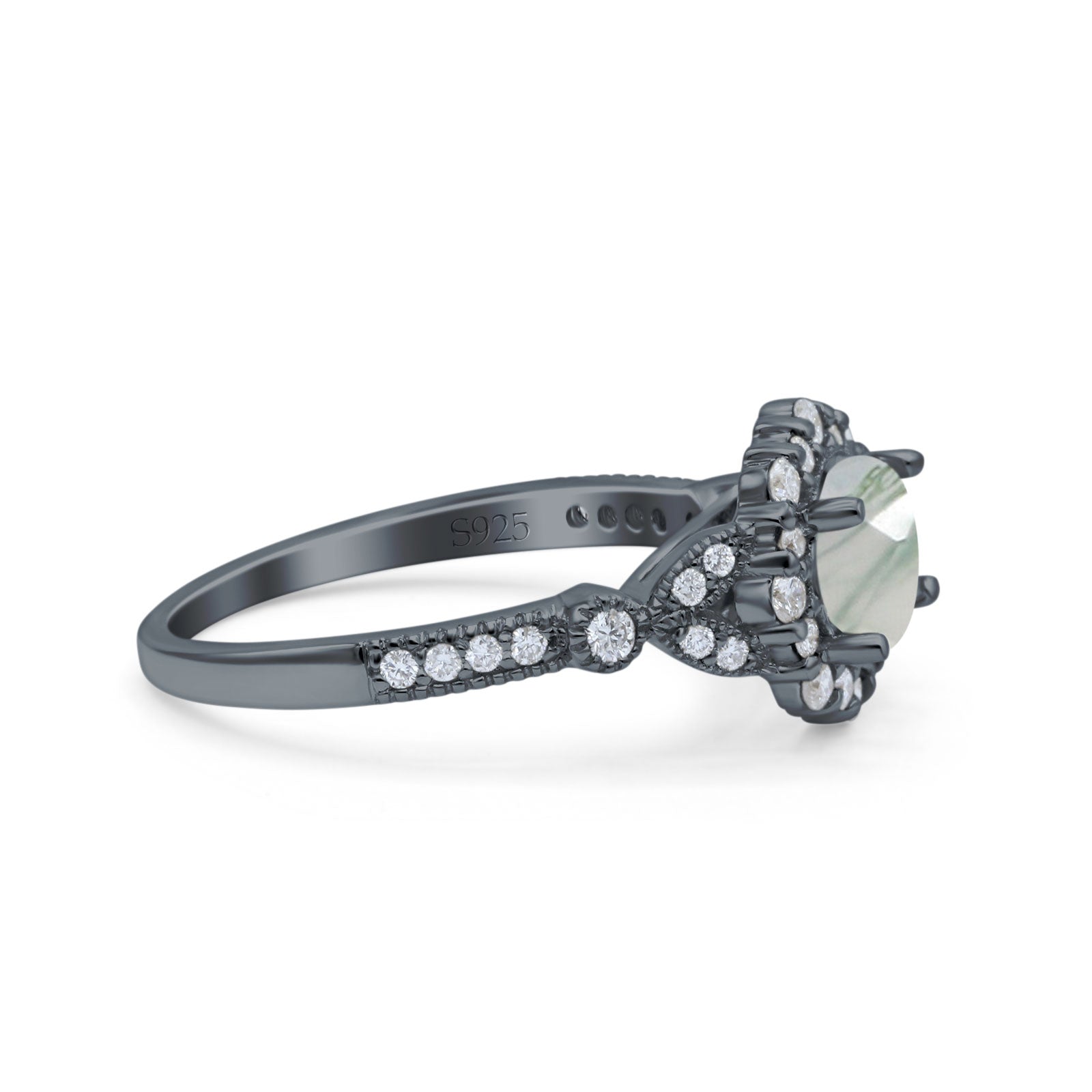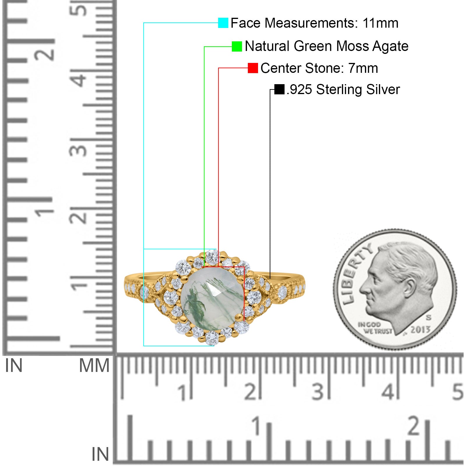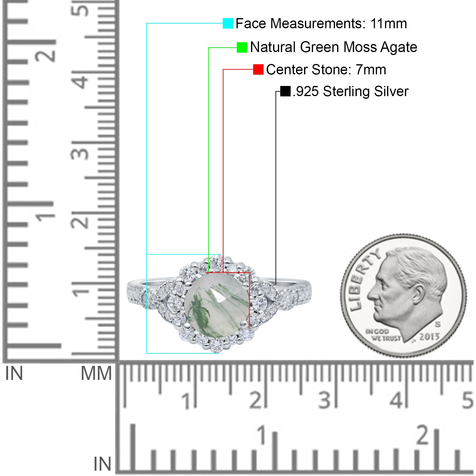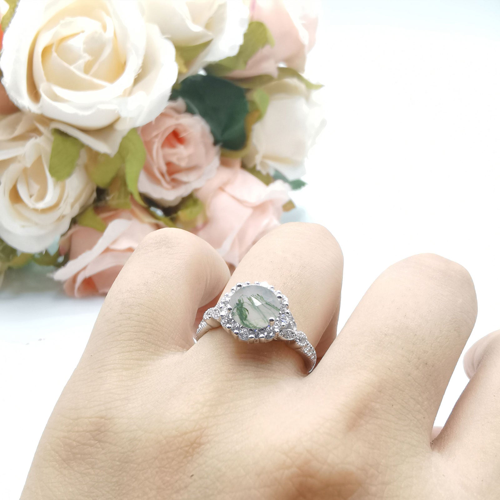Art Deco Round Natural Green Moss Agate Halo Engagement Rings 925 Sterling Silver