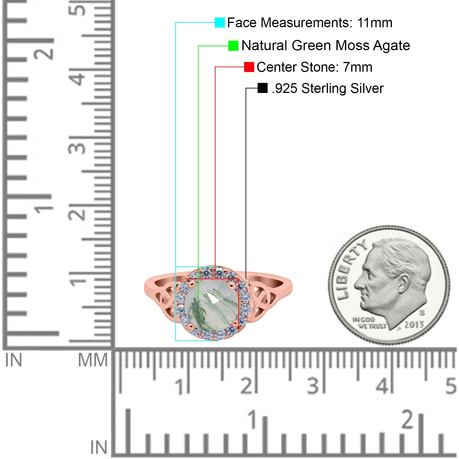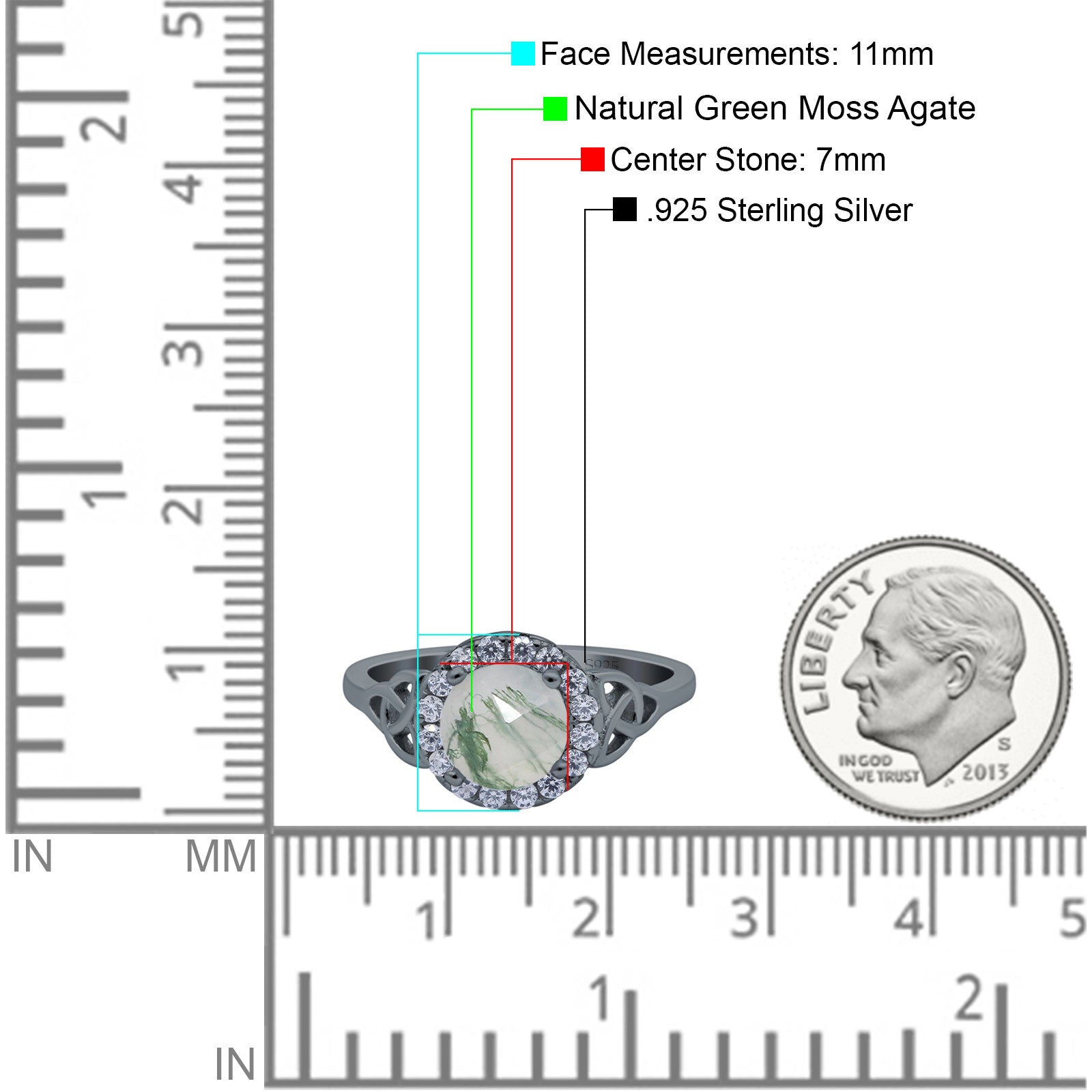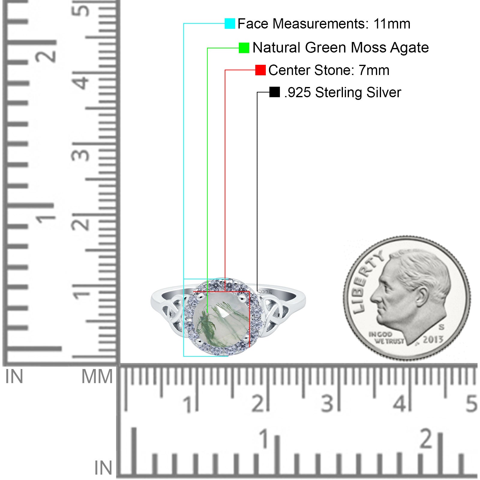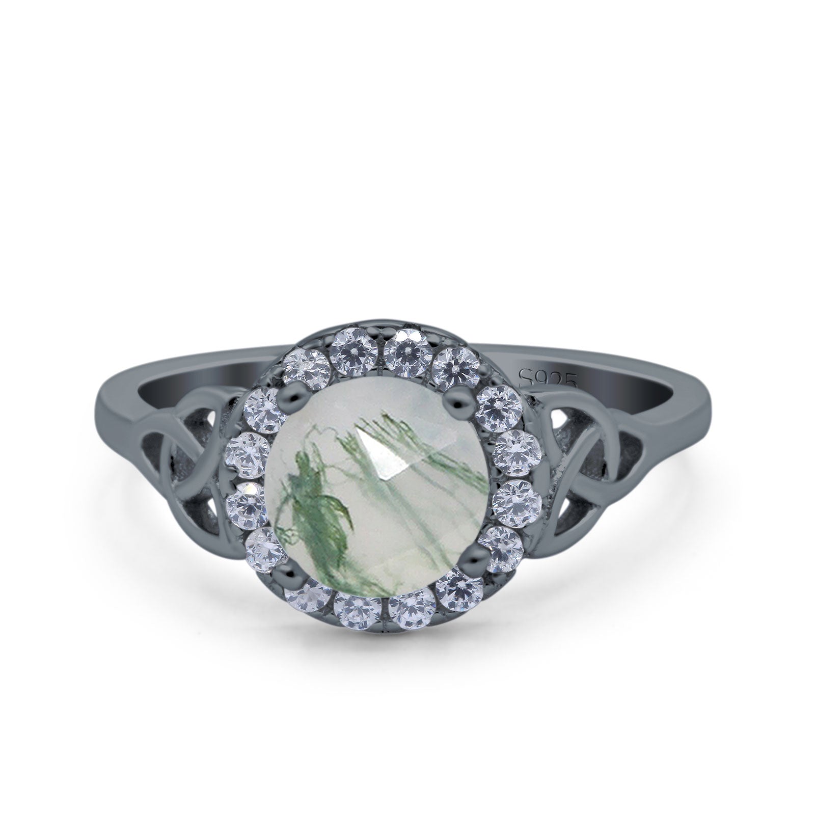 Art Deco Round Natural Green Moss Agate Trinity Ring 925 Sterling Silver