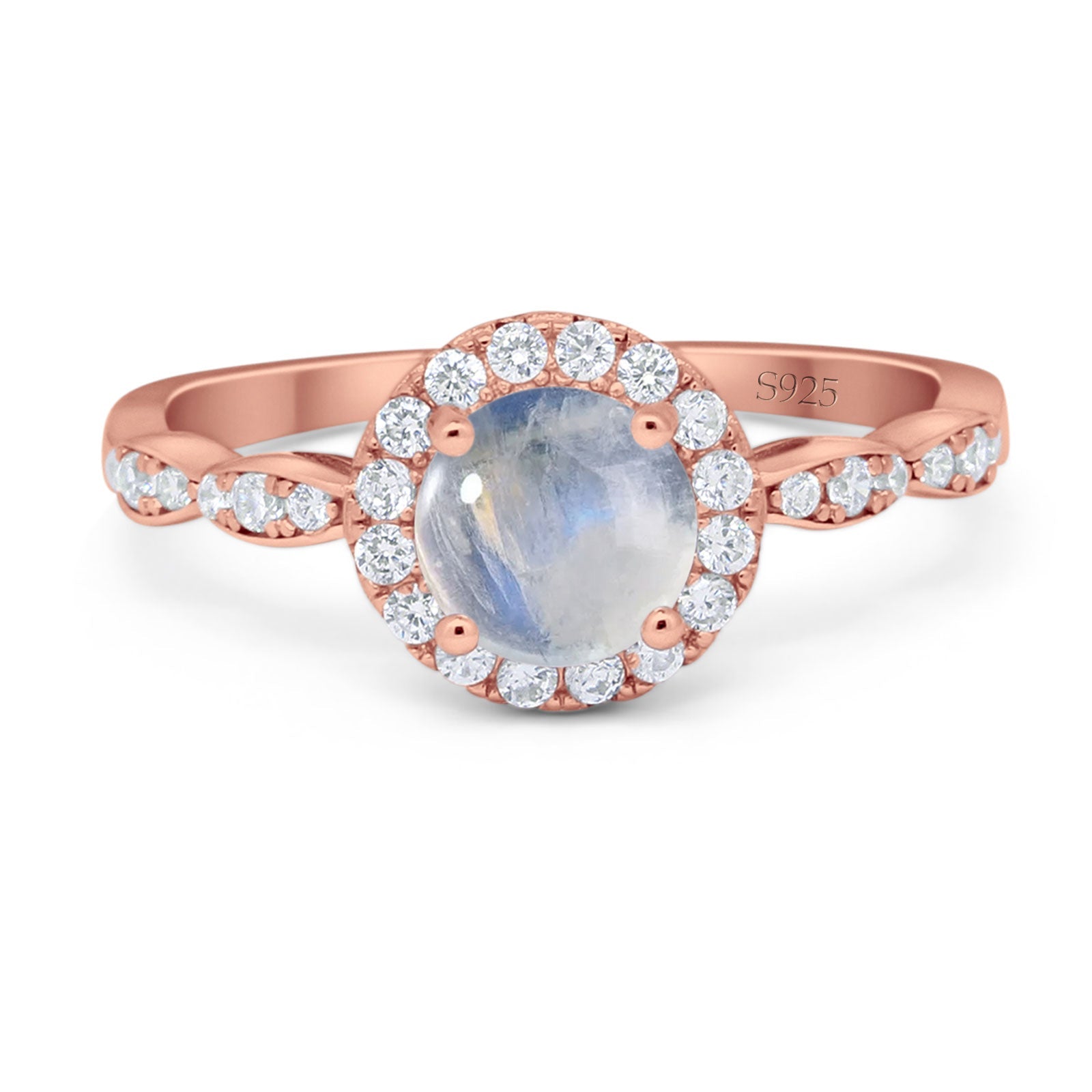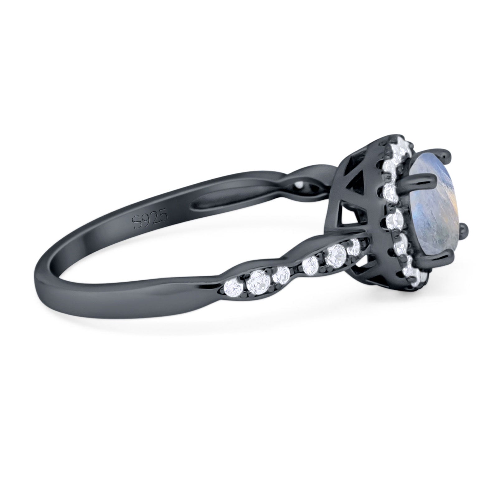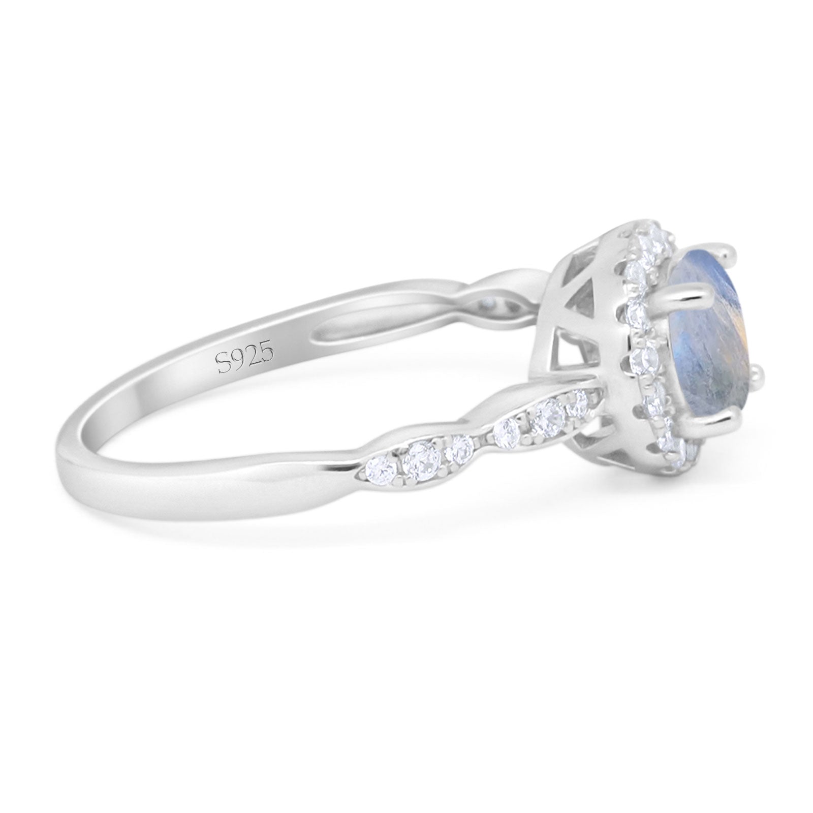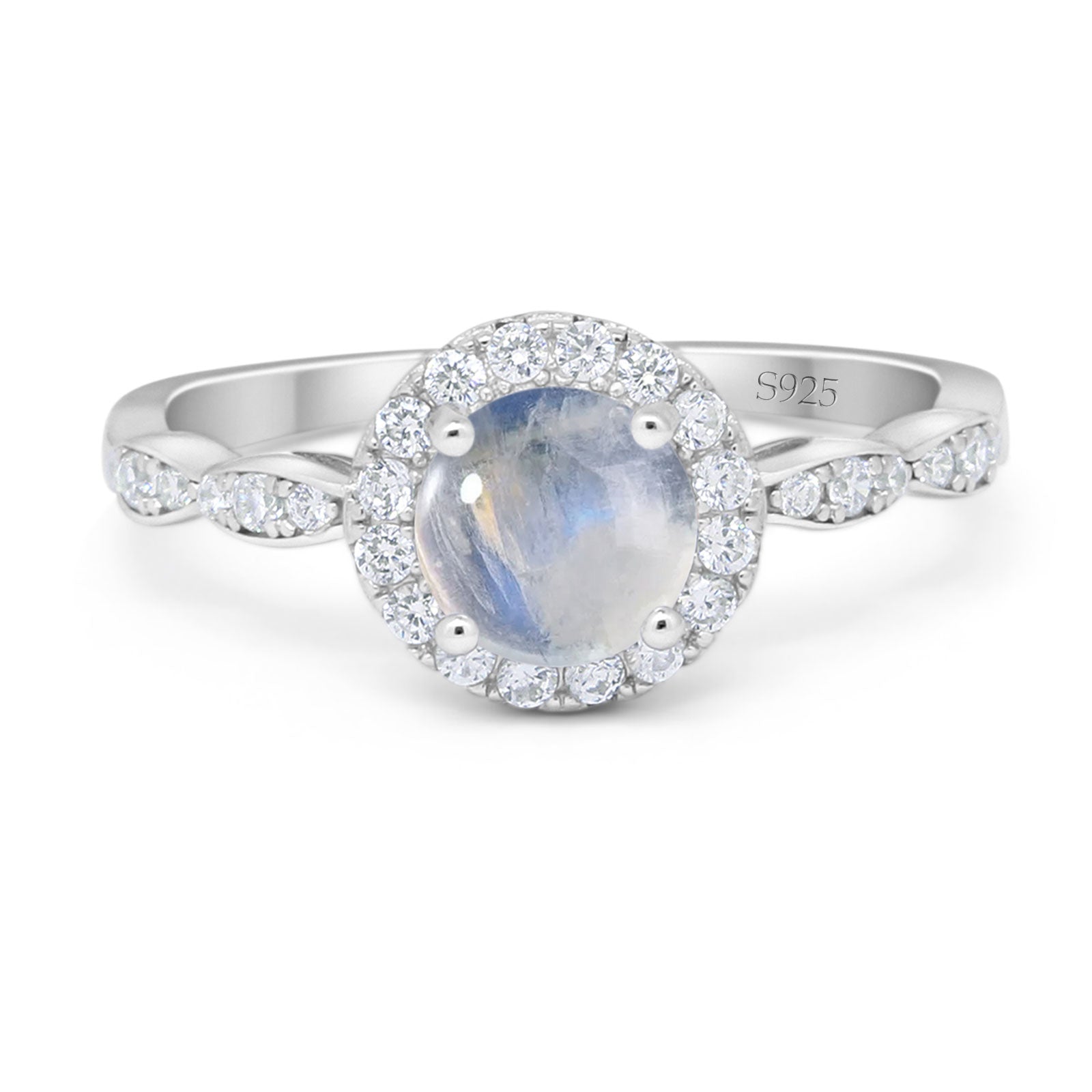 Art Deco Round Natural Moonstone Halo Engagement Ring 925 Sterling Silver