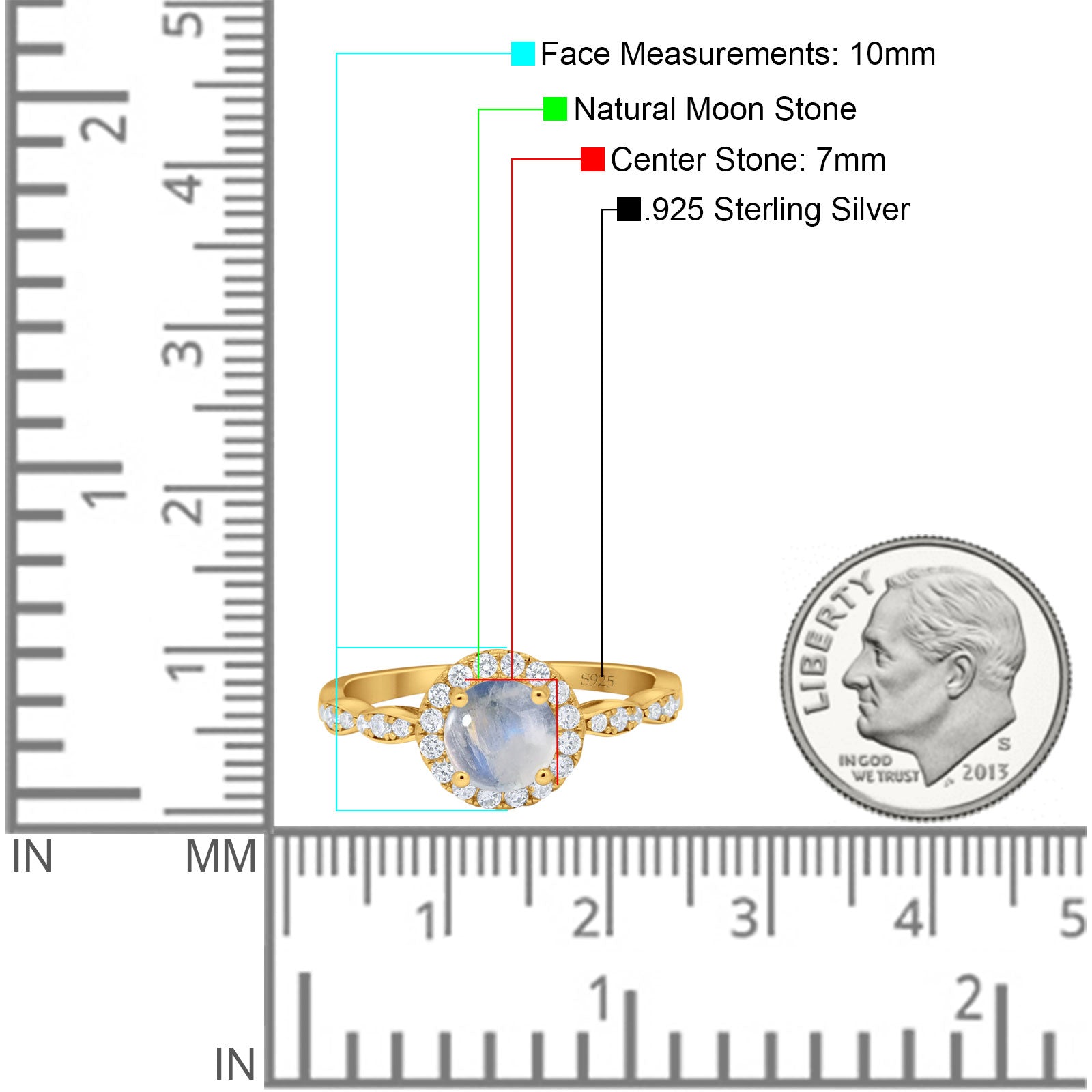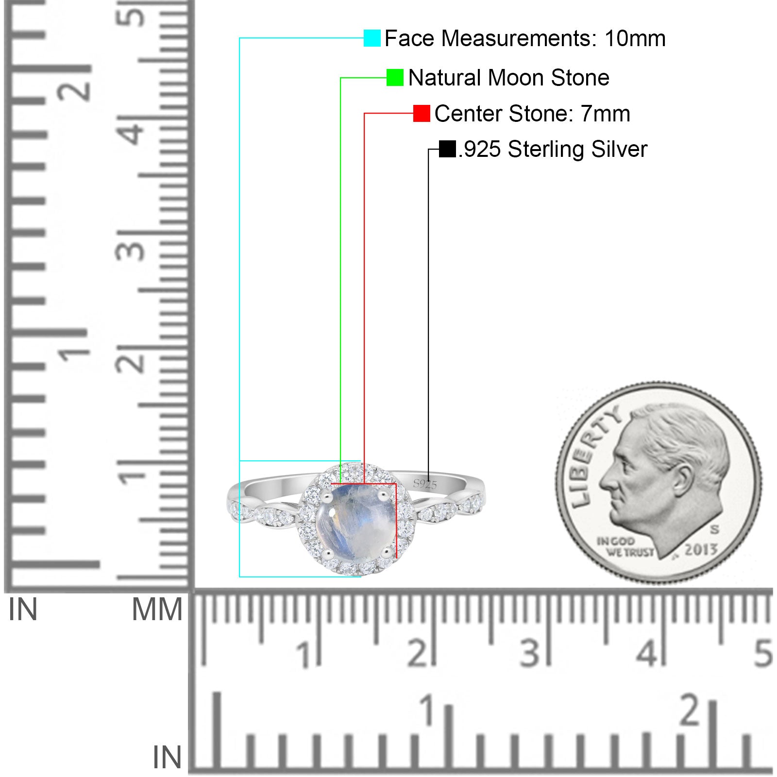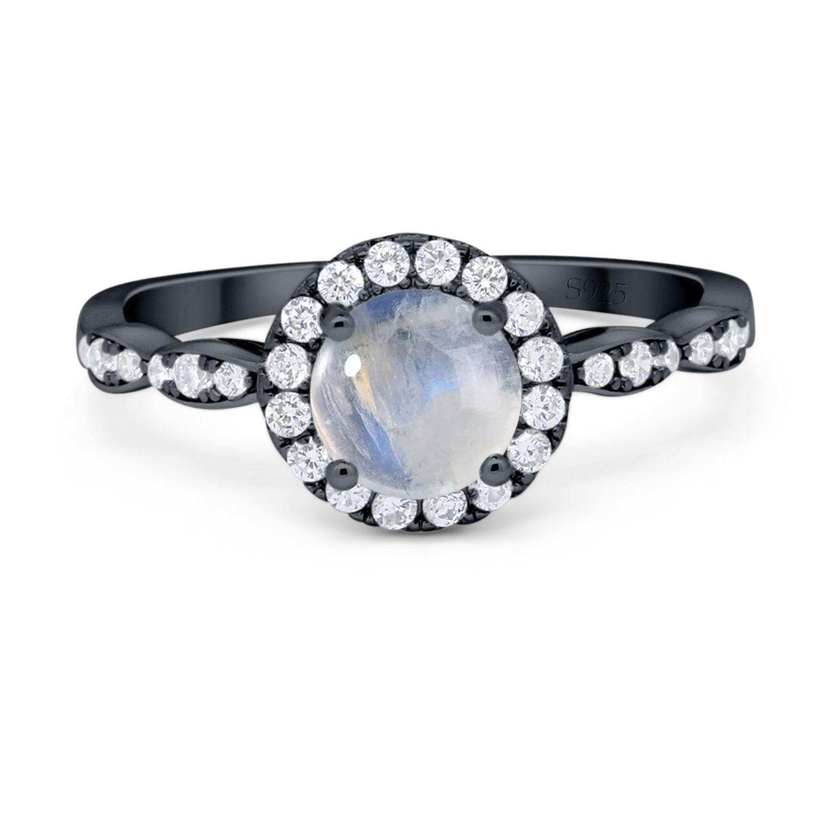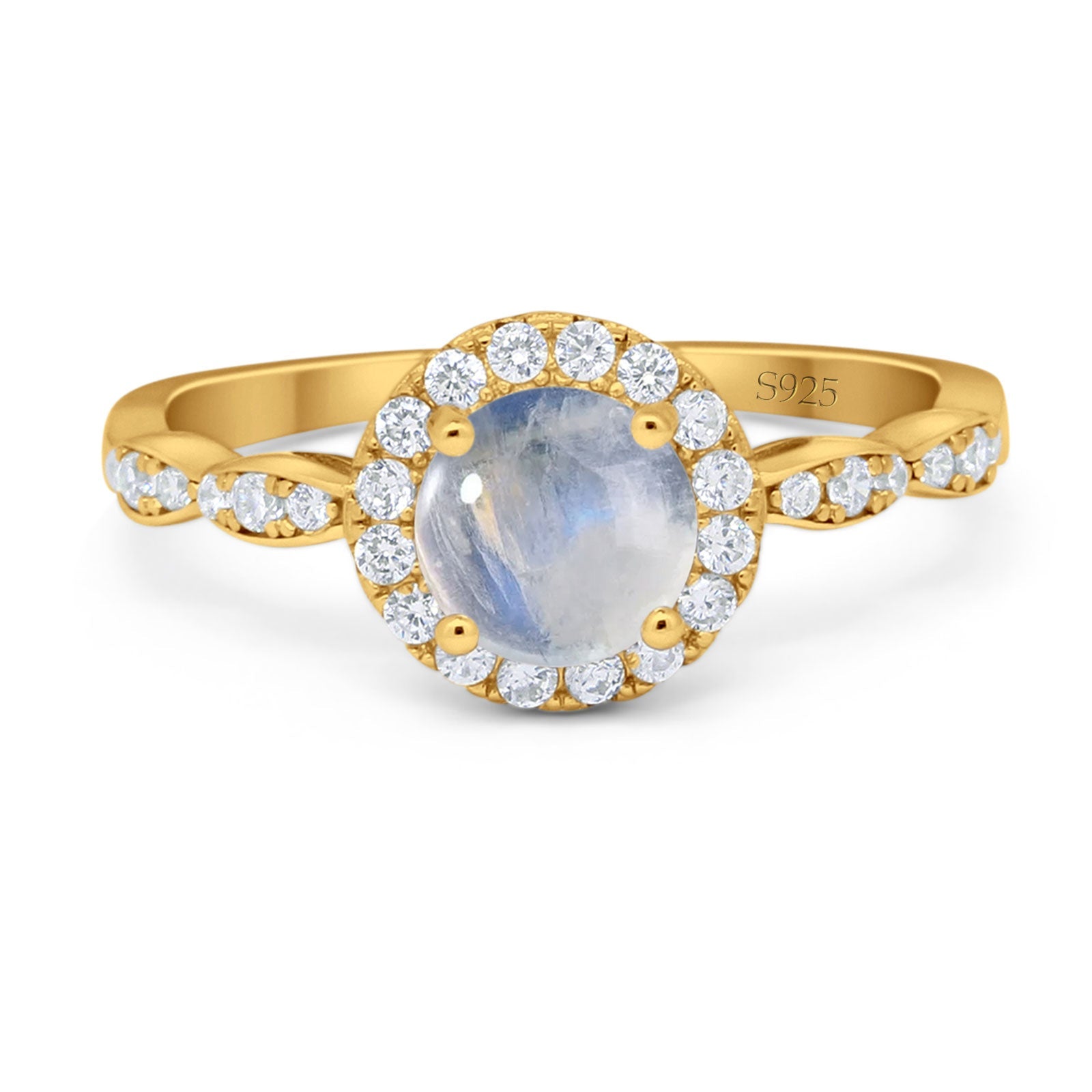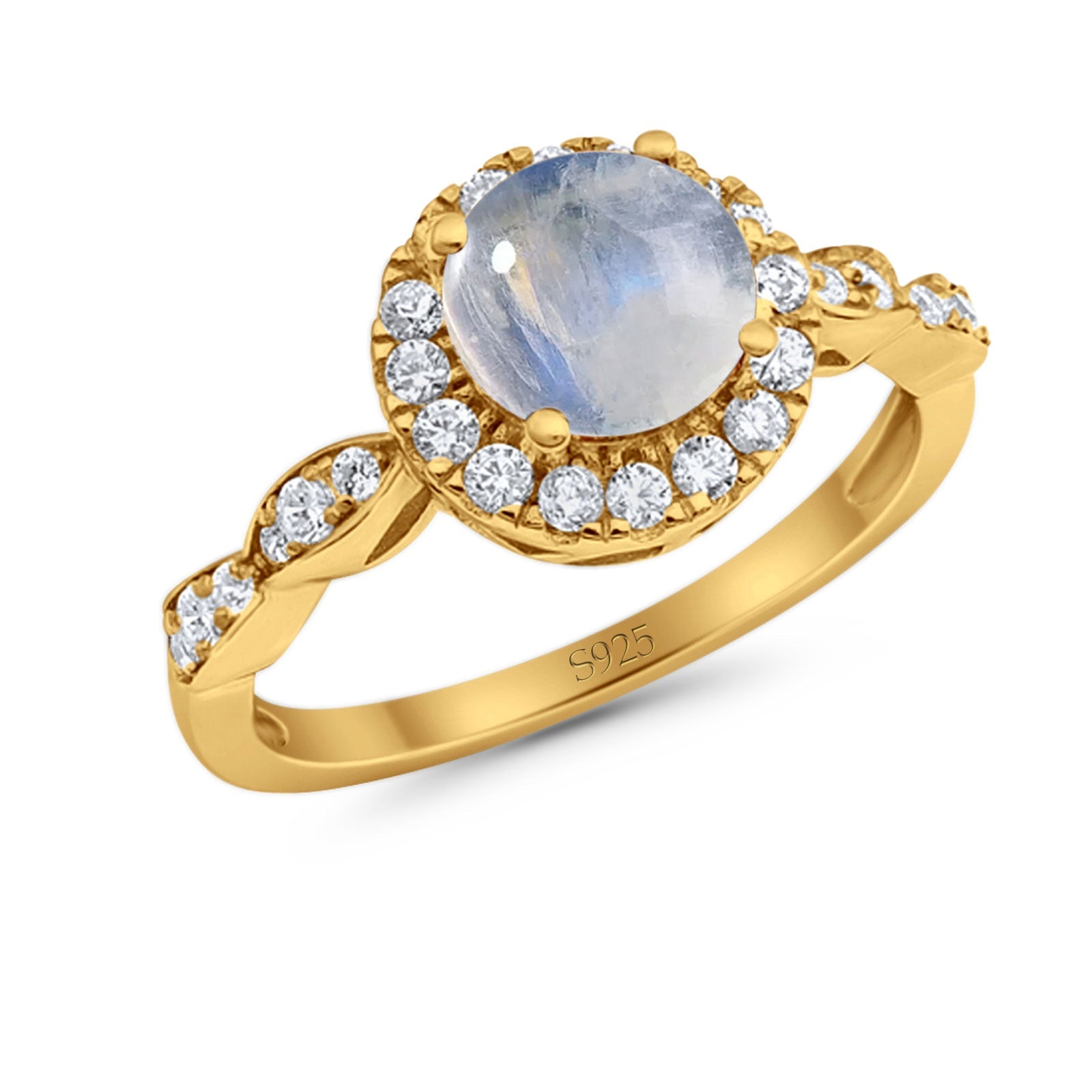 Art Deco Round Natural Moonstone Halo Engagement Ring 925 Sterling Silver