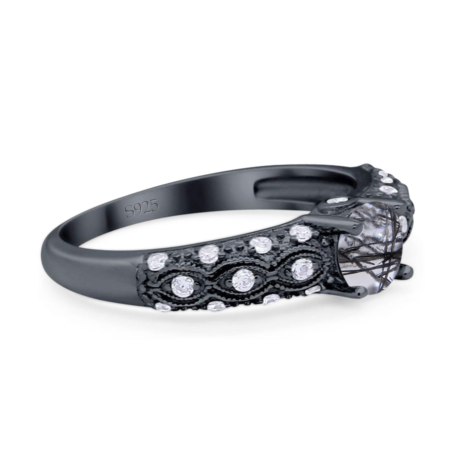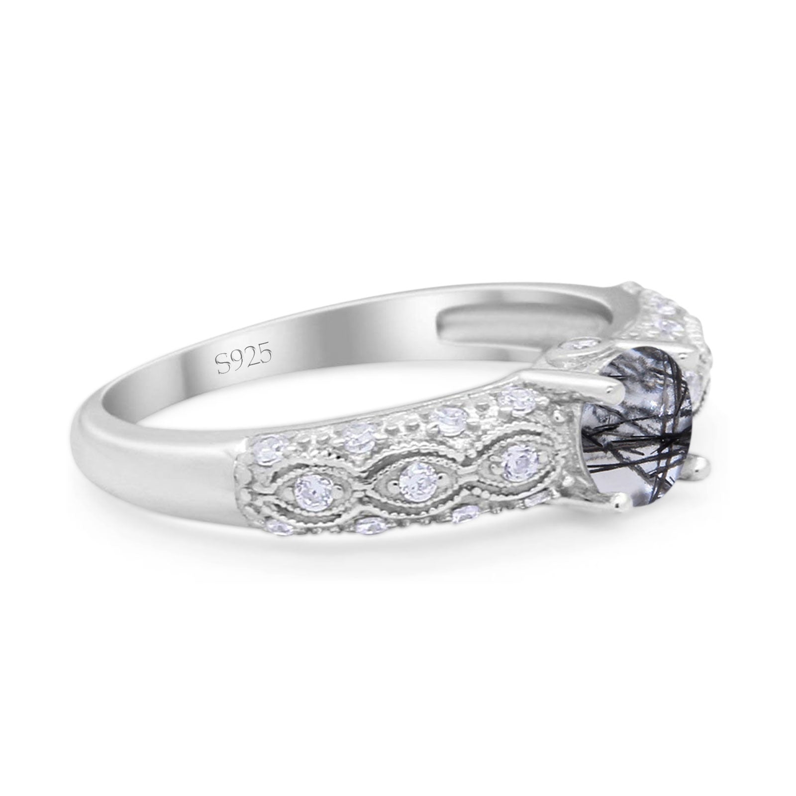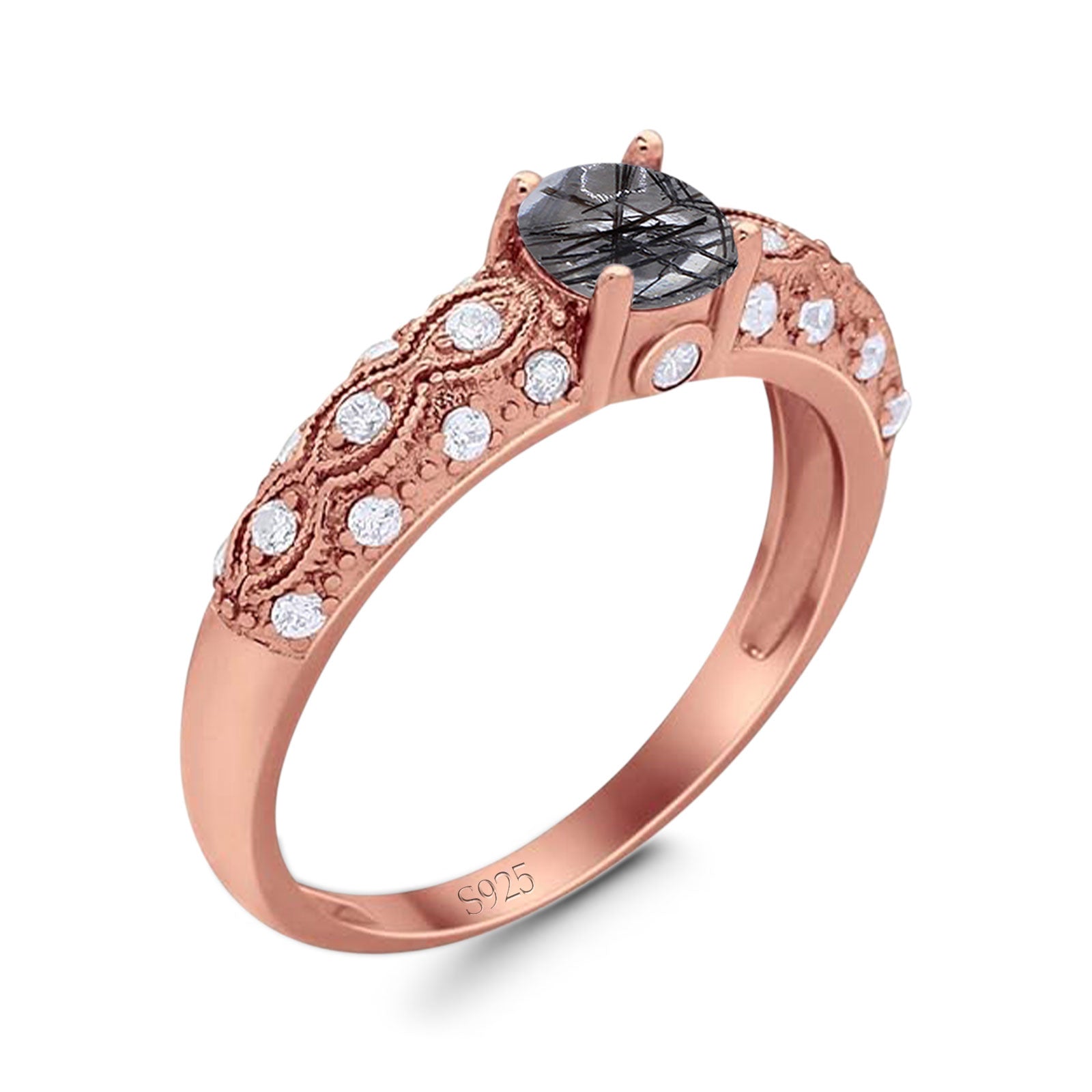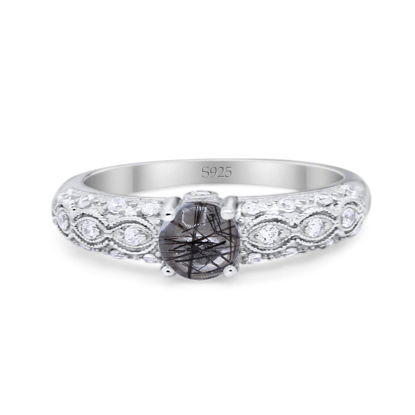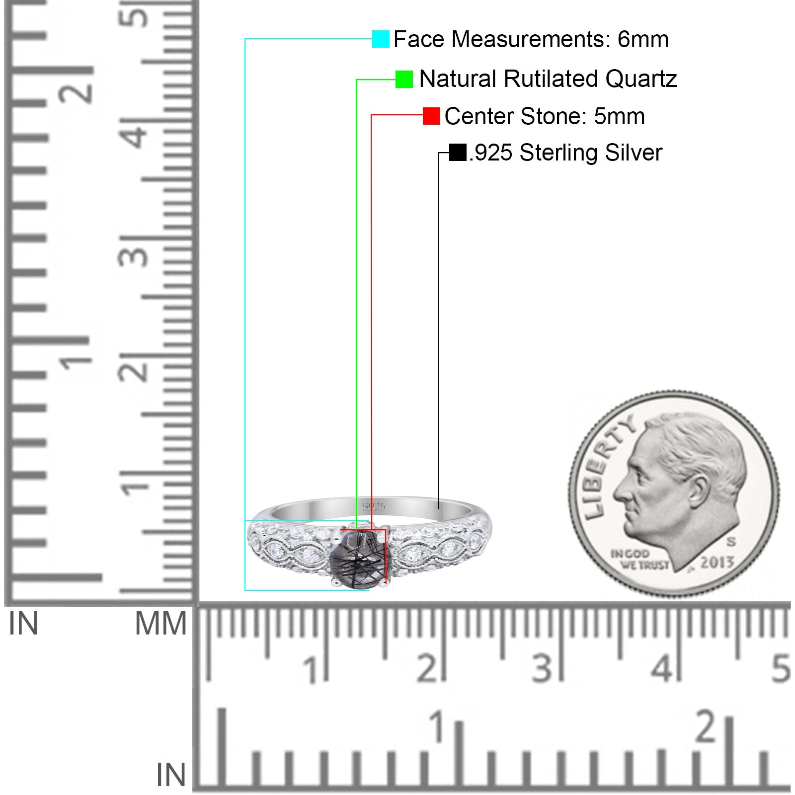 Art Deco Round Natural Rutilated Quartz Solitaire Ring 925 Sterling Silver