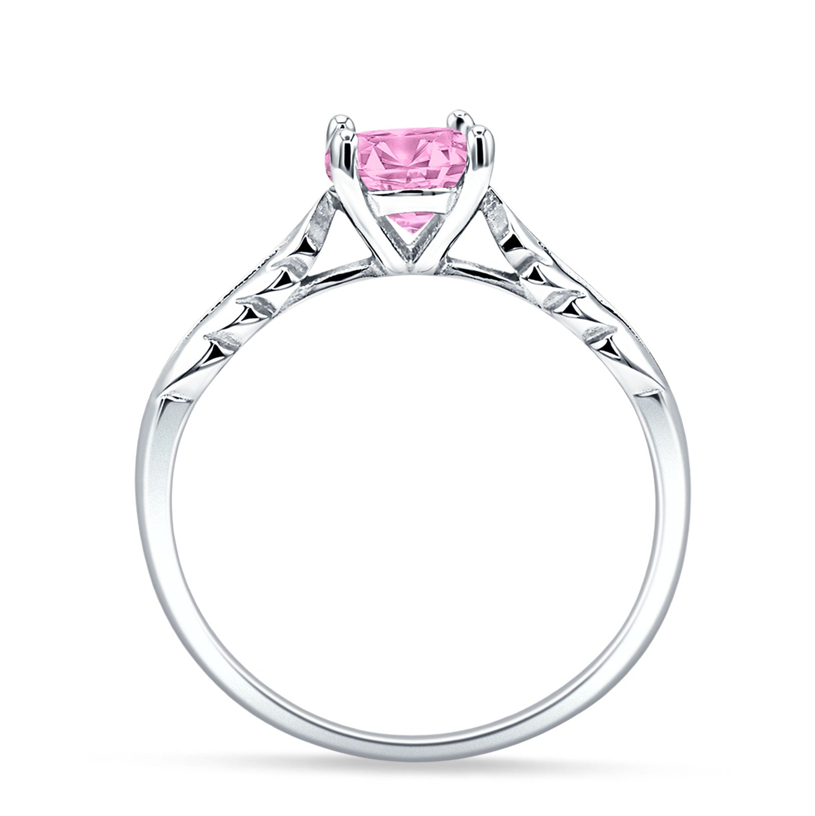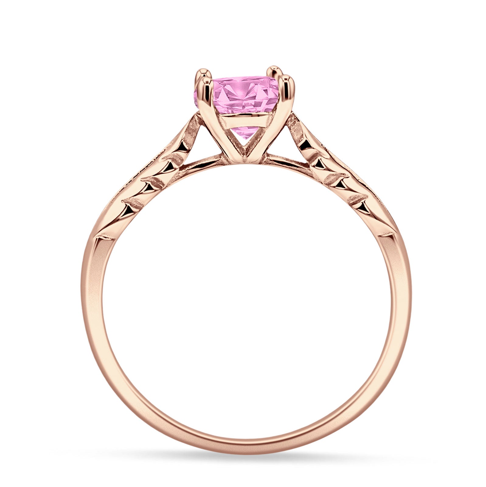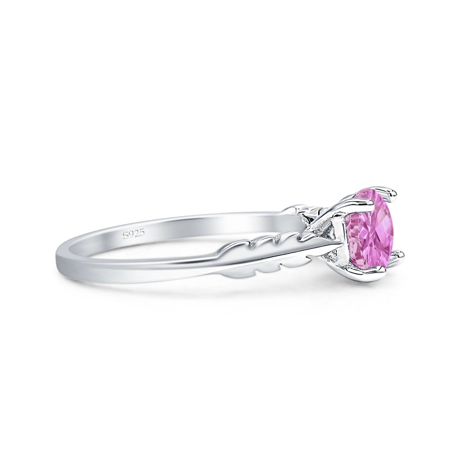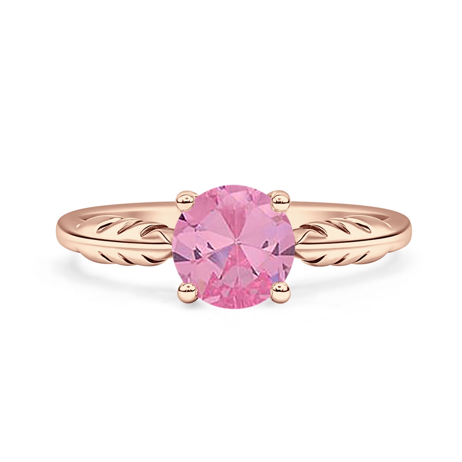 Ring Design: Round Pink CZ leaf Solitaire Ring.