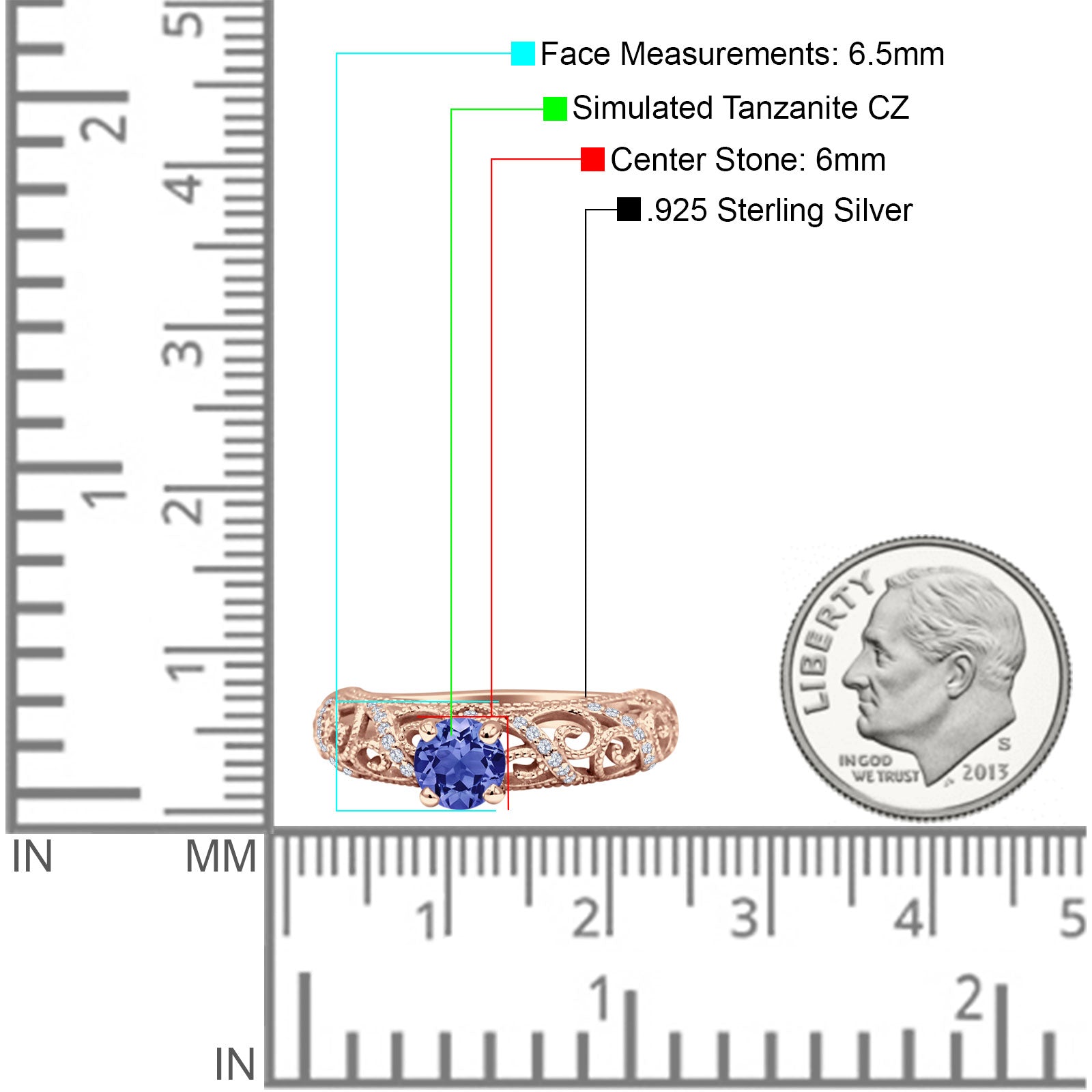 Art Deco Round Tanzanite CZ Filigree Ring 925 Sterling Silver