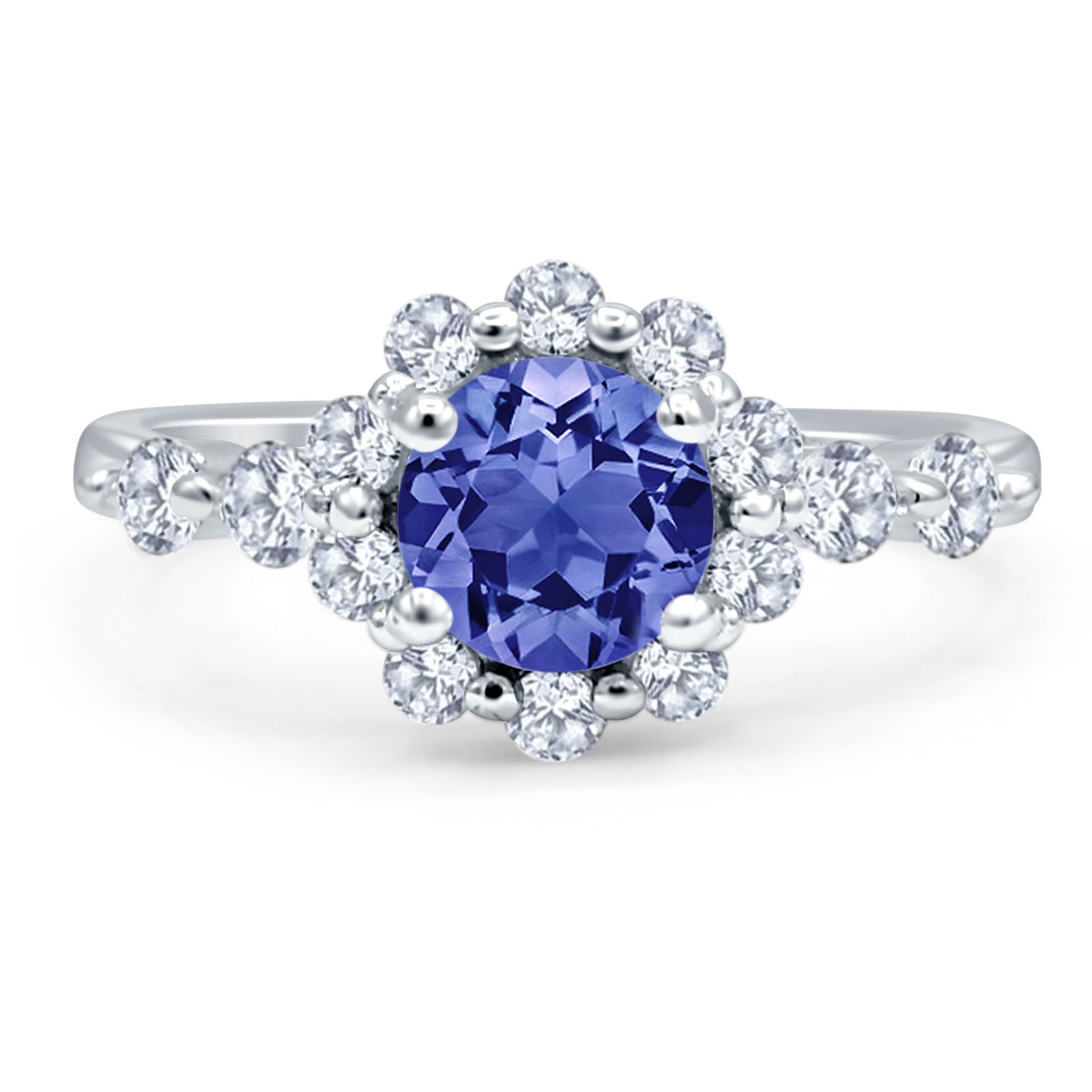 Ring Design: Round Tanzanite CZ Floral Ring.