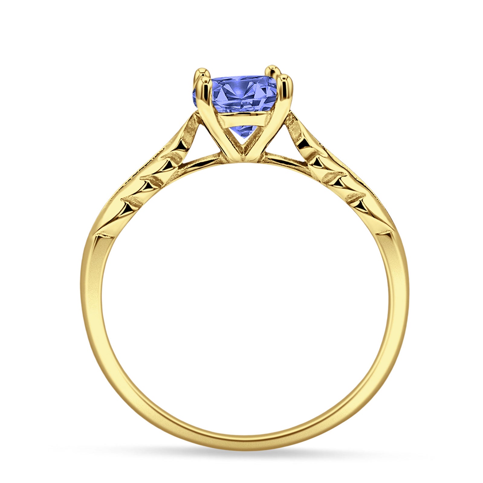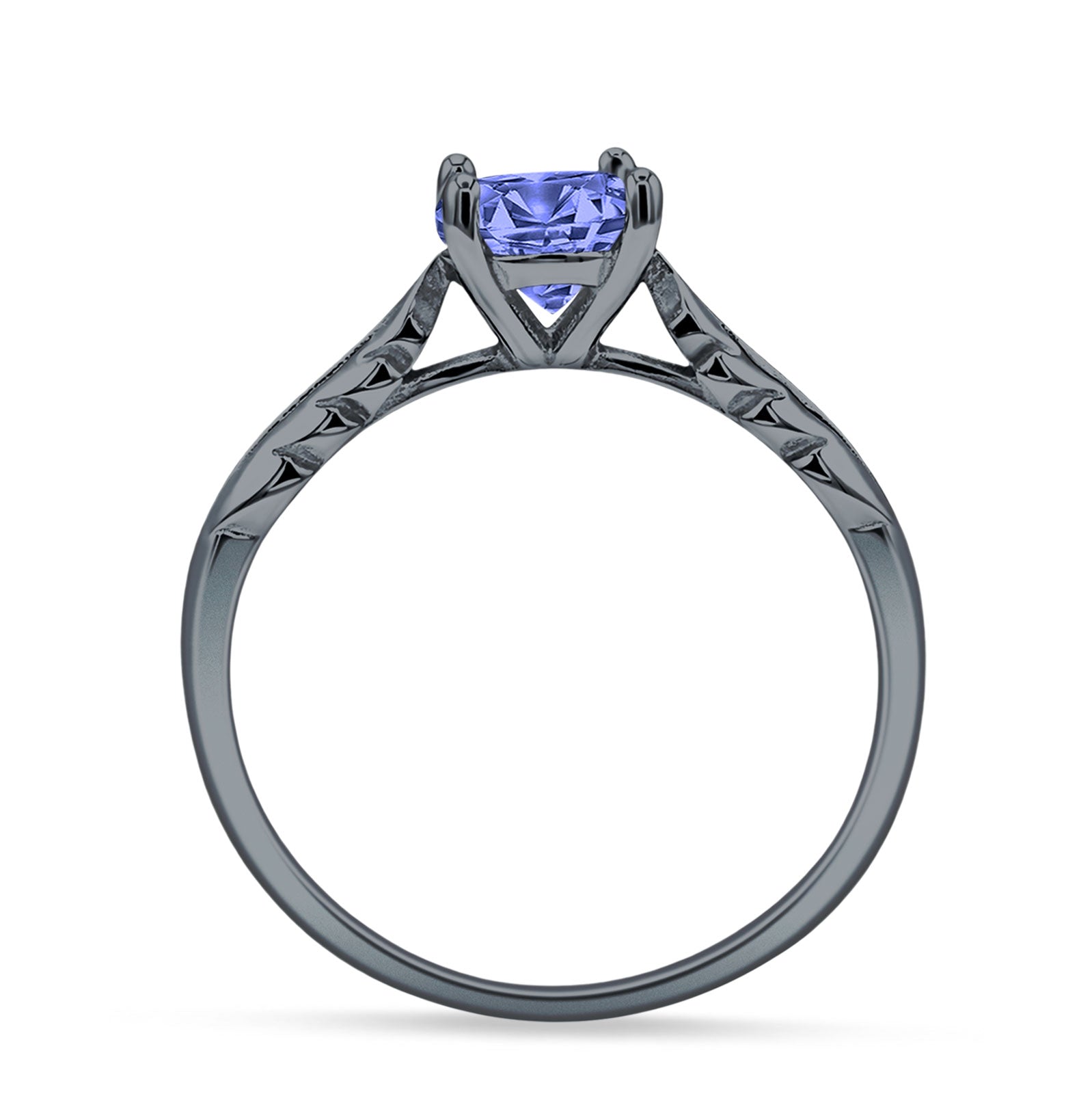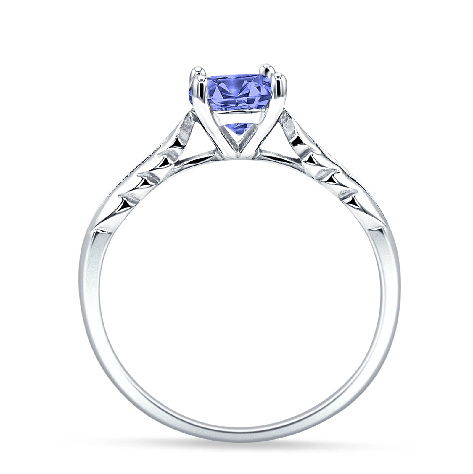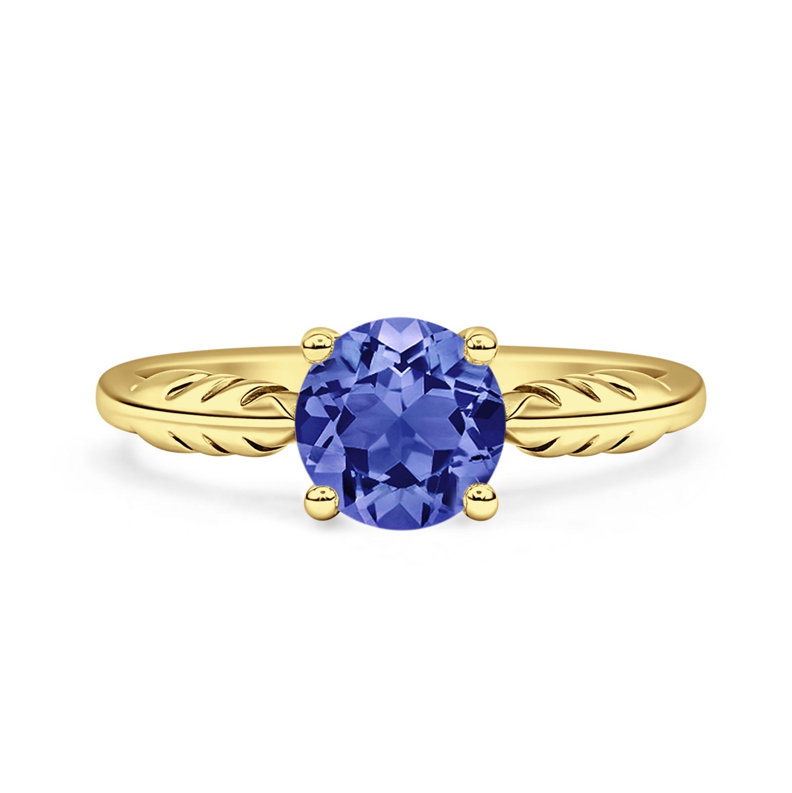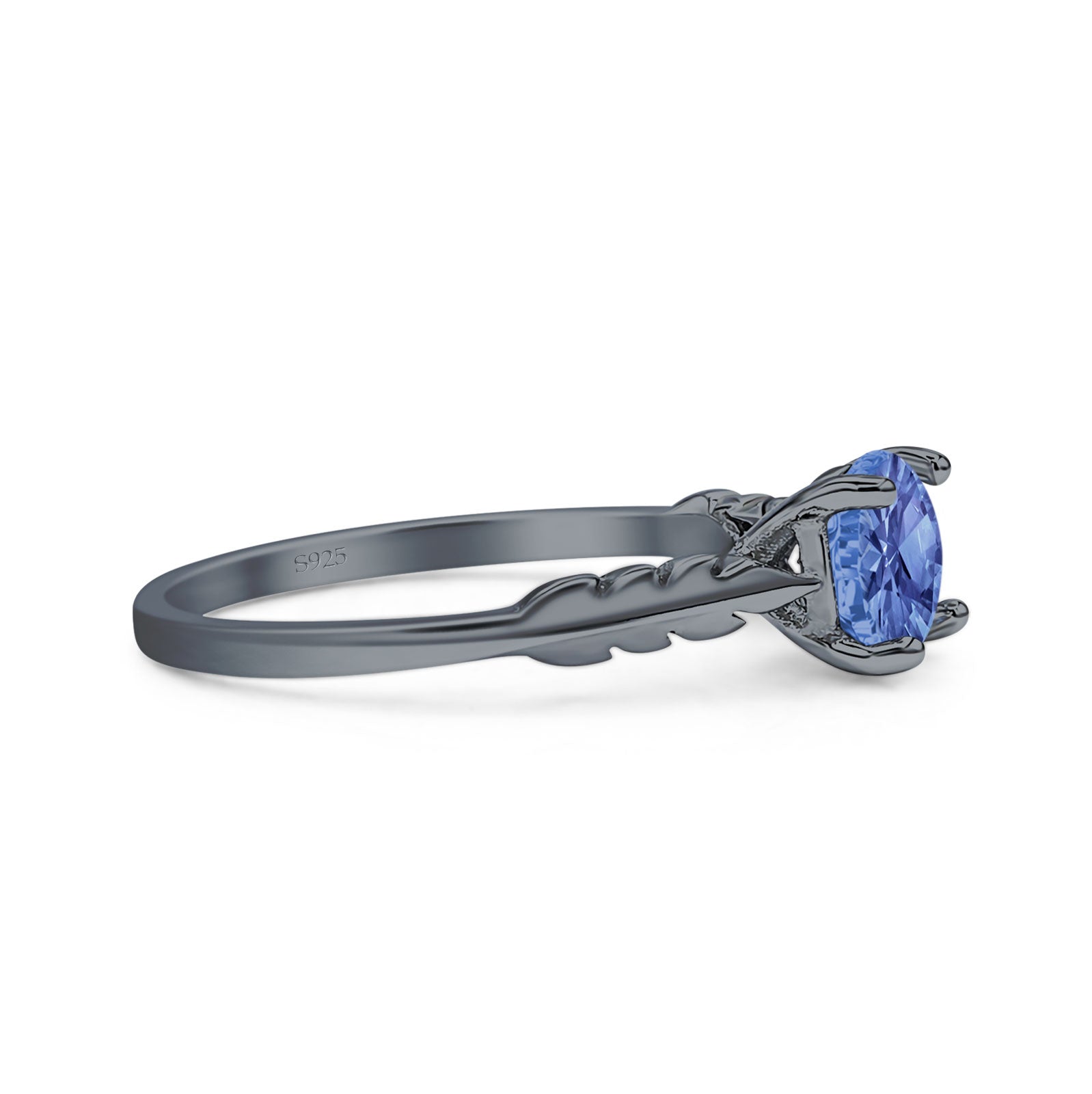 Ring Design: Round Tanzanite CZ leaf Solitaire Ring.