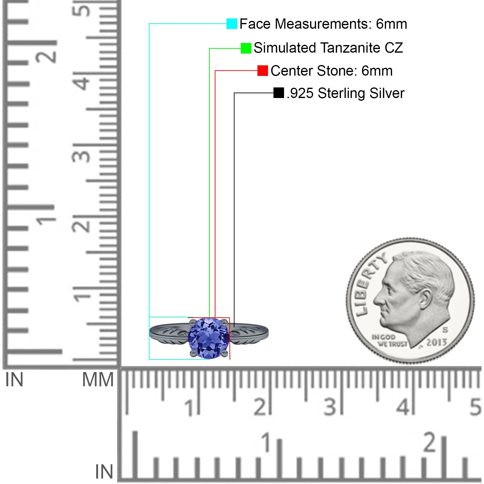 Art Deco Round Tanzanite CZ leaf Solitaire Ring 925 Sterling Silver