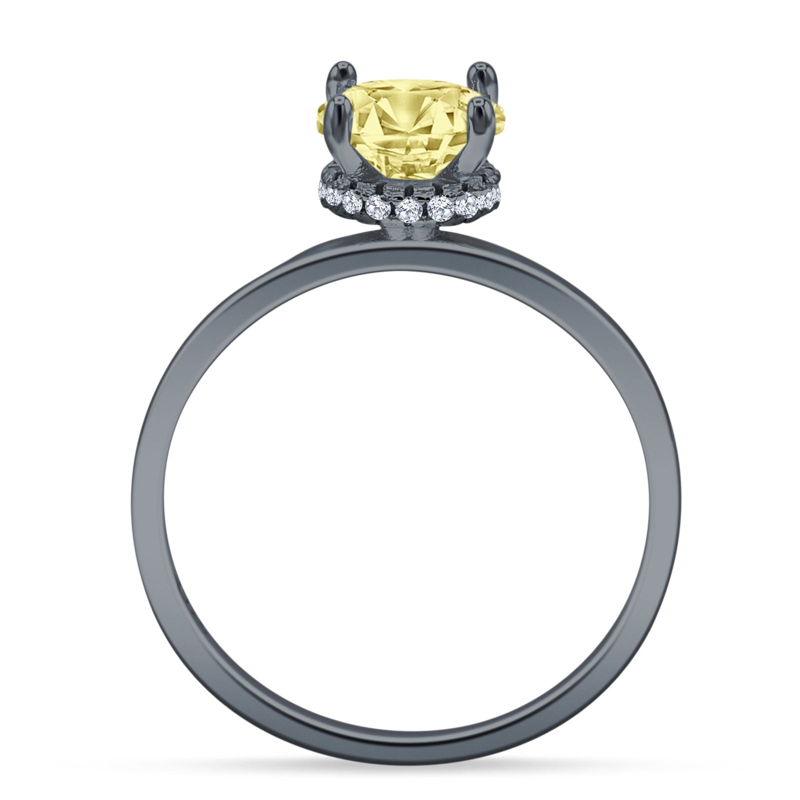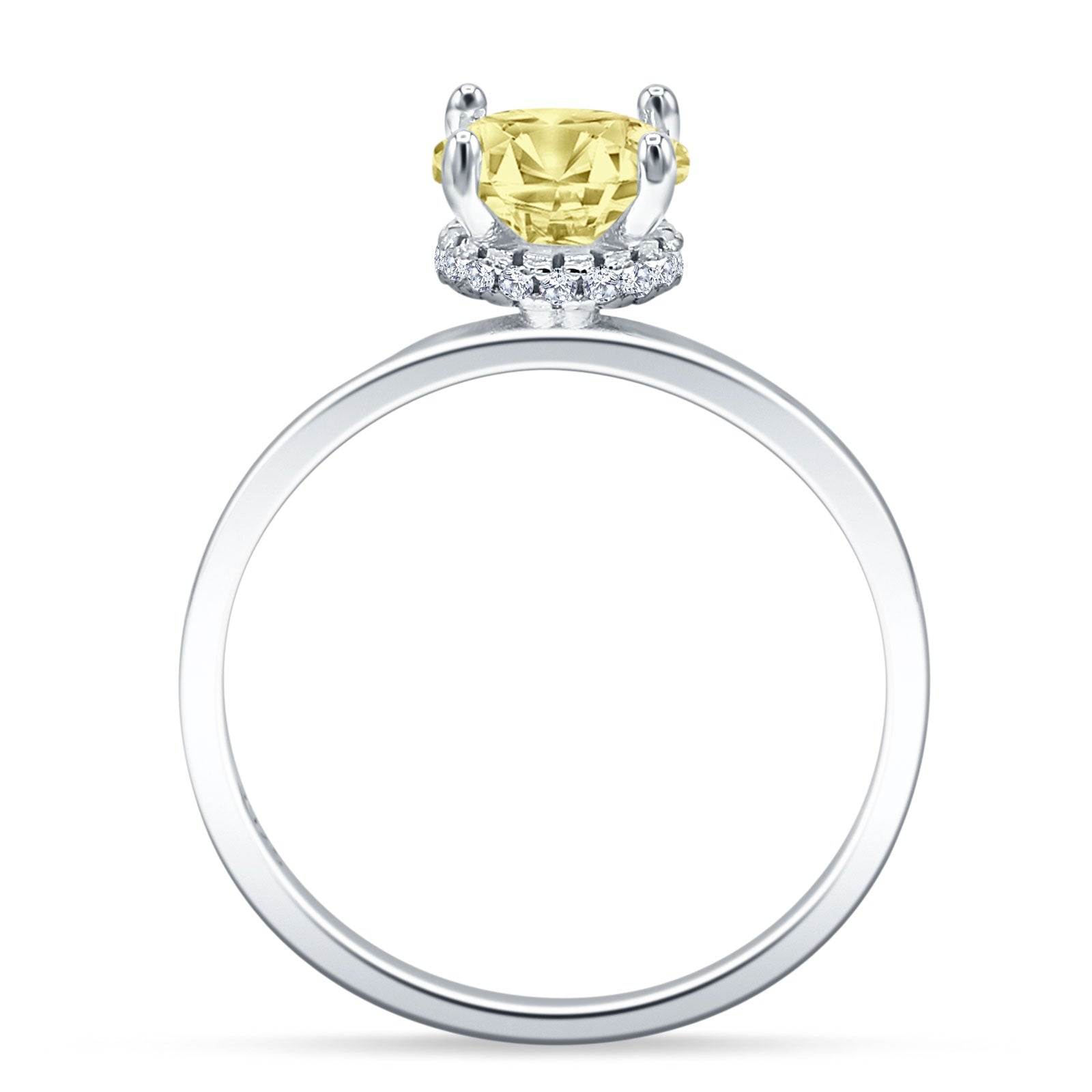 Art Deco Round Yellow CZ Solitaire Ring Hidden Halo 925 Sterling Silver