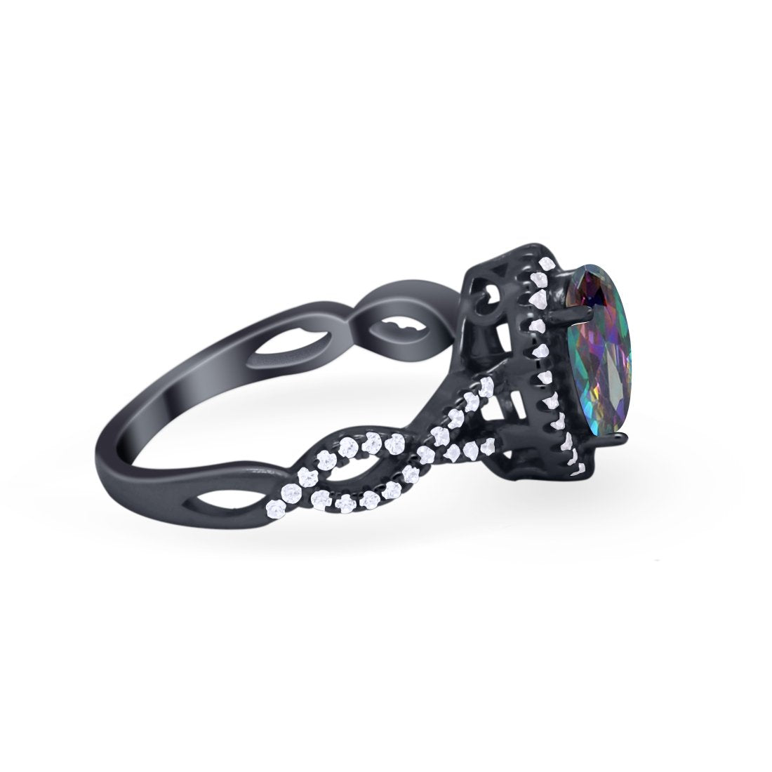 Art Deco Twisted Shank Wedding Ring Oval Round Cubic Zirconia 925 Sterling Silver