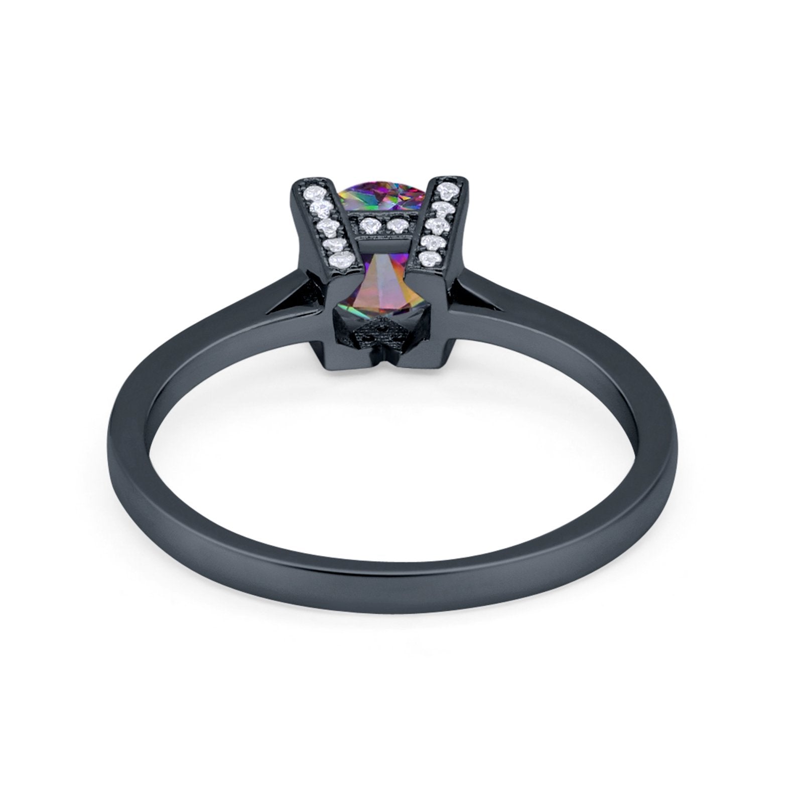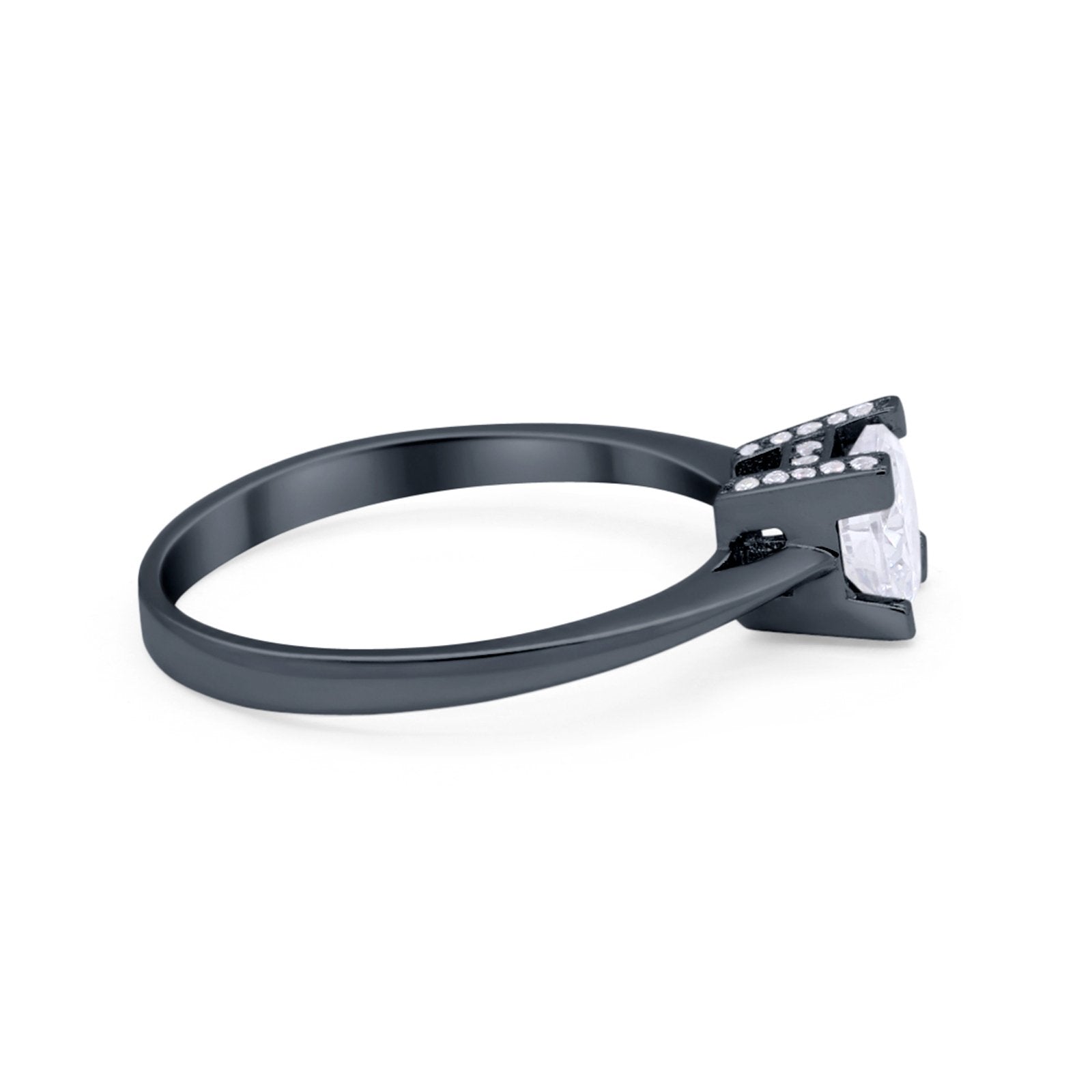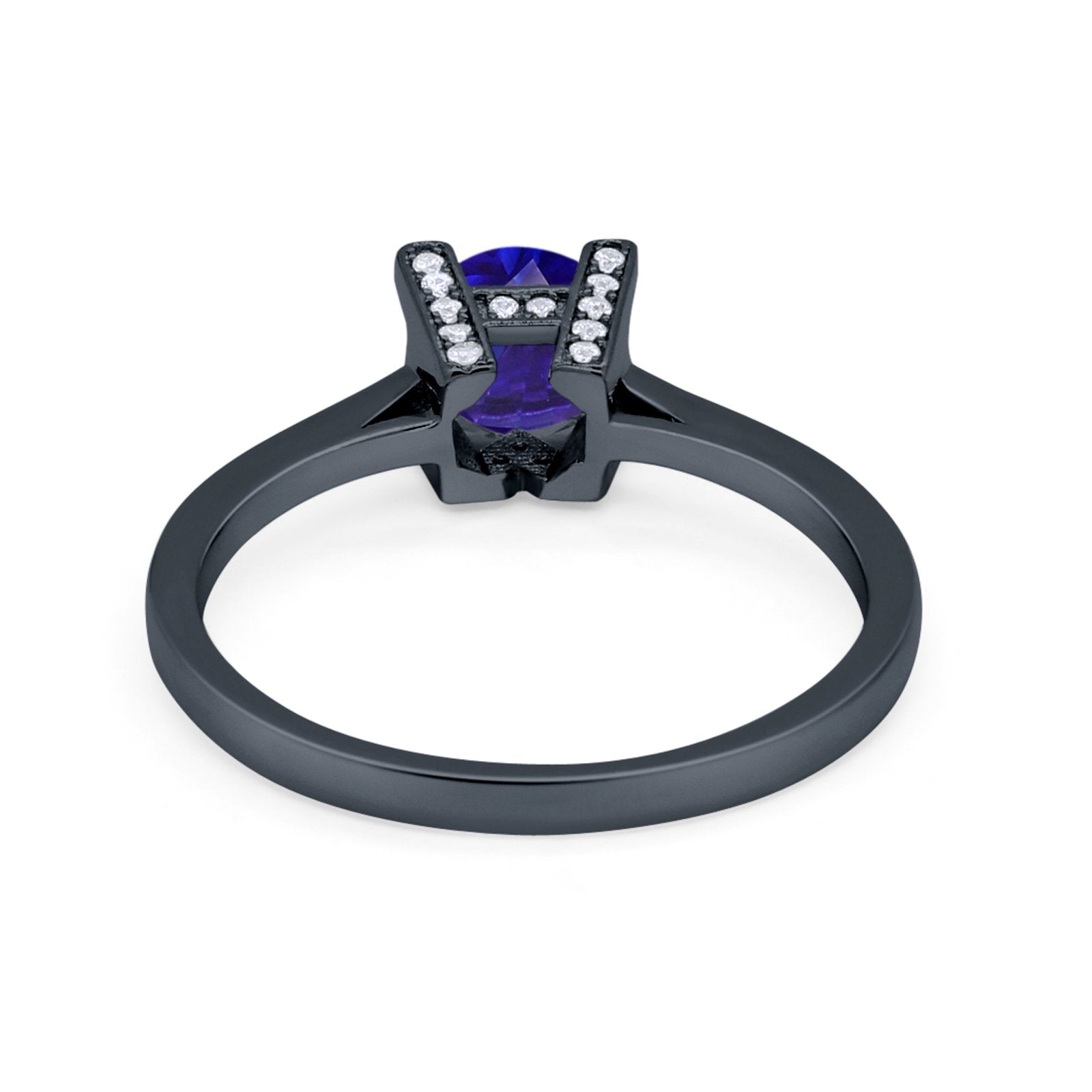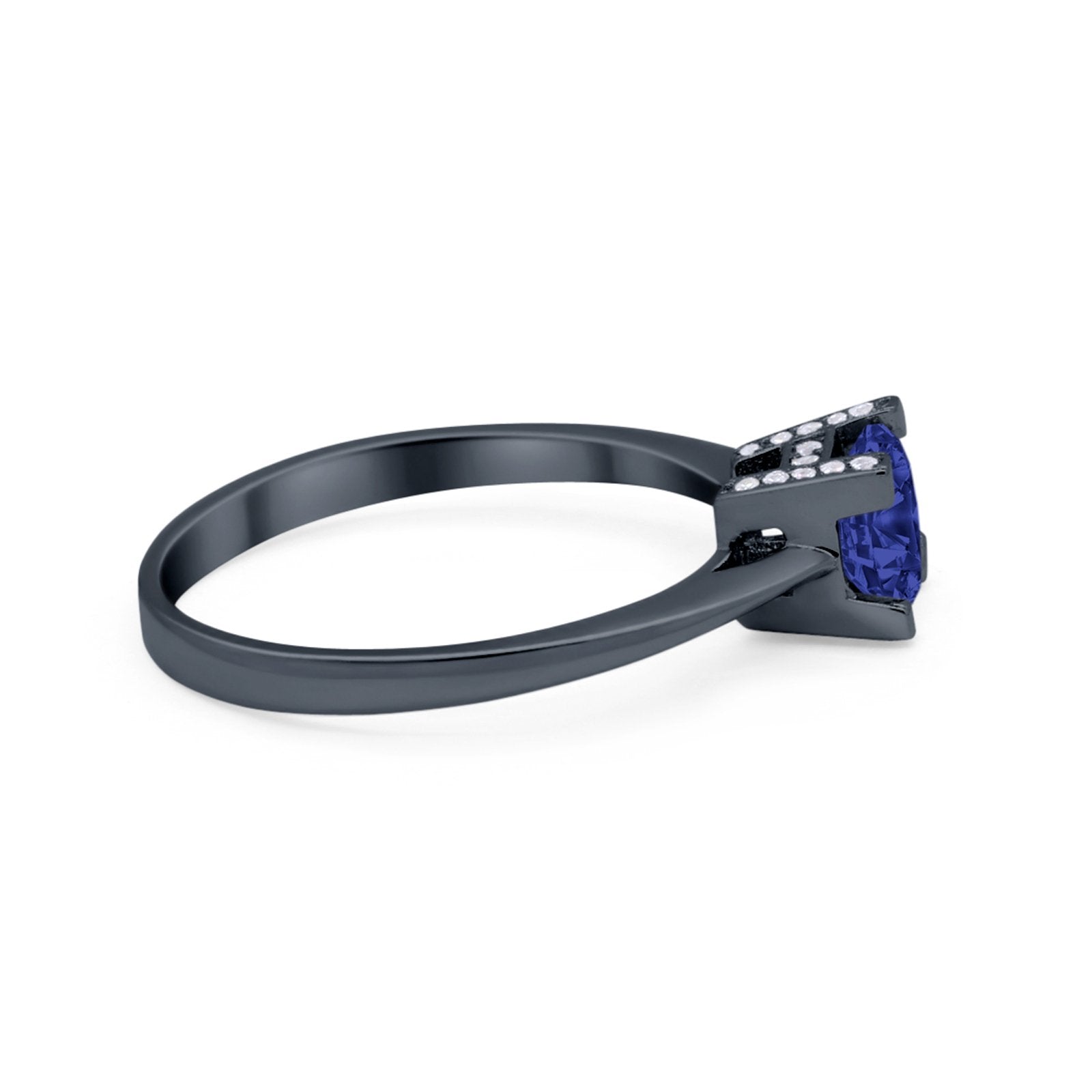 CZ & Blue Sapphire CZ Black Tone Silver