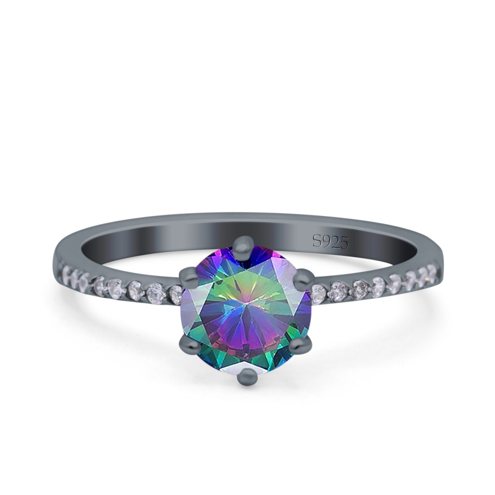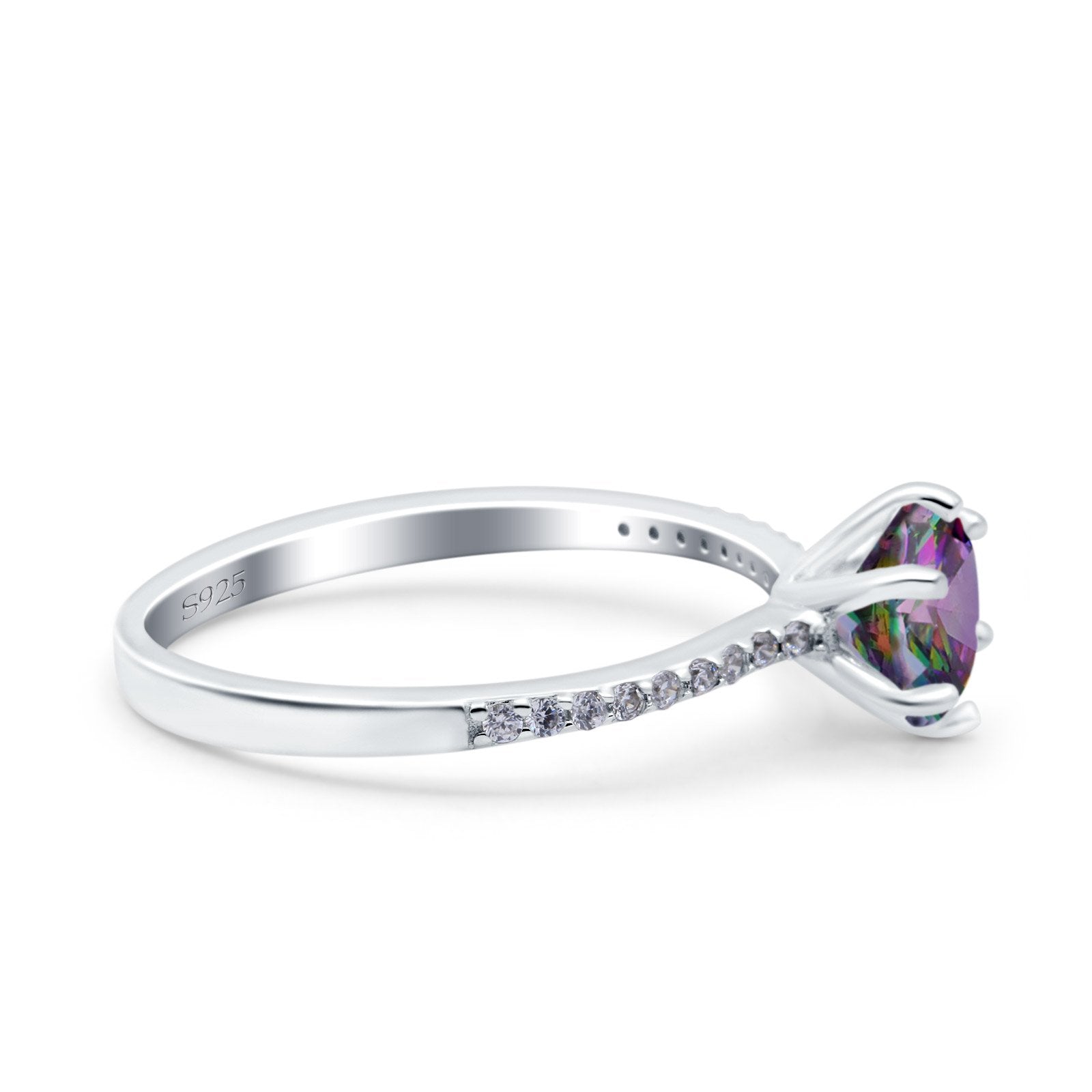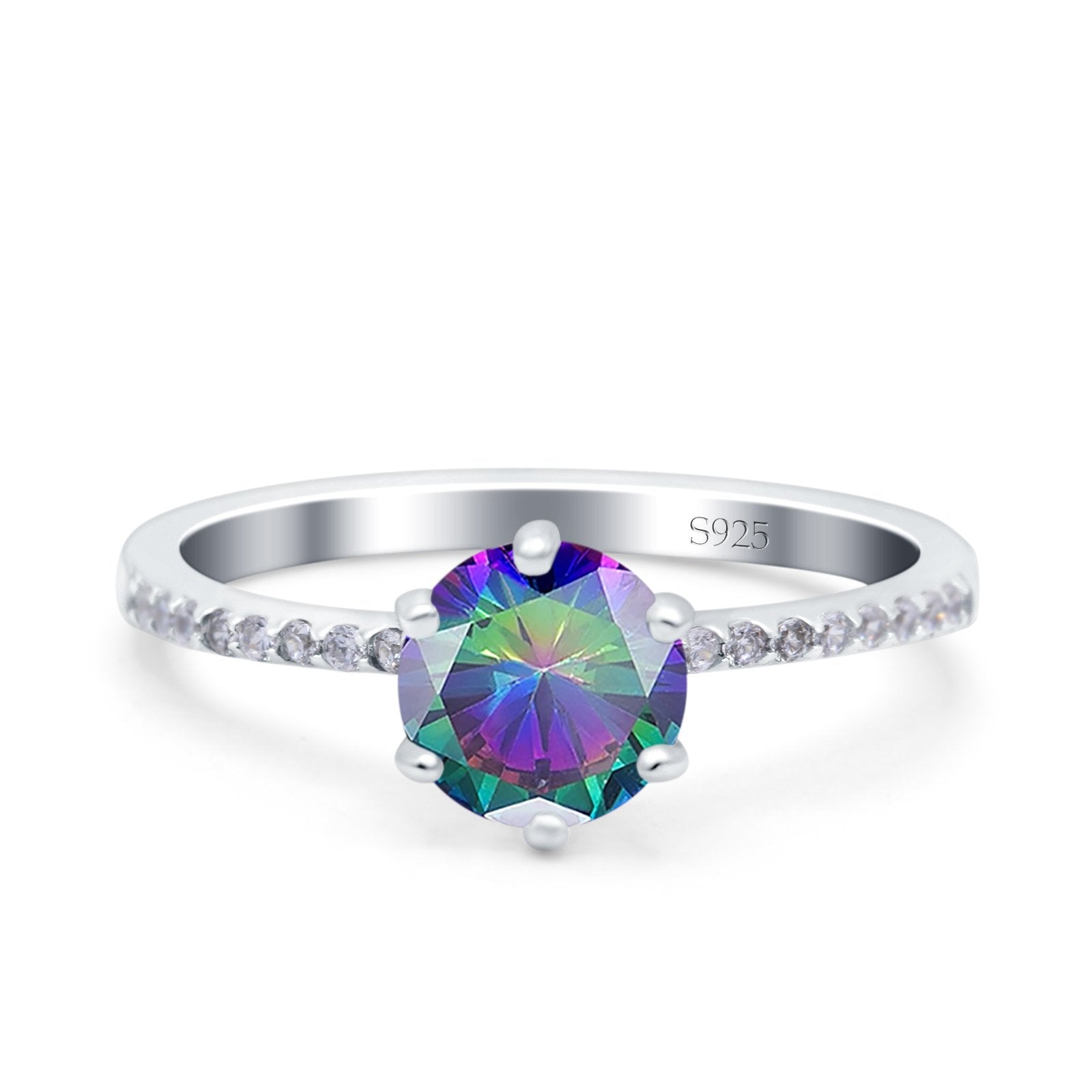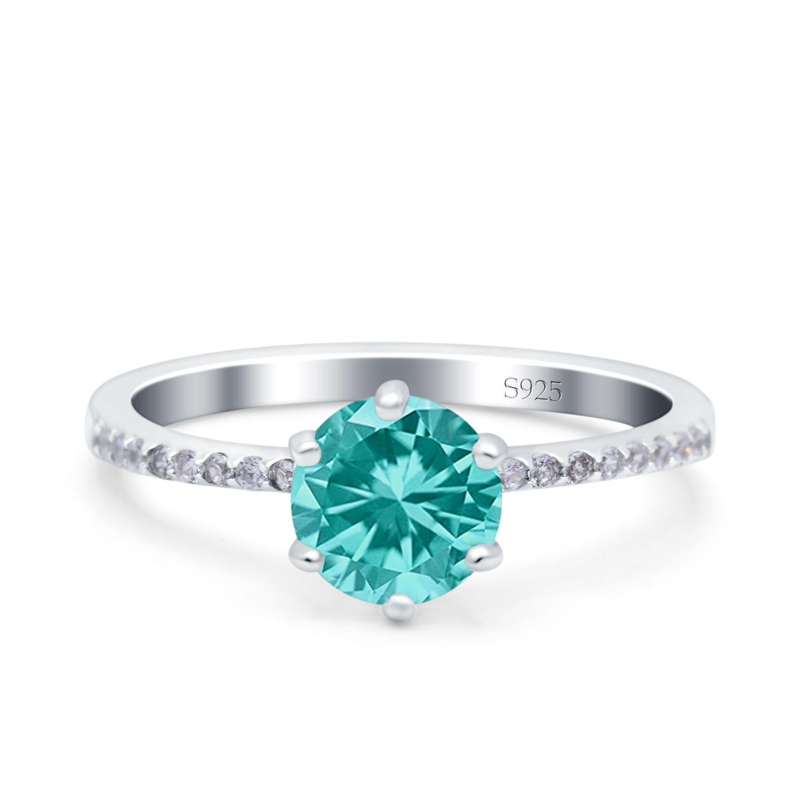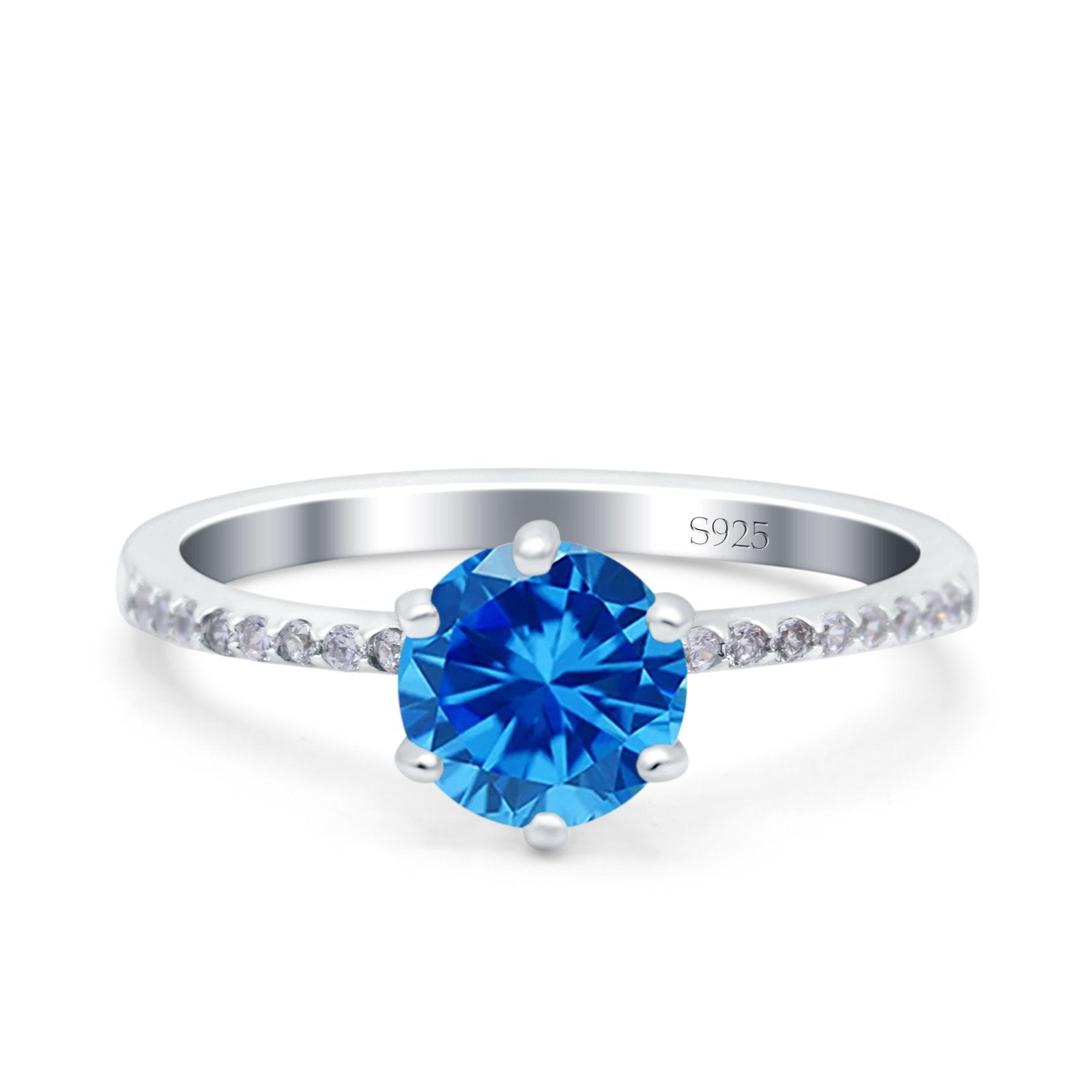 Art Deco Wedding Engagement Bridal Ring Round Simulated Cubic Zirconia 925 Sterling Silver