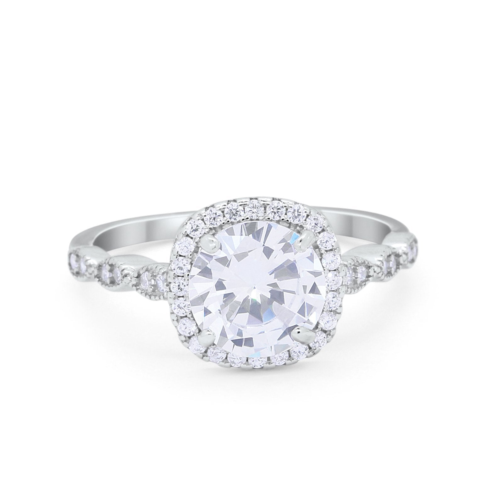 Art Deco Wedding Ring Band Bridal Set Large Round Cubic Zirconia 925 Sterling Silver