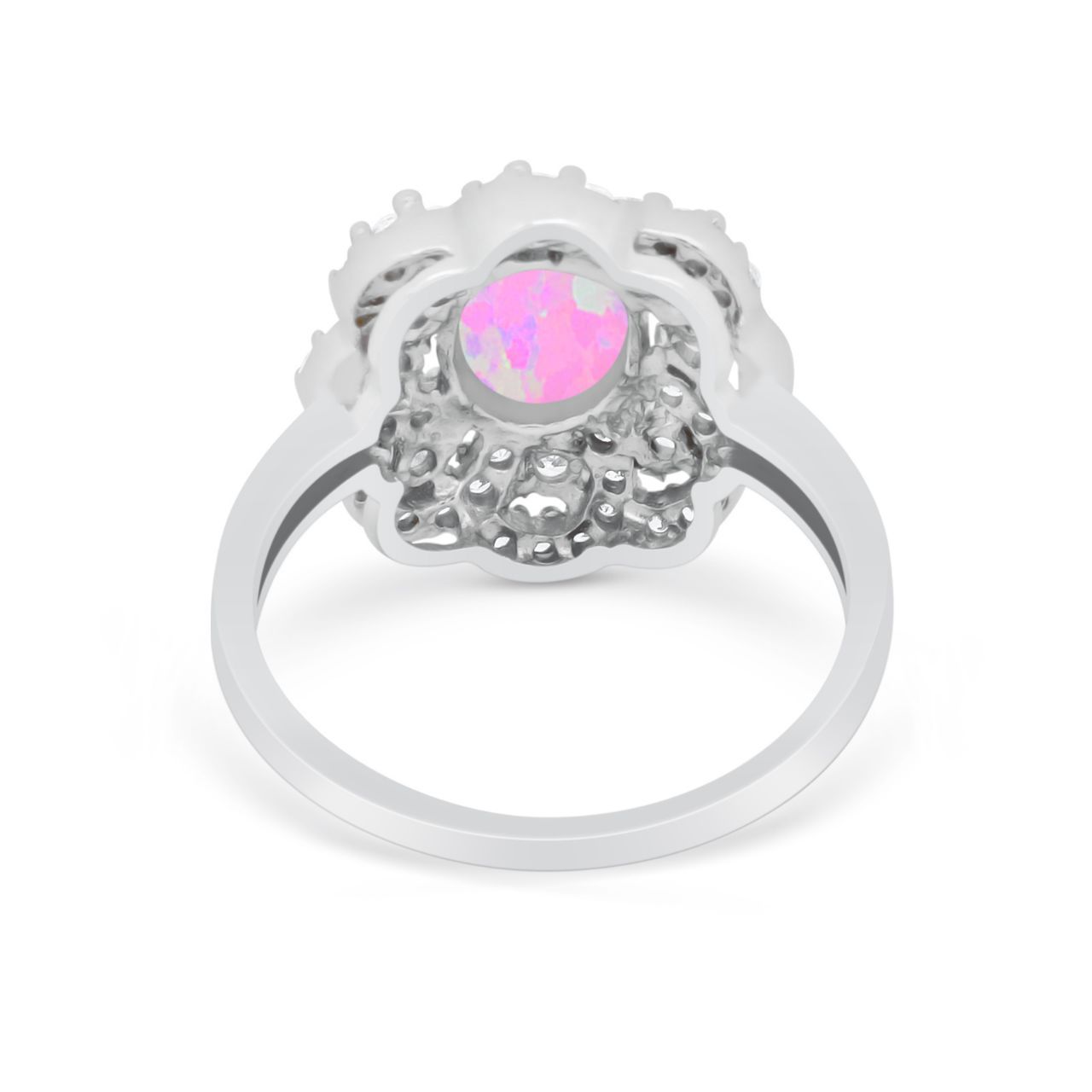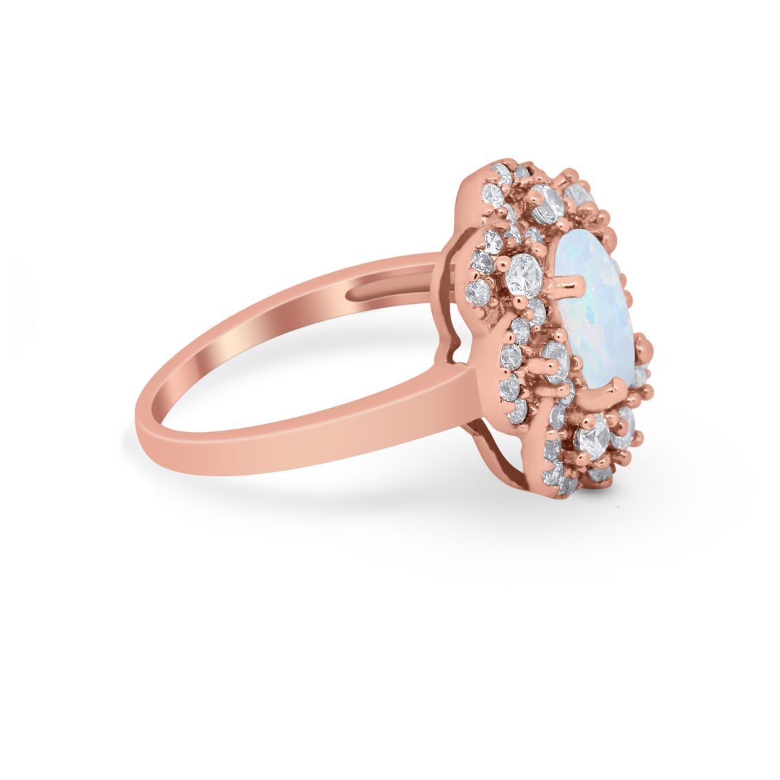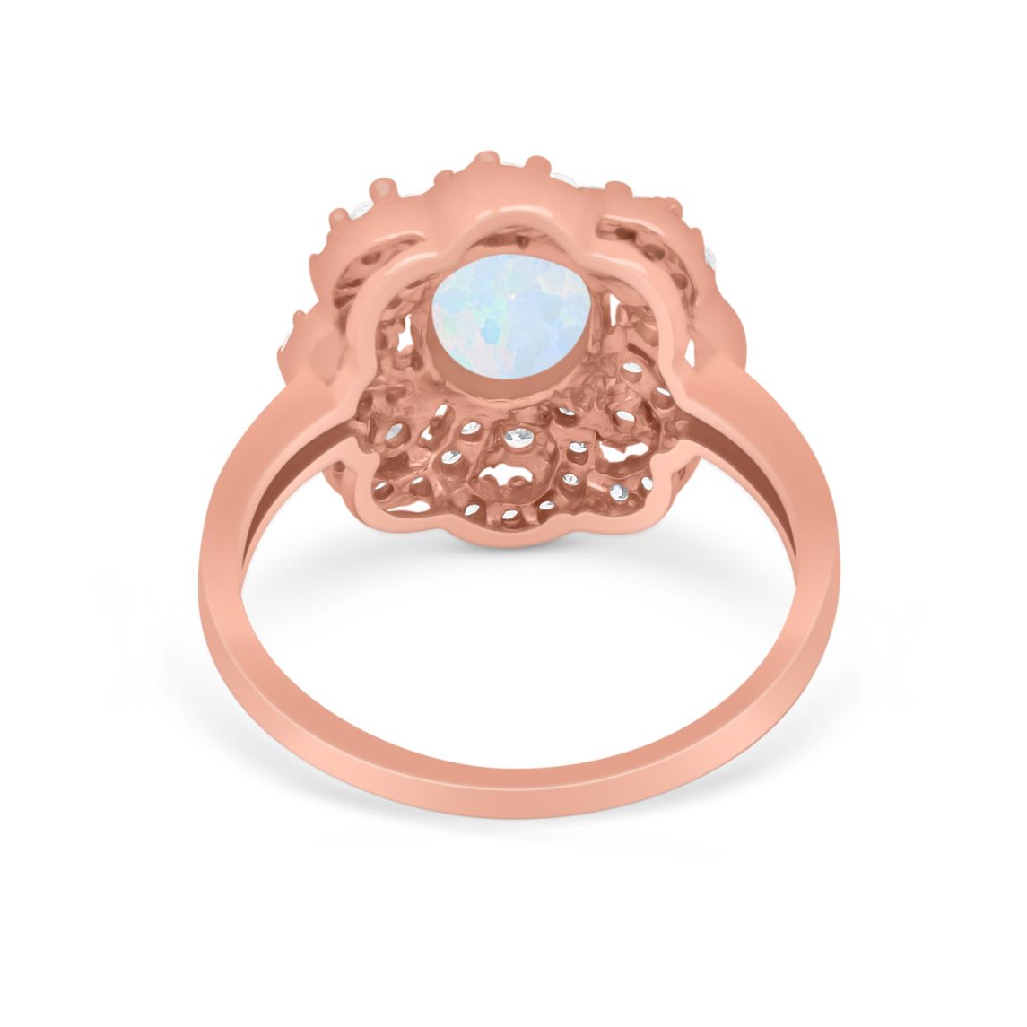 Art Deco Wedding Ring Halo Round Simulated Cubic Zirconia 925 Sterling Silver