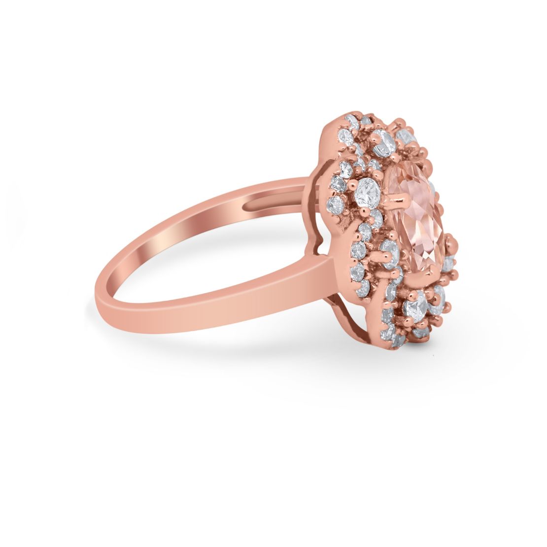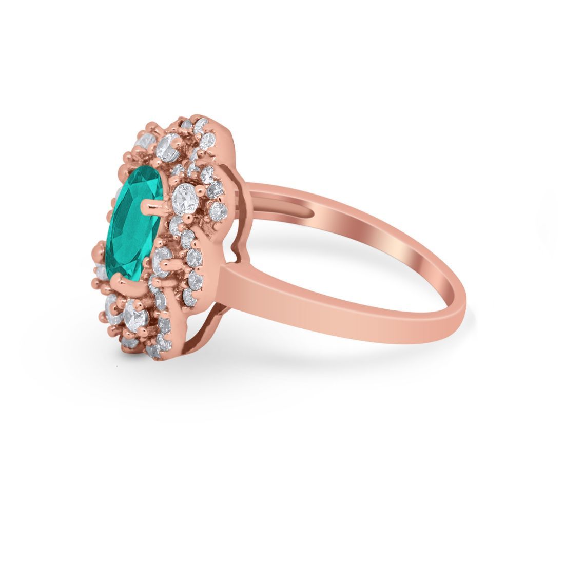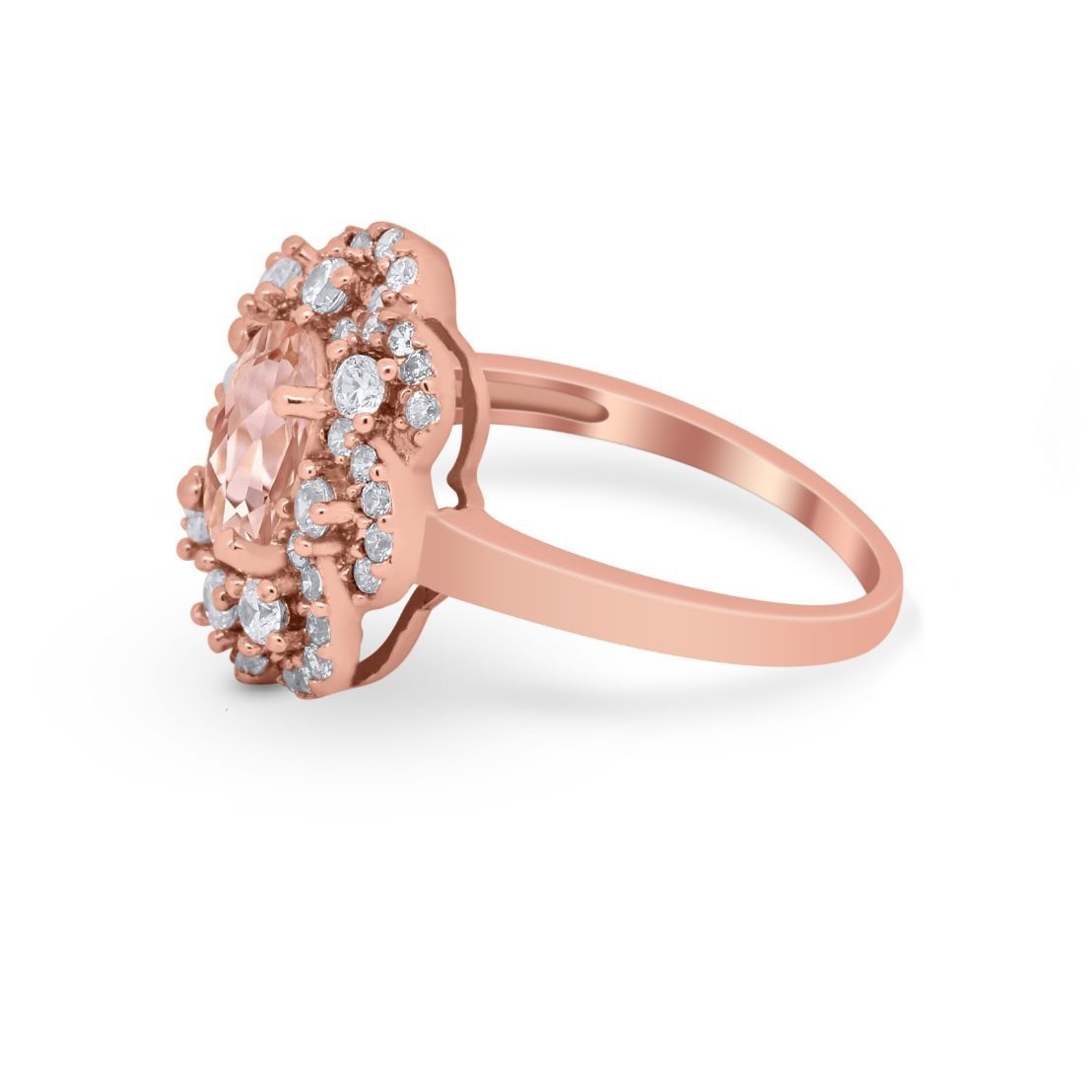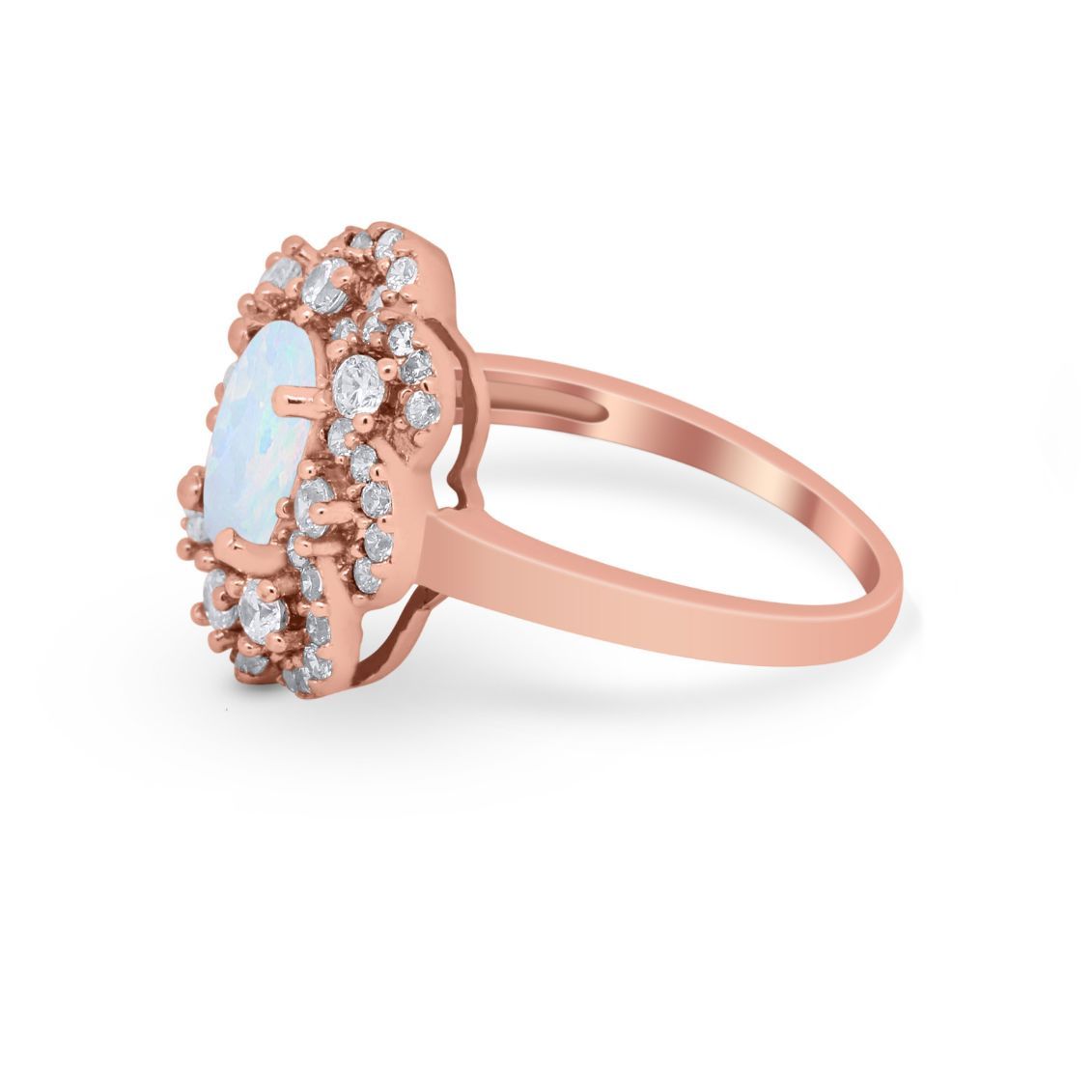 Art Deco Wedding Ring Halo Round Simulated Cubic Zirconia 925 Sterling Silver