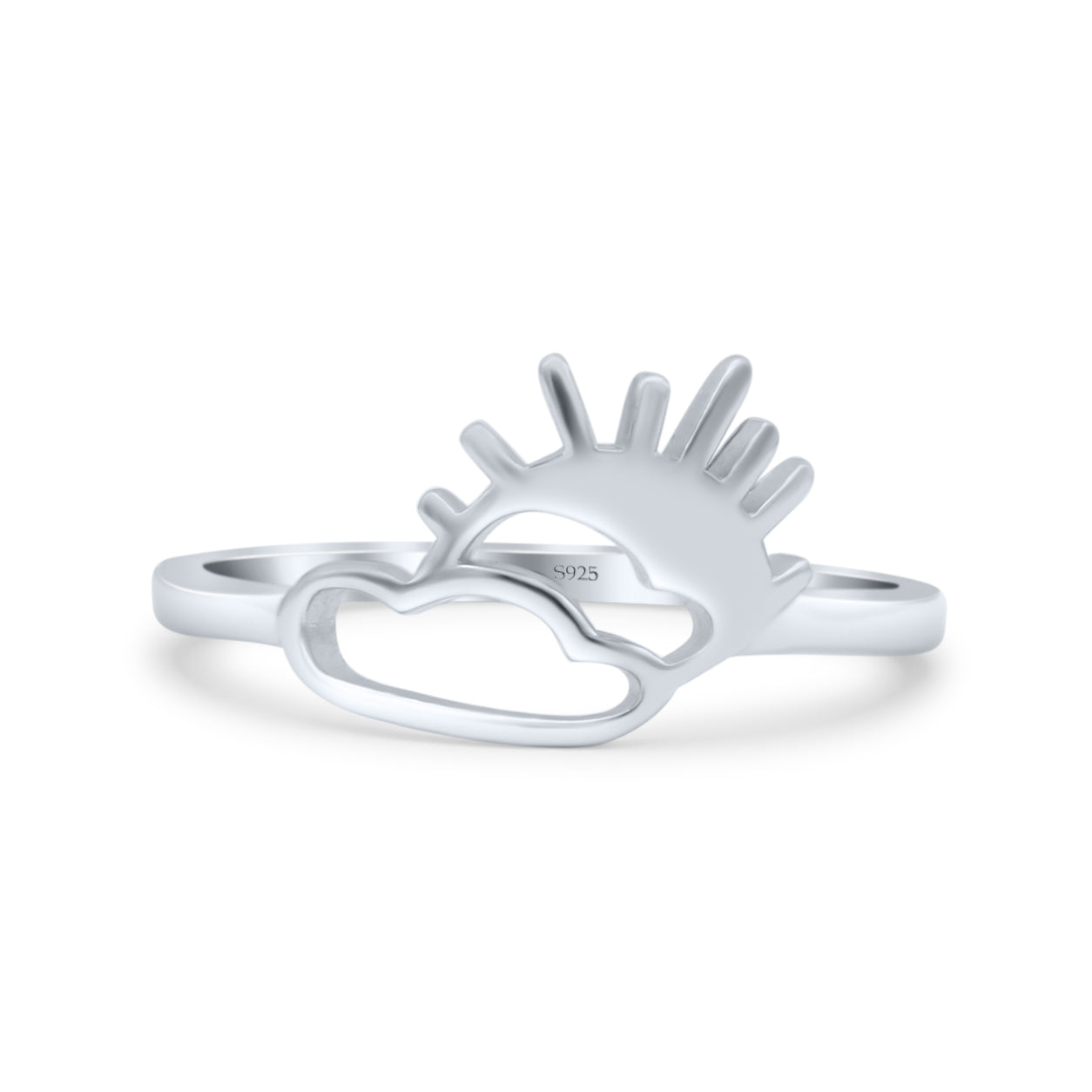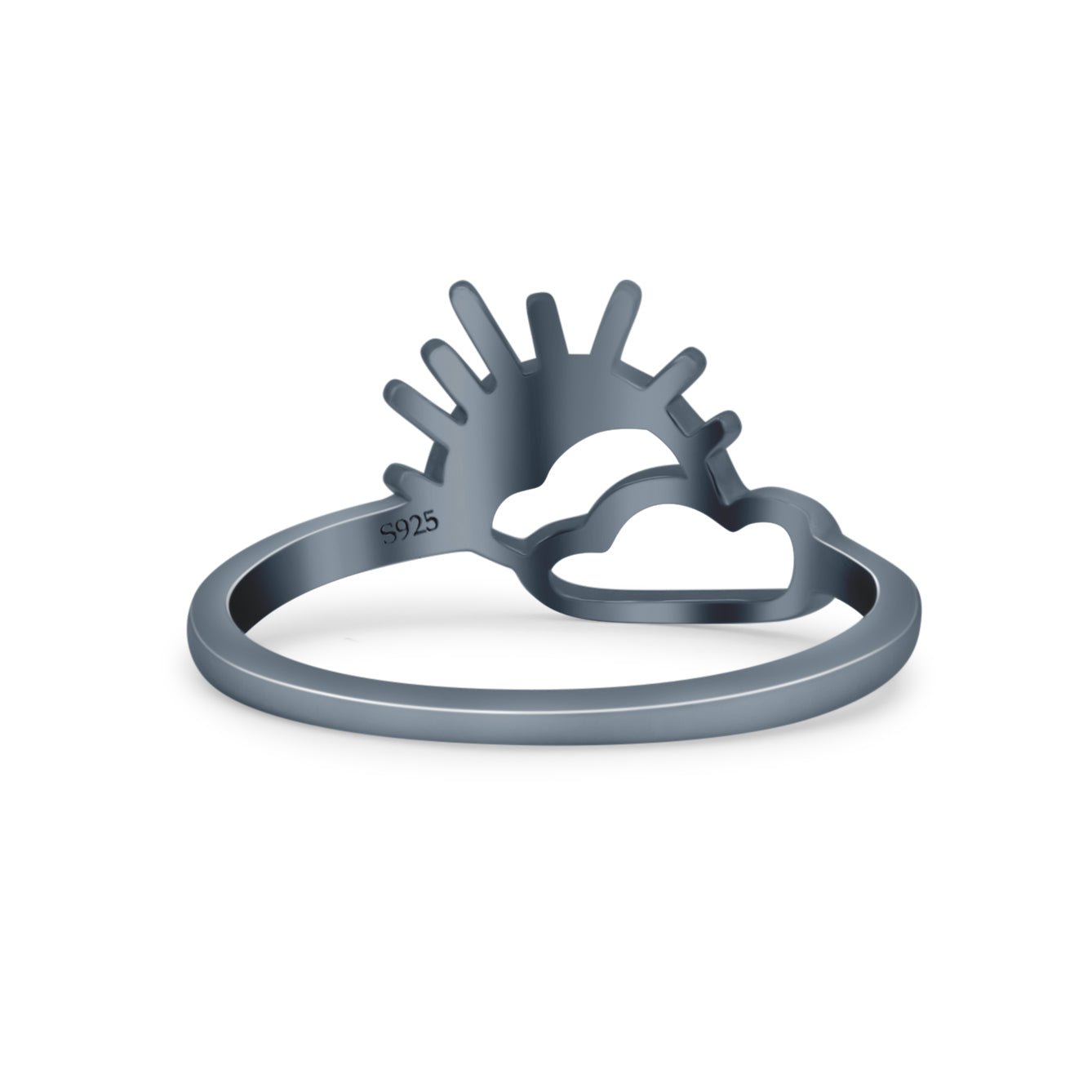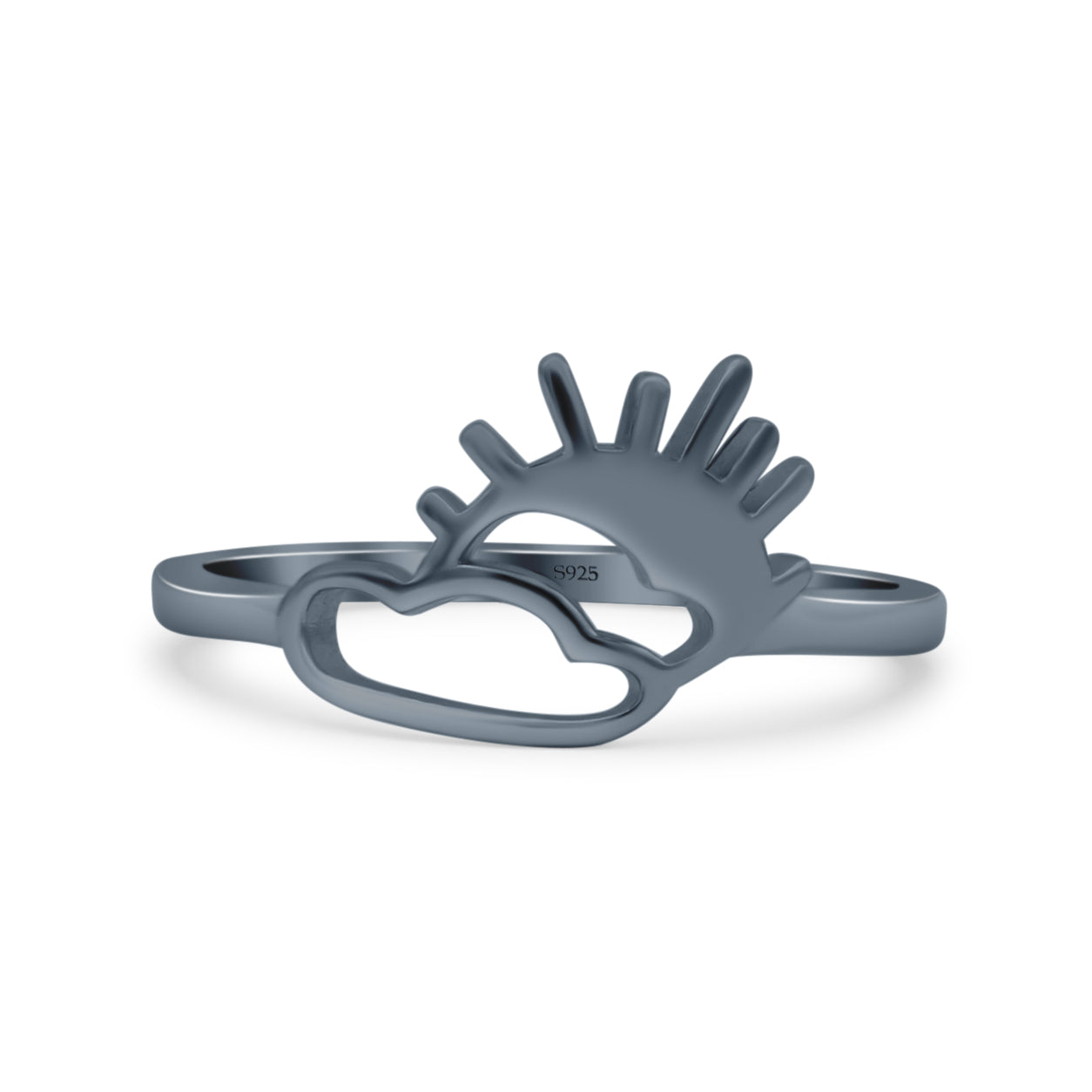 Attractive Sun and Cloud Plain Ring Ring Fascinating Oxidized Solid 925 Sterling Silver Thumb Band (10.4mm)