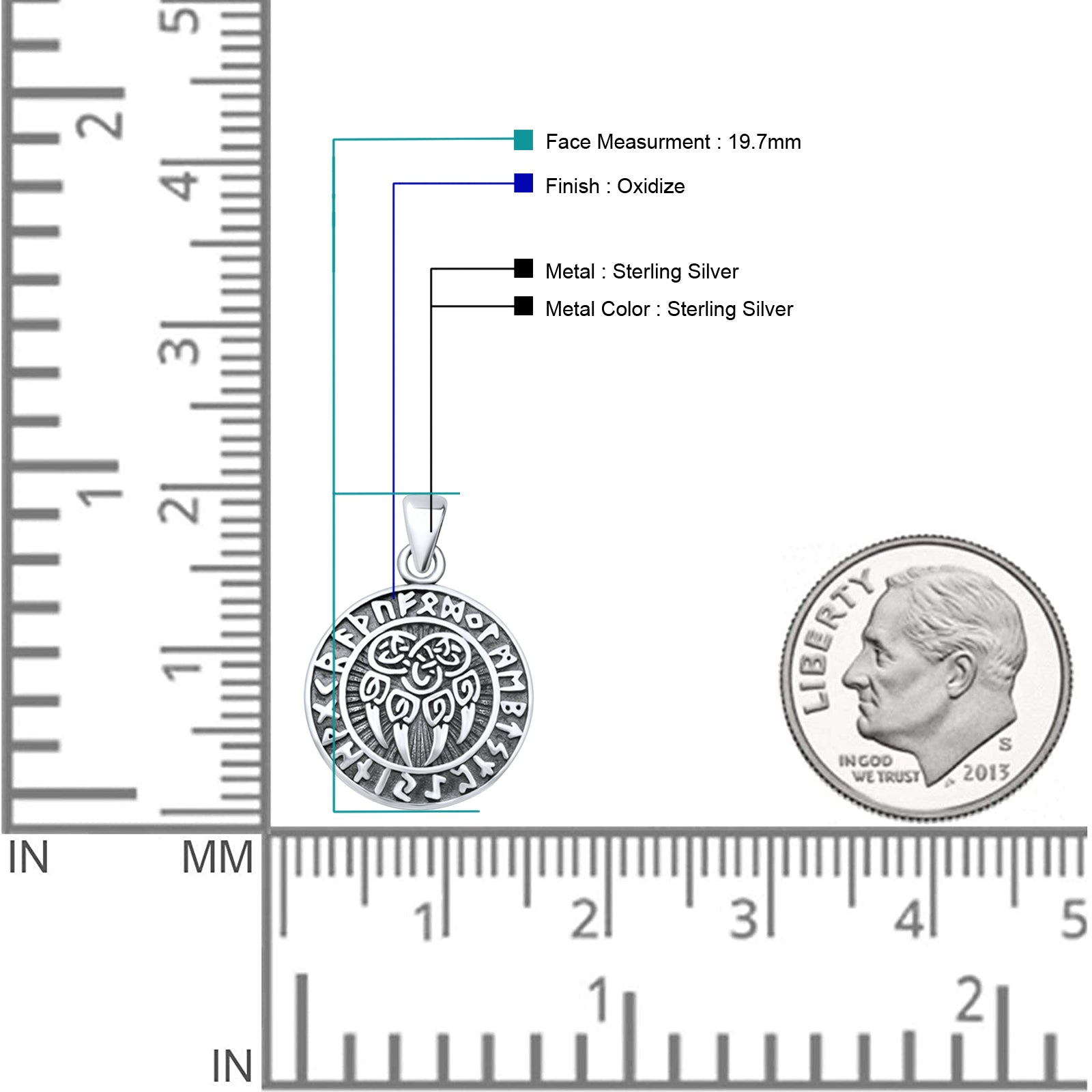 Pendant Length: 19.7mm(0.77 inch)